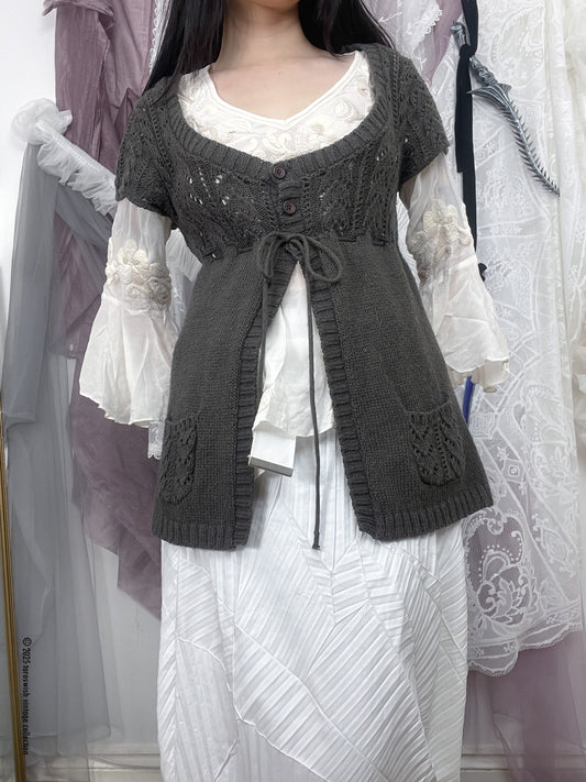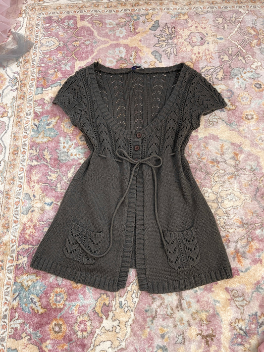 DARK BROWN DRAPED TIE-FRONT TUNIC