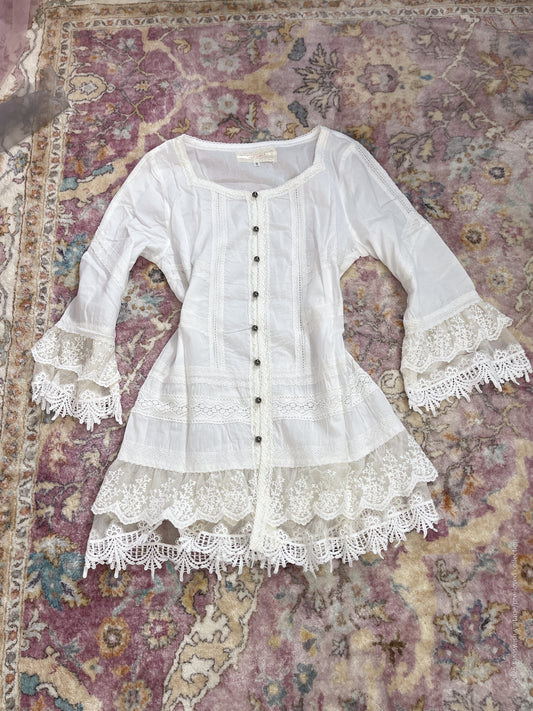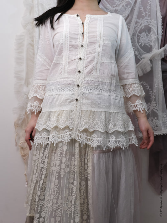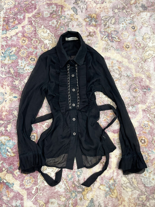 GUESS PLEATED RUFFLE CORSET UP BLOUSE