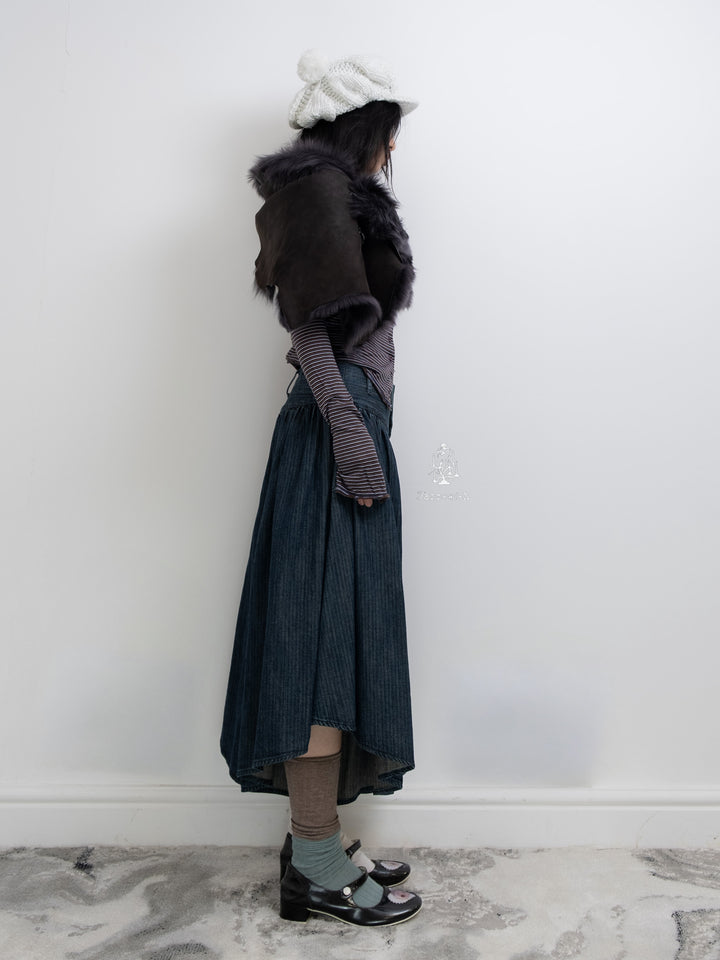 KARL DONOGHUE ASYMMETRIC LAMBSKIN SHAWL / SCARF WITH BUCKLES
