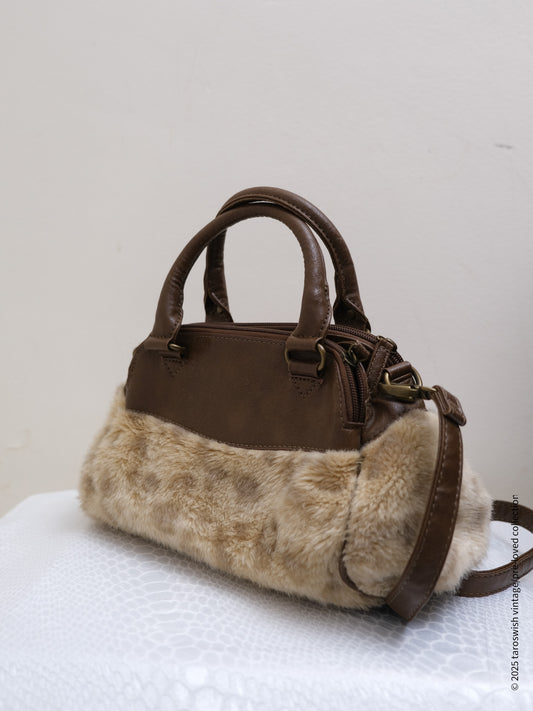 CANVAS LEATHER HANDBAG WITH GOLD HARDWARE