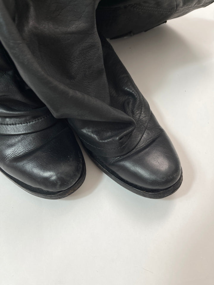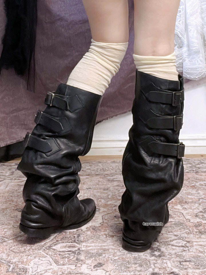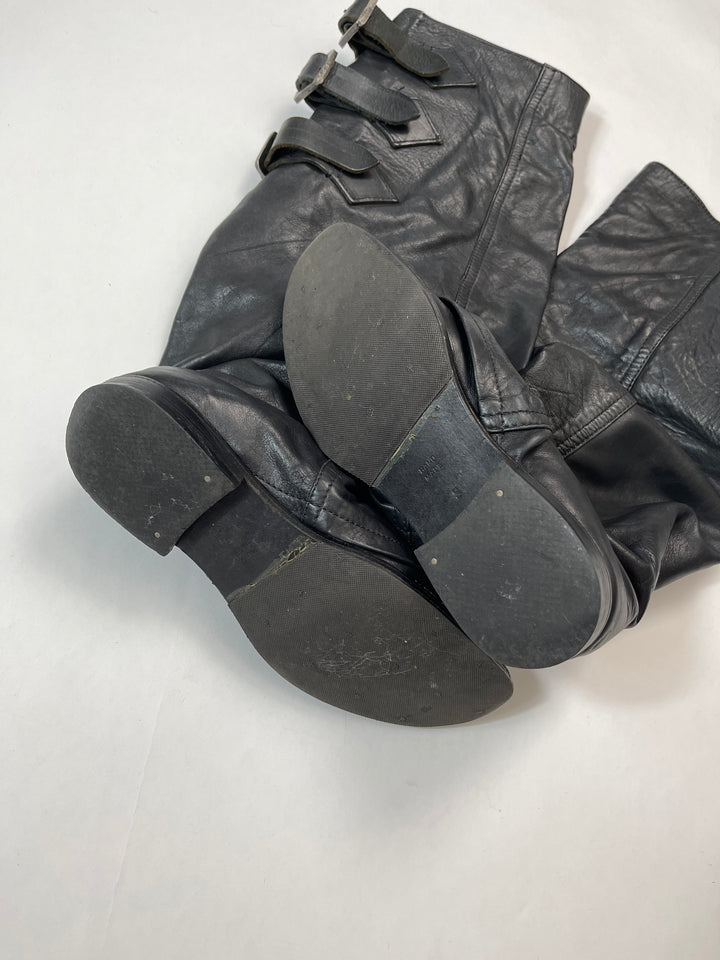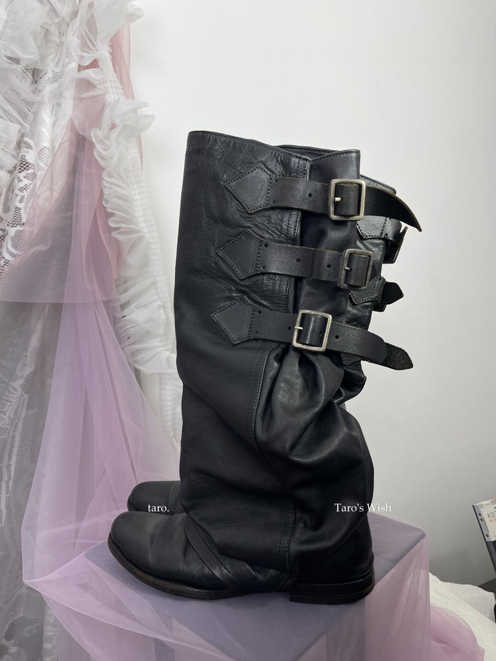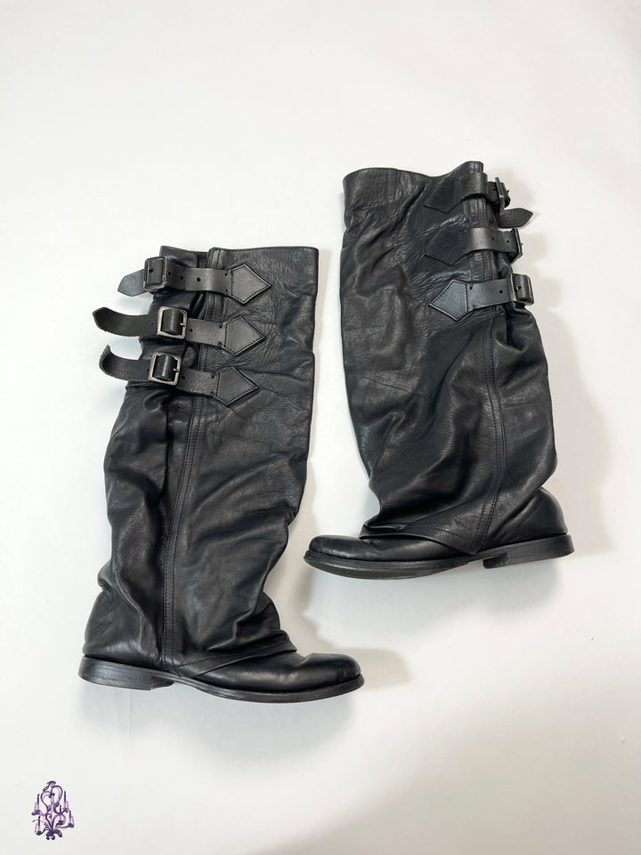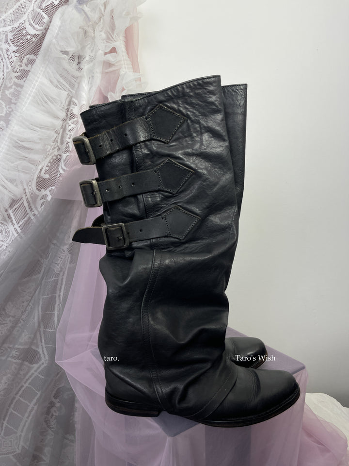 Zucca Genuine Leather Triple Belts Slouch Boots in Black Size S
