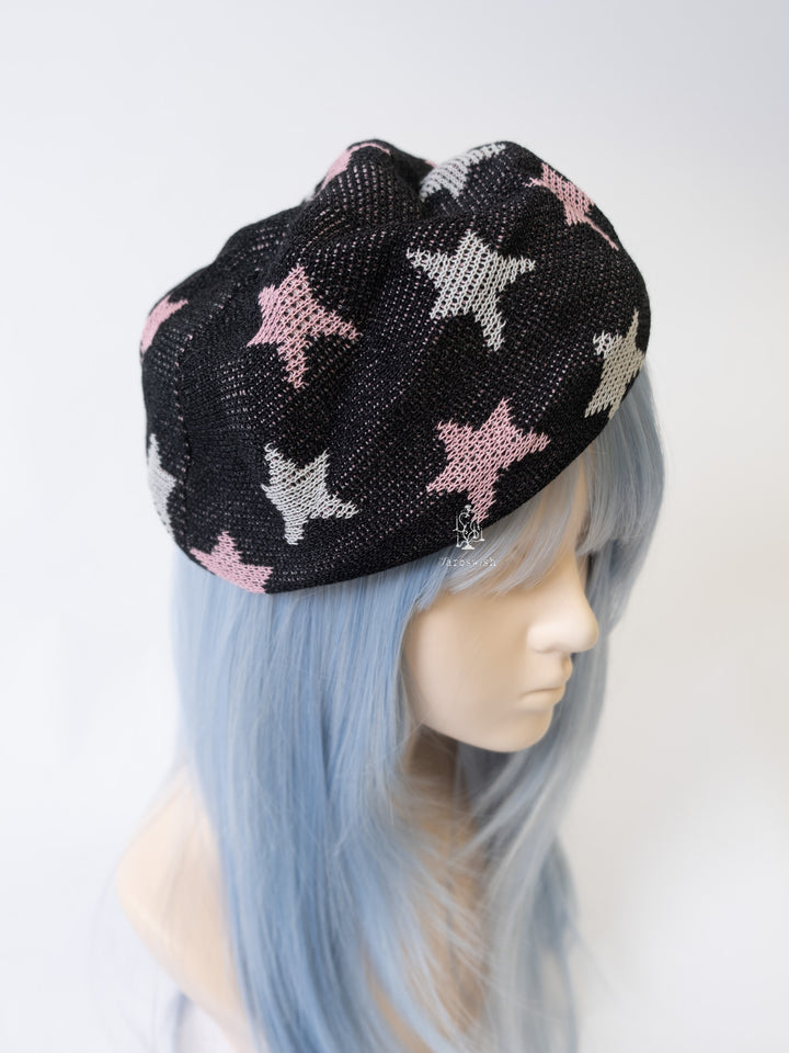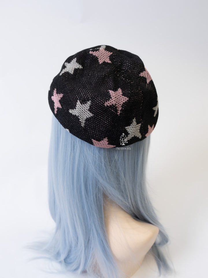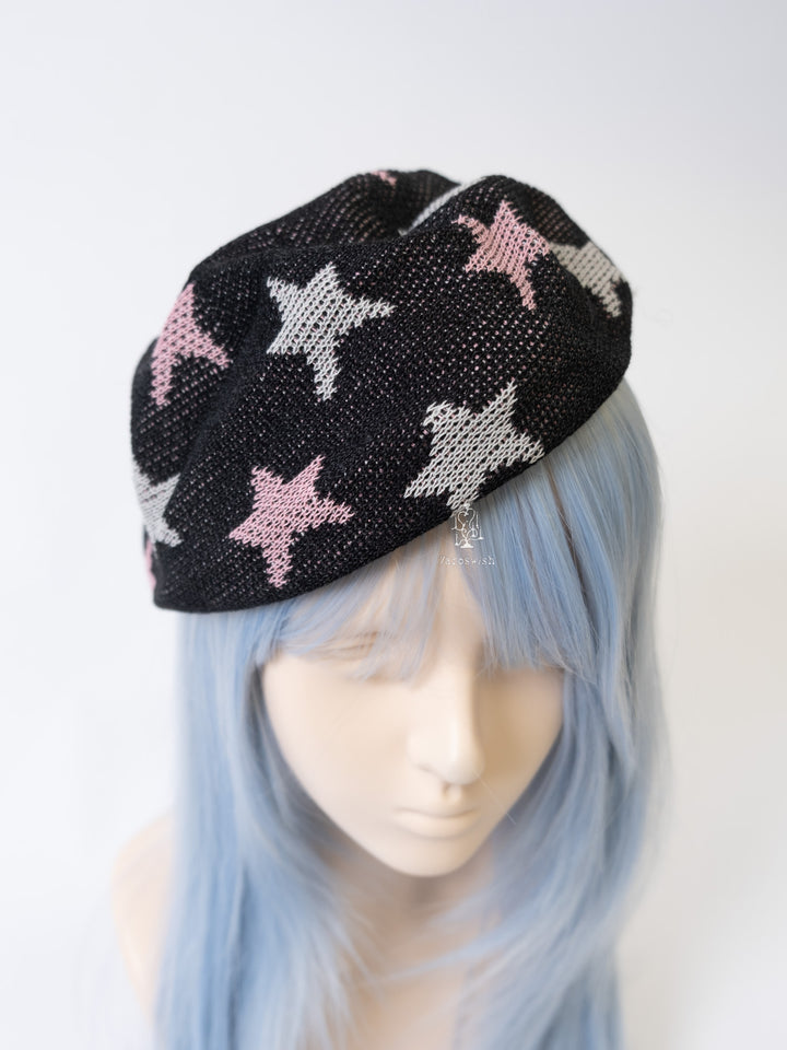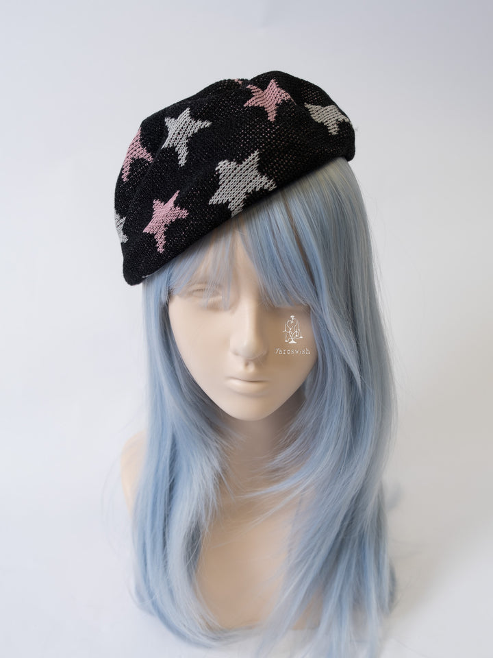BLACK STAR PATTERN KNIT BERET