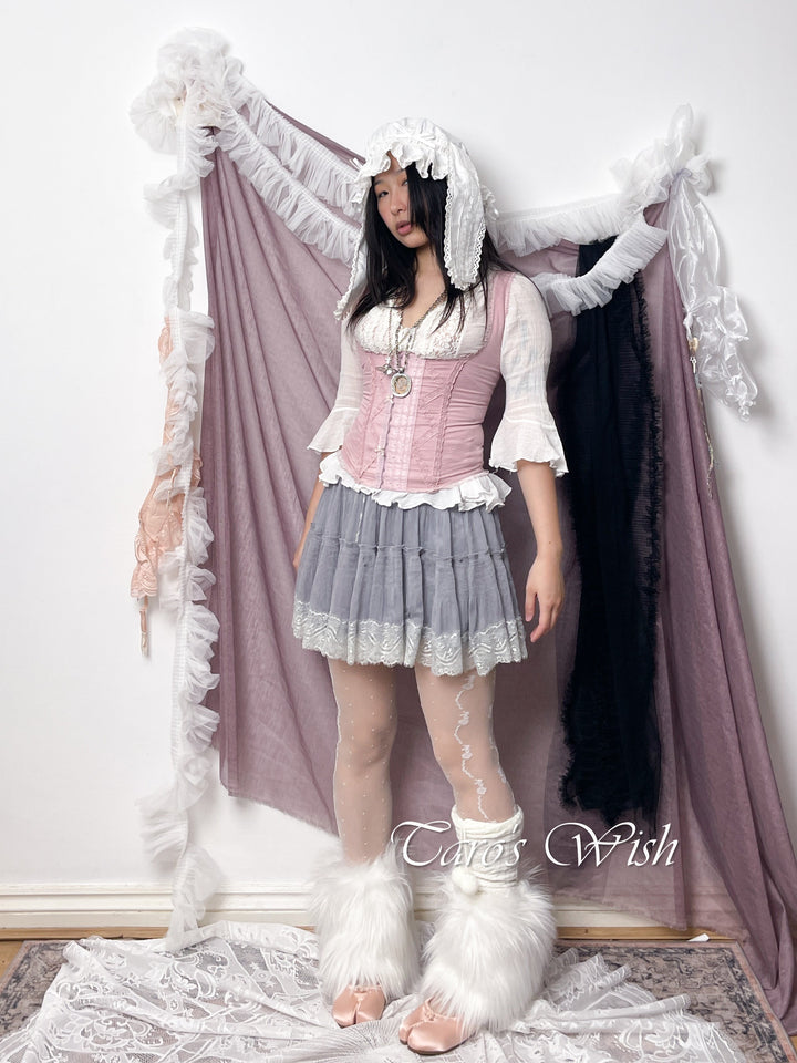Details: lace trim, ribbons, structure.