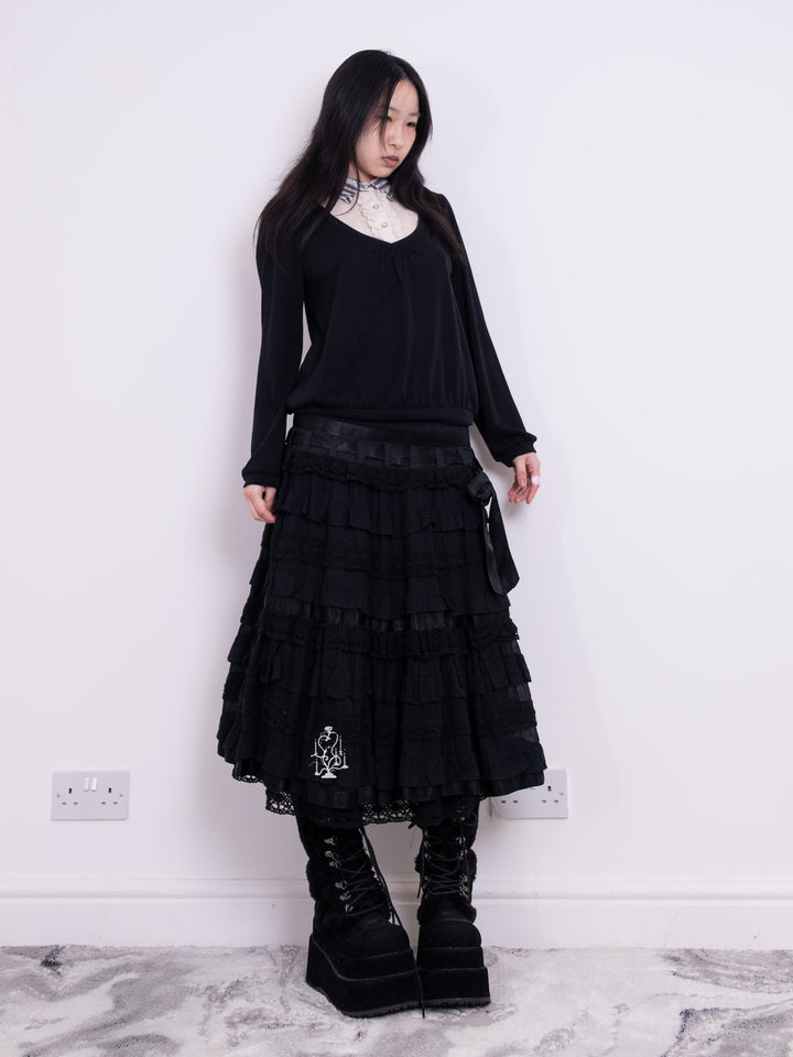 AXES FEMME LAYERED SWEATER BLOUSE WITH PIANO SHEETS COLLAR