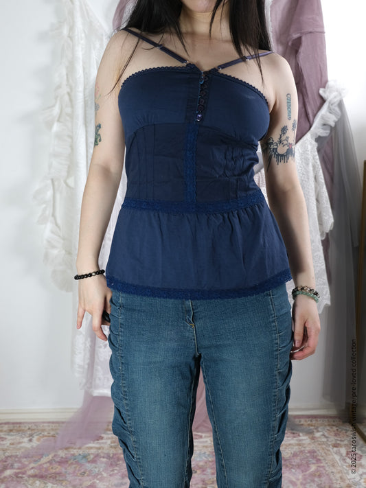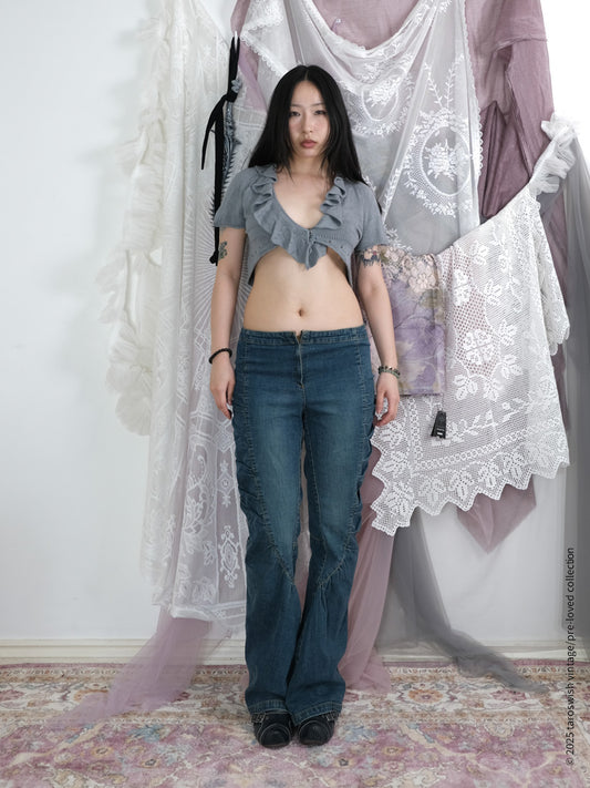 GUESS PLEATED RUFFLE CORSET UP BLOUSE