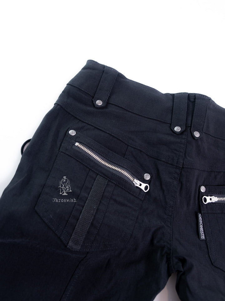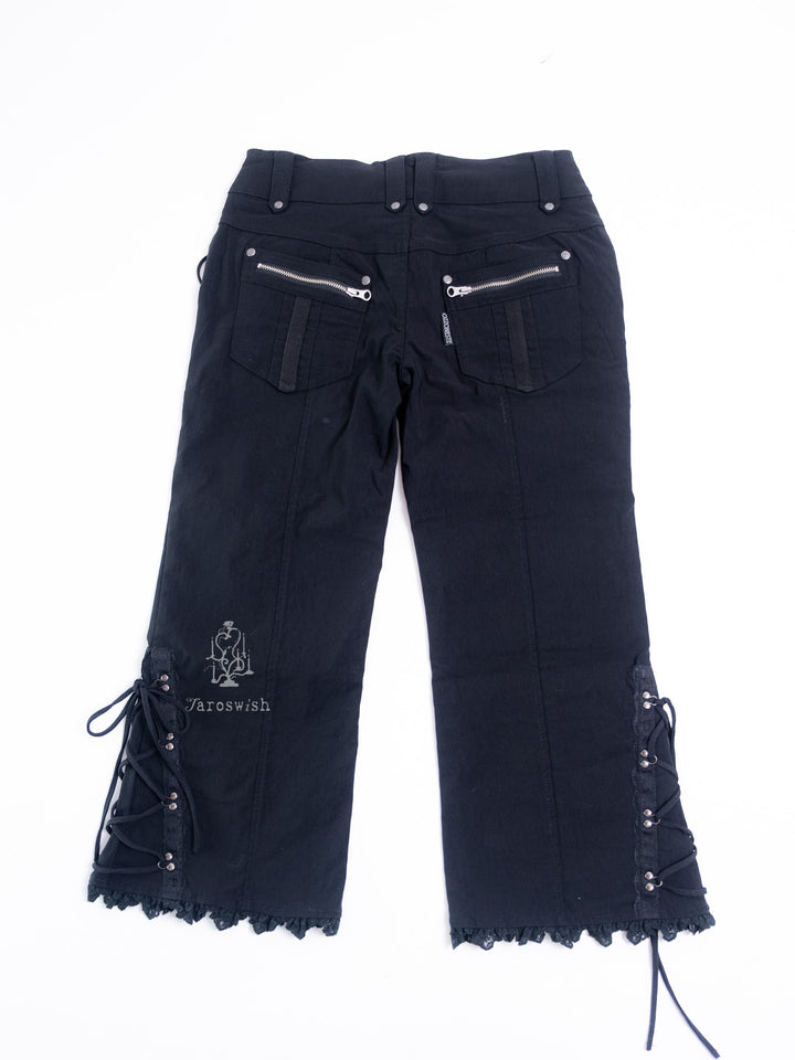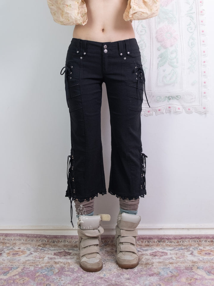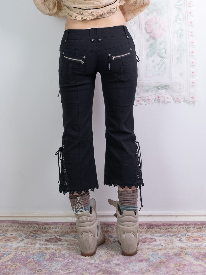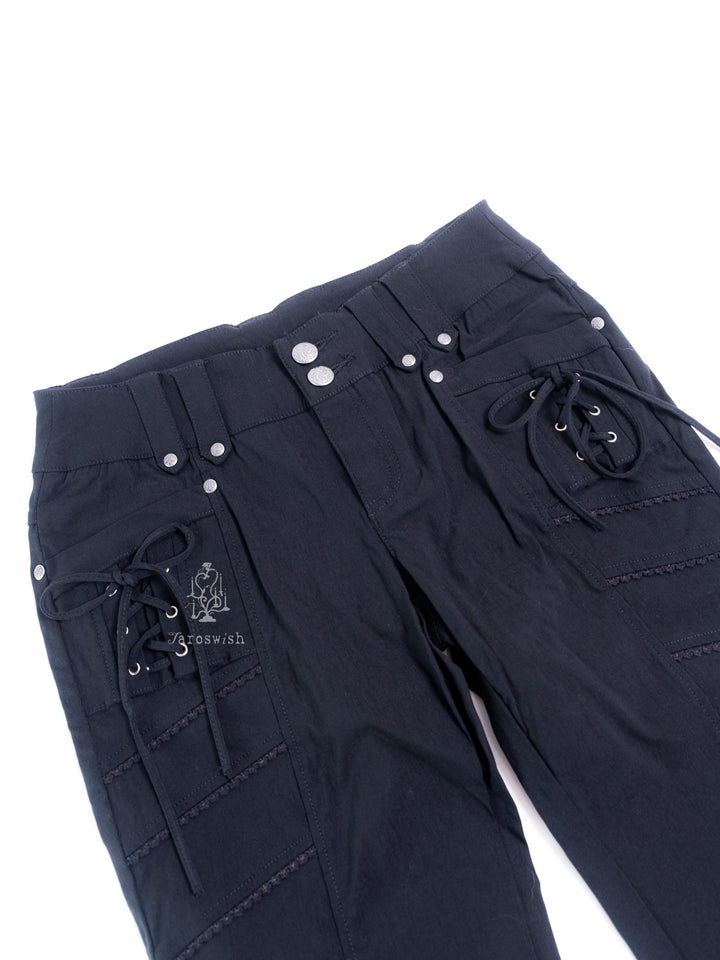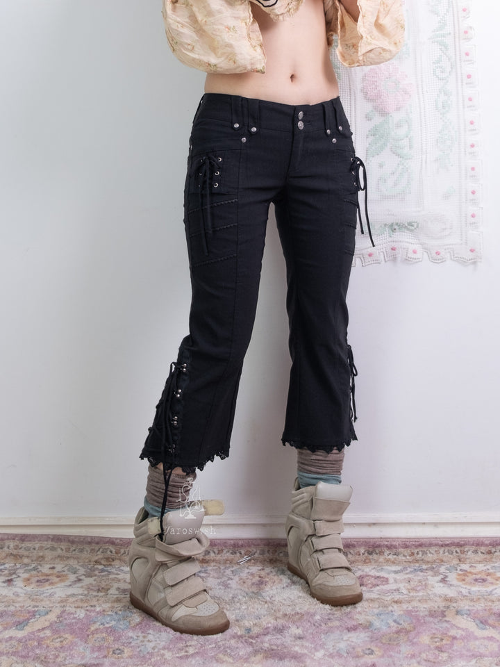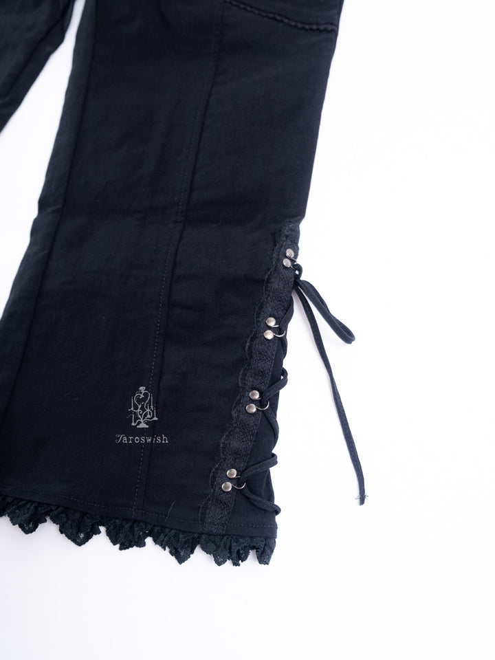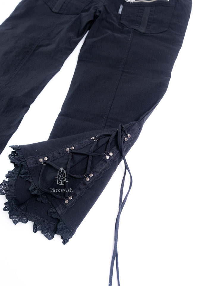 OZZ BLACK LACE-UP DETAIL PANTS WITH LACE HEM