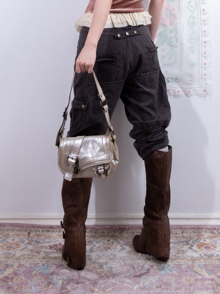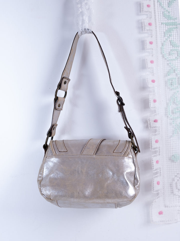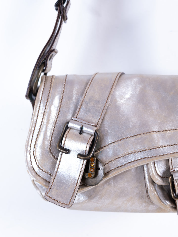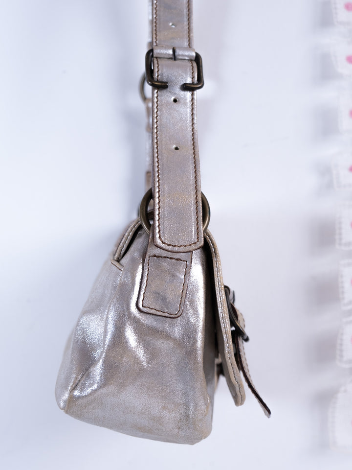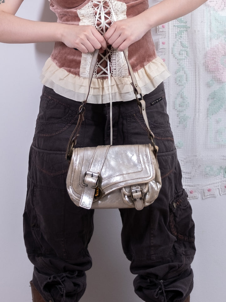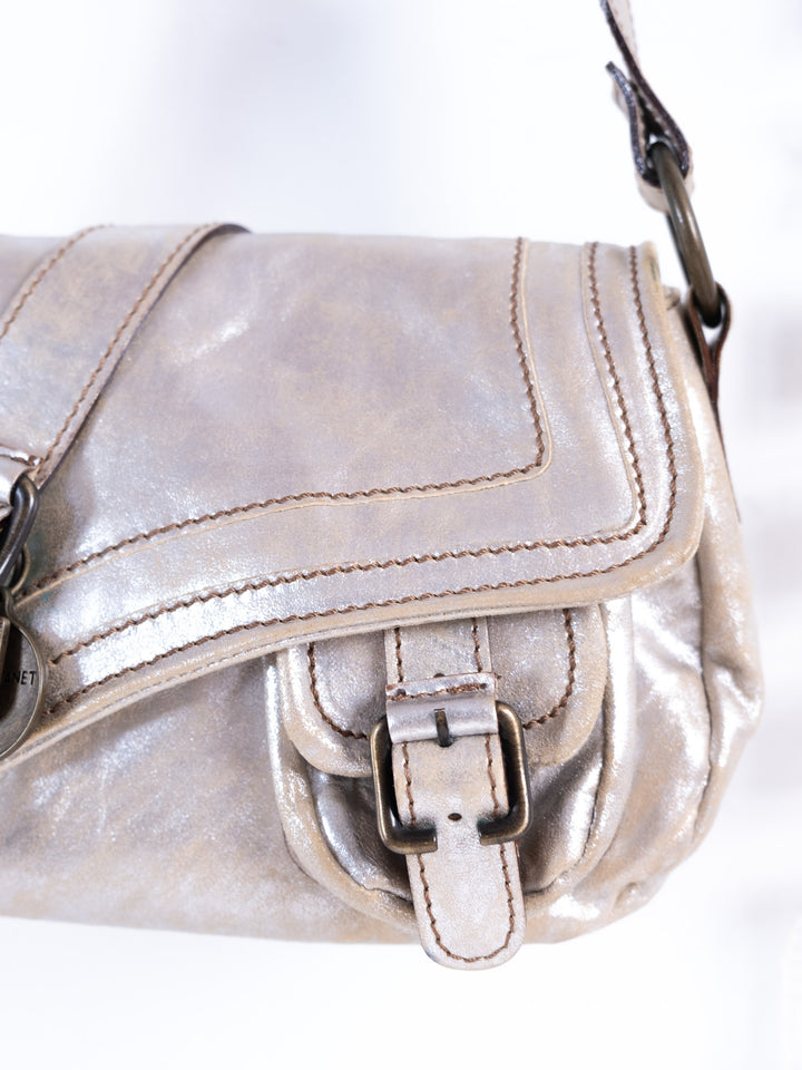 SILVER METALLIC BUCKLE SHOULDER BAG