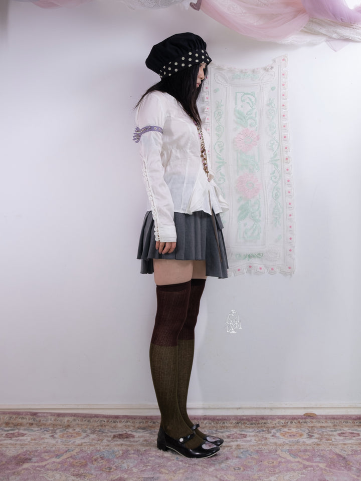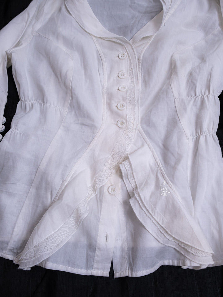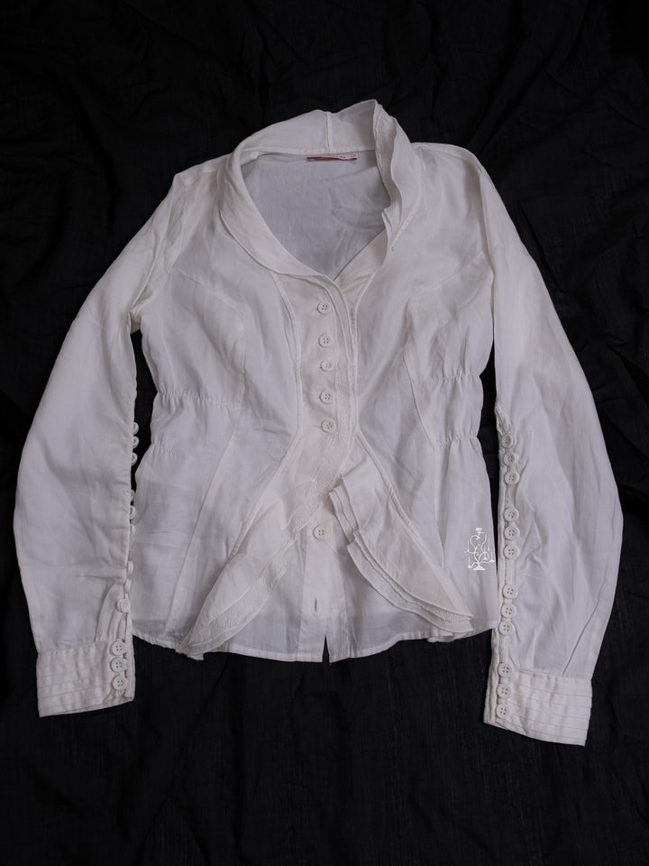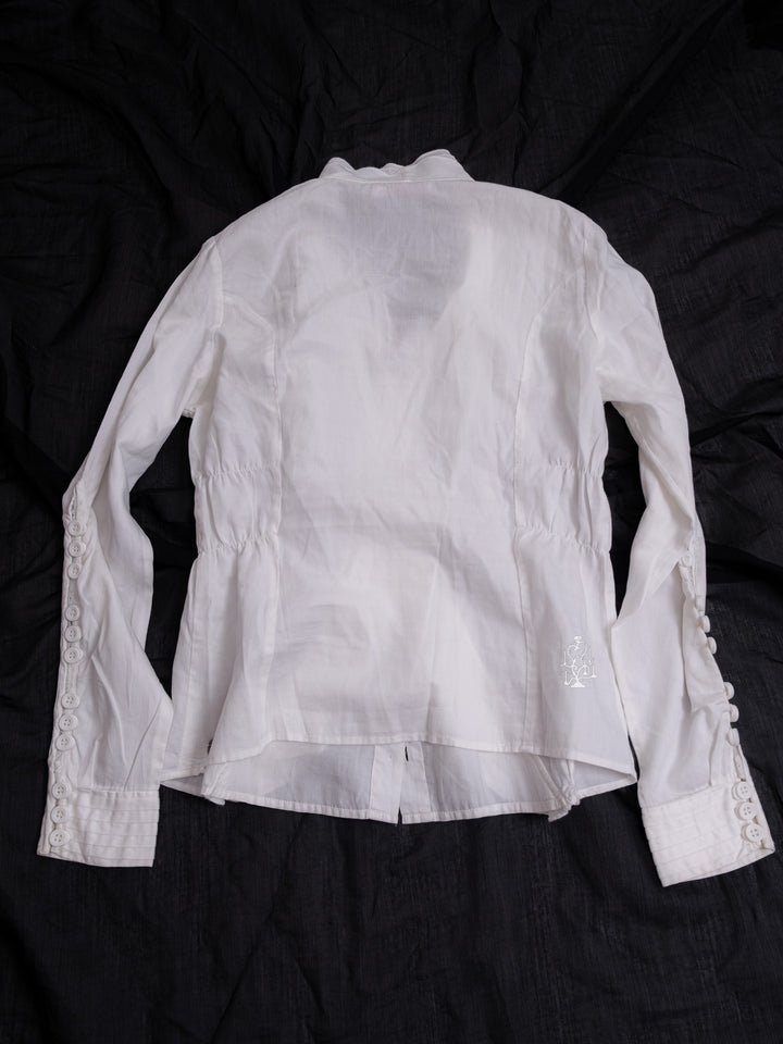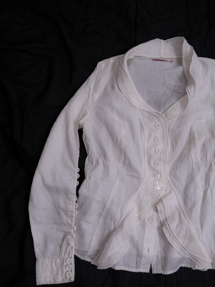 WHITE BUTTON-UP RUFFLE BLOUSE