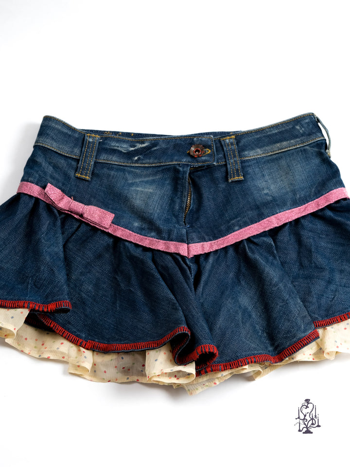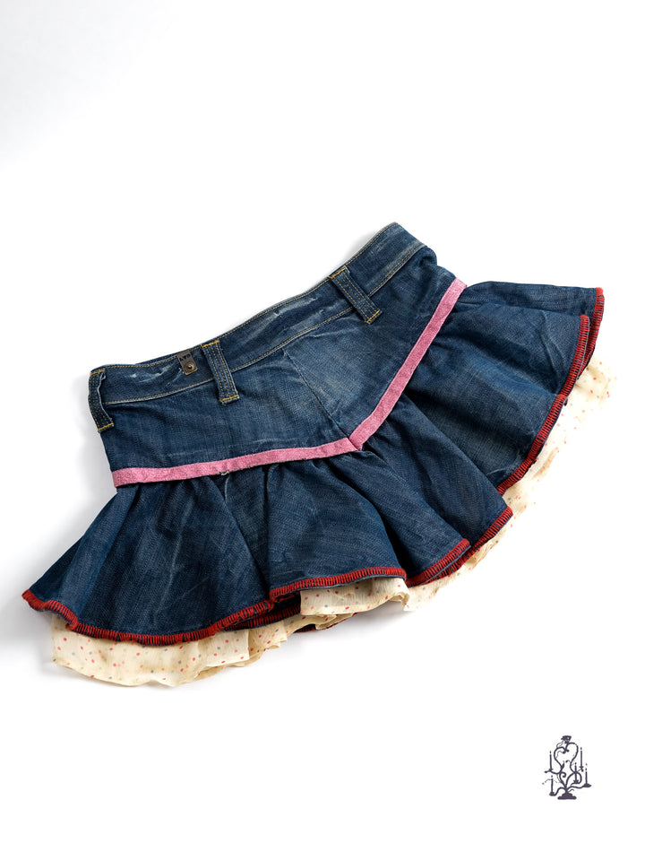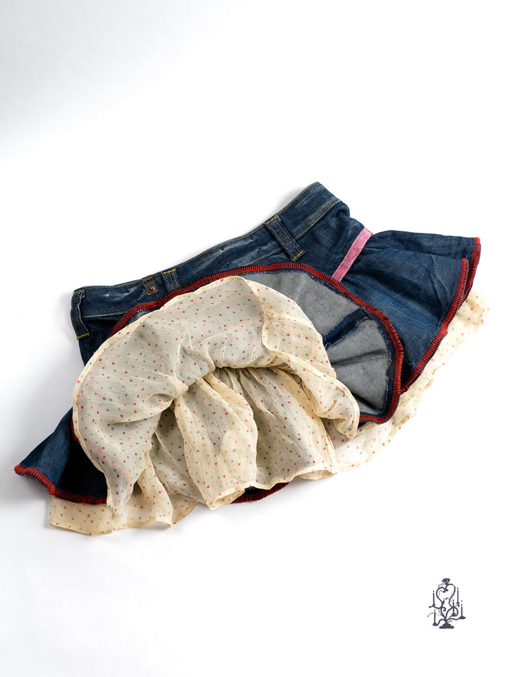 DENIM RUFFLE SKIRT WITH POLKA DOT LAYERS