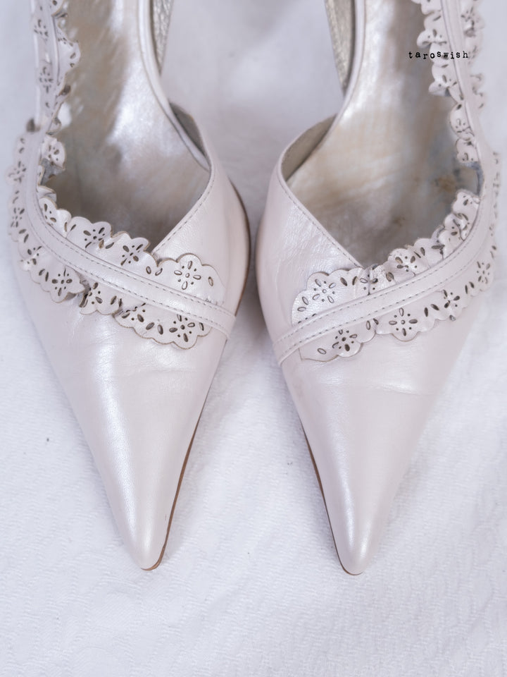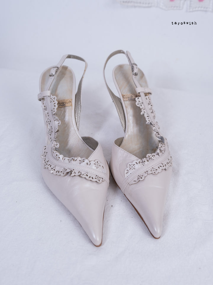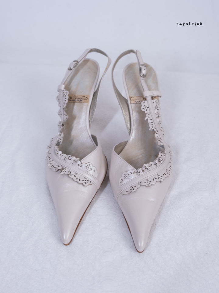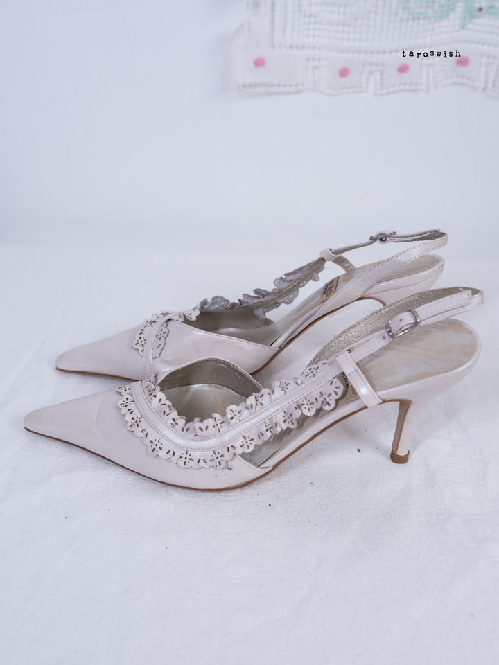 EU38 LACE TRIMMED POINTED SLINGBACK HEELS