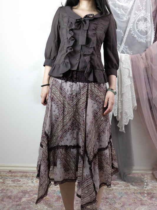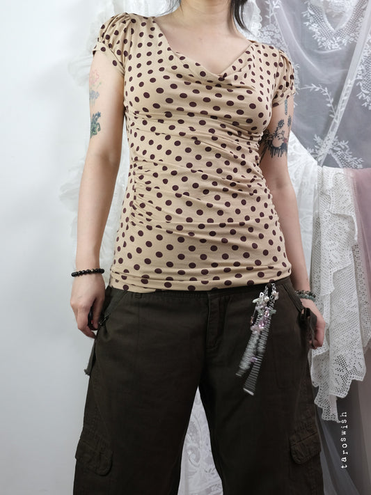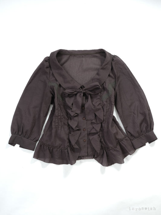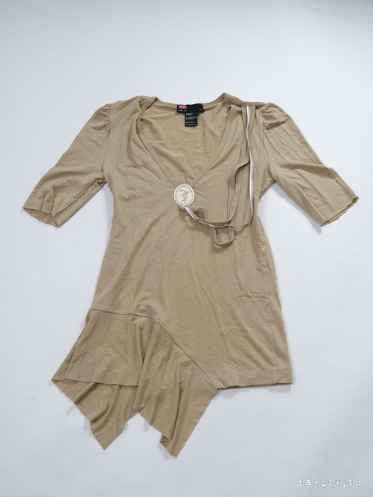 DARK BROWN DRAPED TIE-FRONT TUNIC