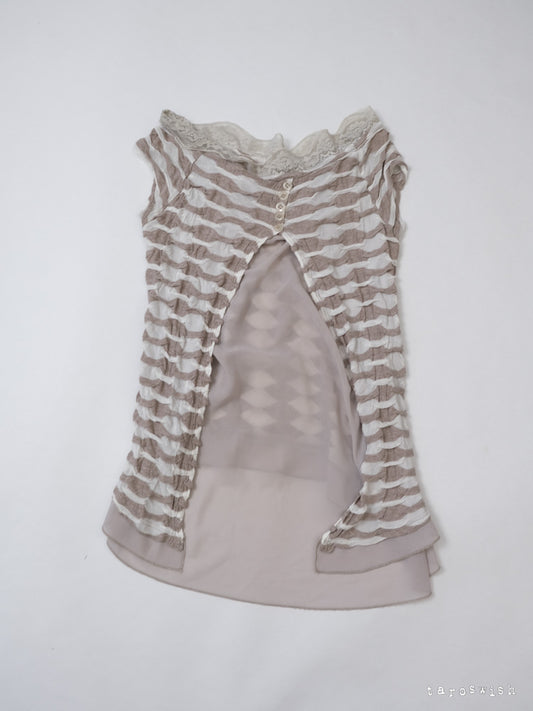 CECIL MCBEE STRIPED SHORT-SLEEVE BUTTON CARDIGAN