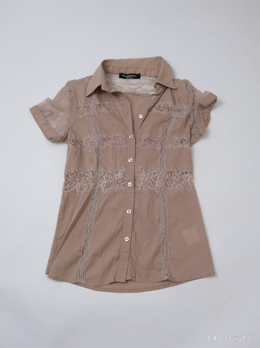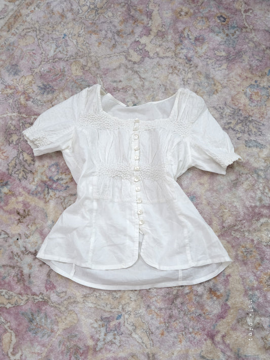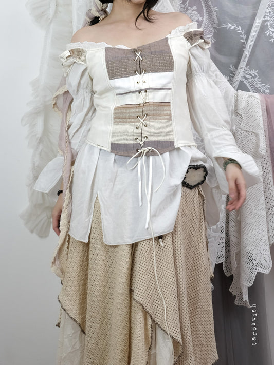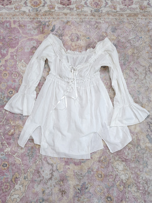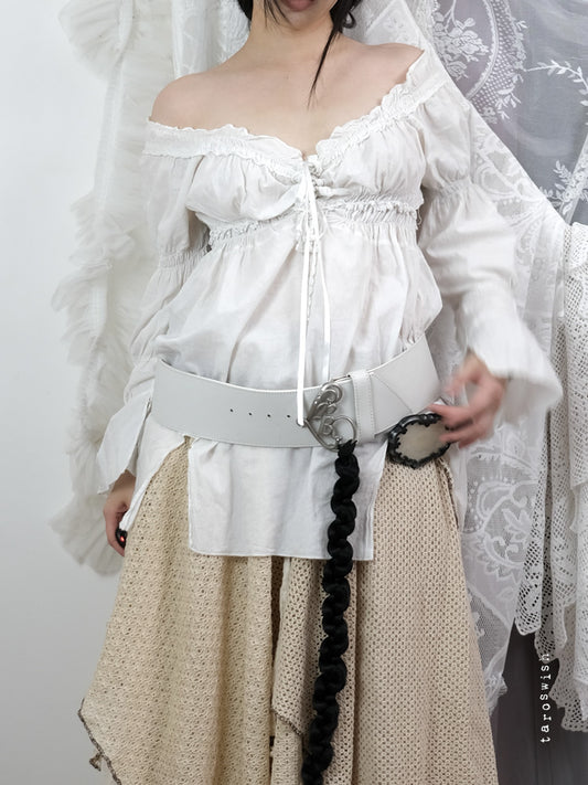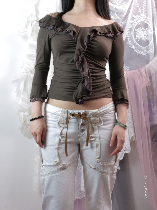 GUESS PLEATED RUFFLE CORSET UP BLOUSE