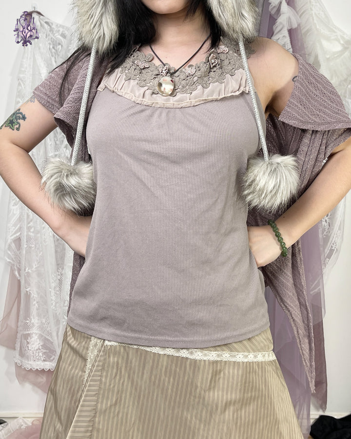 ruffle trim top, japanese label axes femme