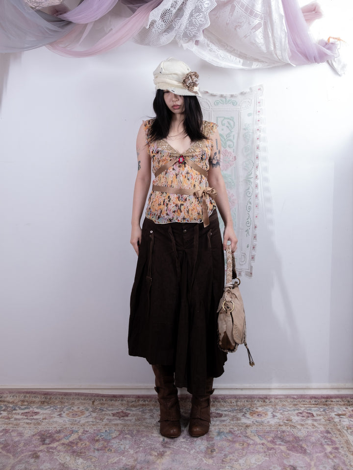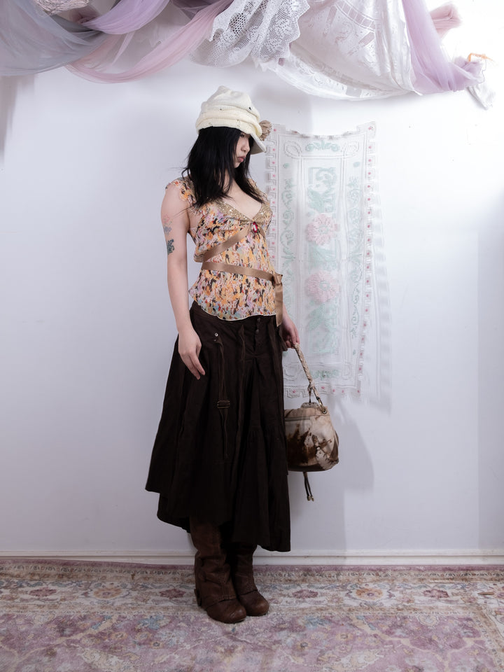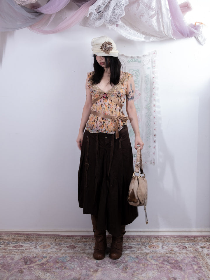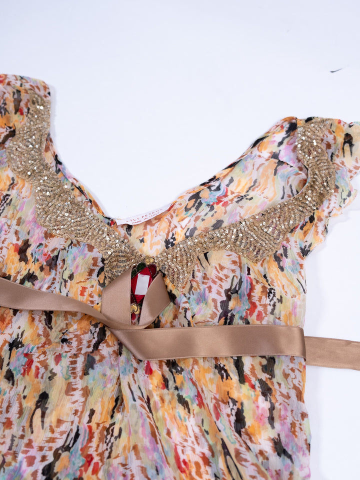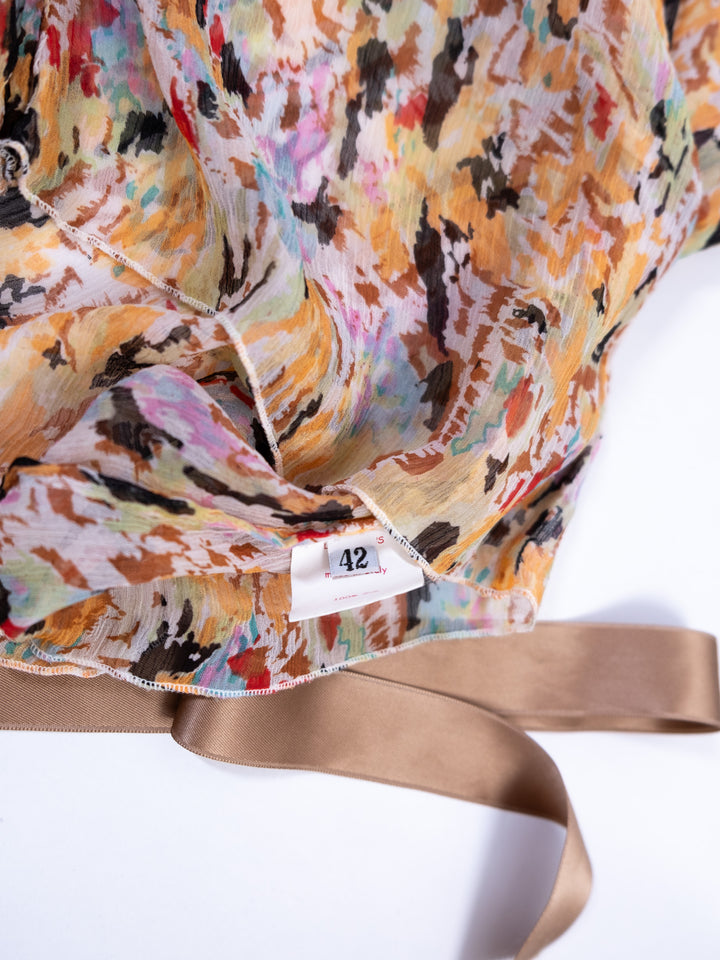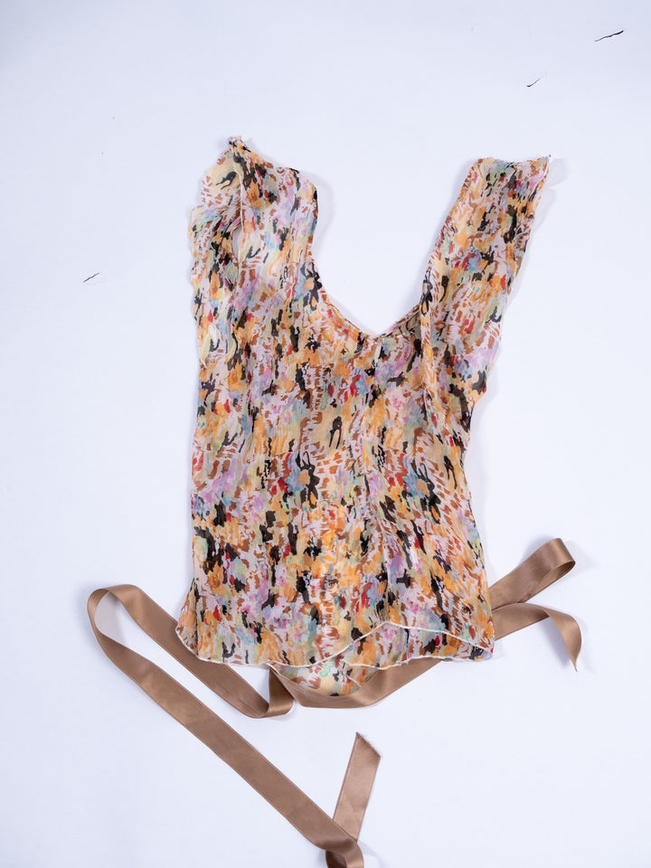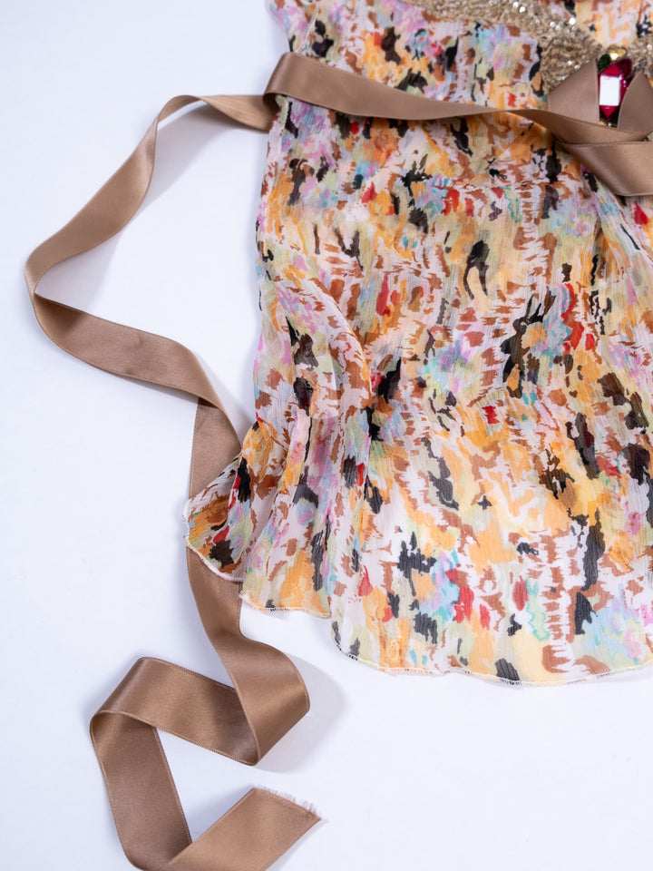 MULTICOLOR FLORAL SHEER BEADED TOP