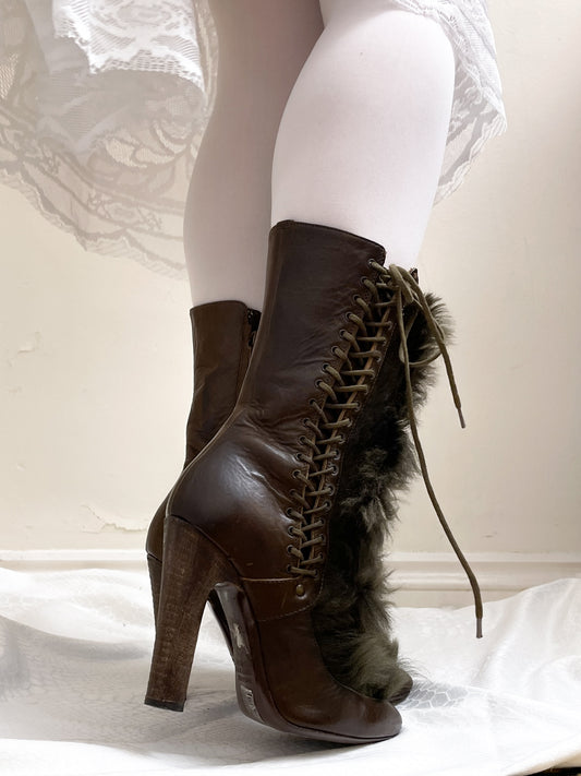 SZIE M ZUCCA BROWN FOLDOVER KNEE-HIGH BOOTS