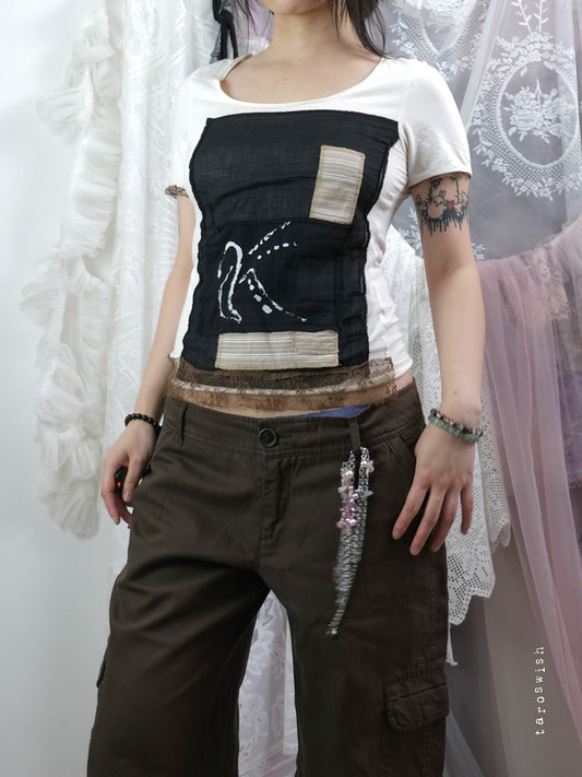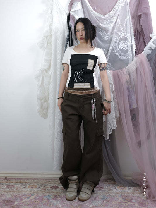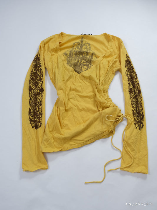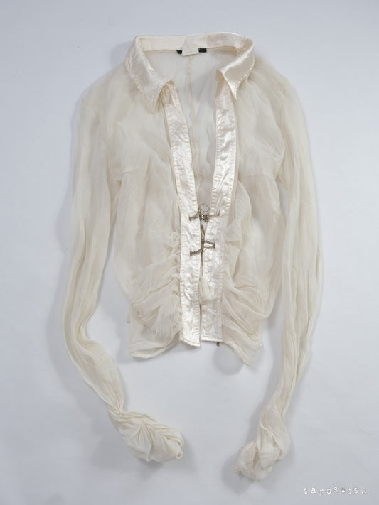 GUESS PLEATED RUFFLE CORSET UP BLOUSE