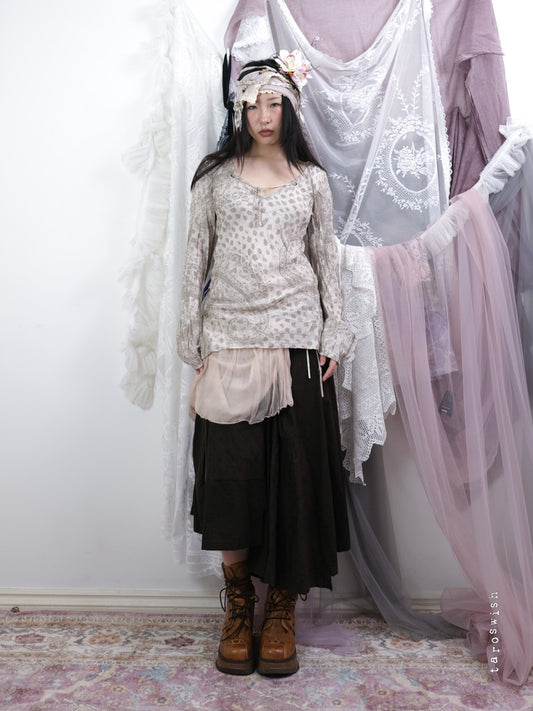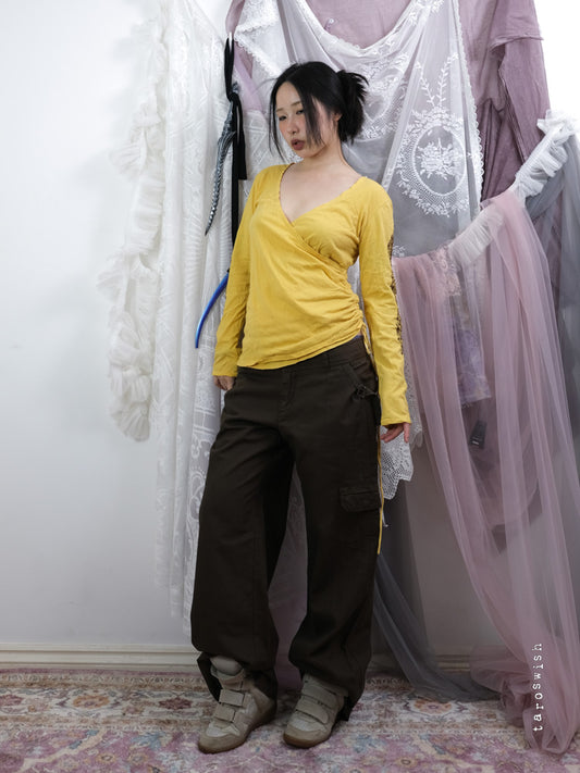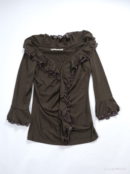 DARK BROWN DRAPED TIE-FRONT TUNIC