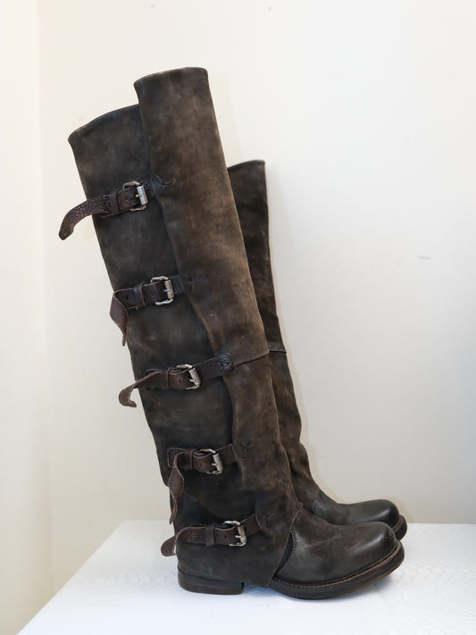 SZIE M ZUCCA BROWN FOLDOVER KNEE-HIGH BOOTS