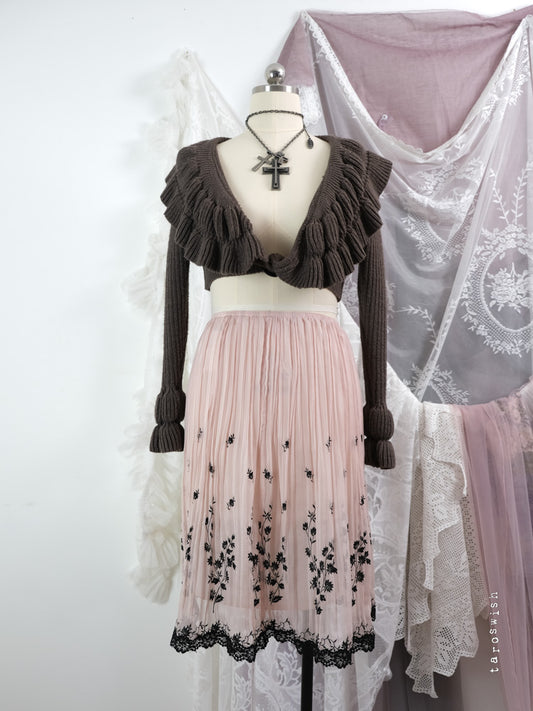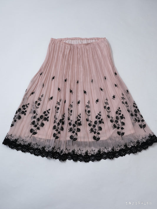 BEIGE EMBROIDERED PANEL LONG SKIRT