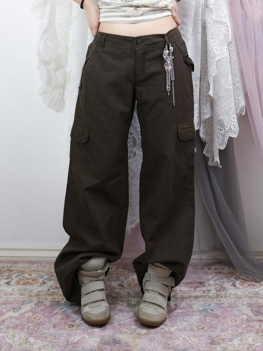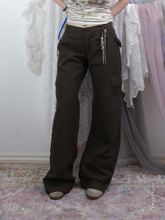 DRAWSTRING WHITE CARGO FLARED PANTS