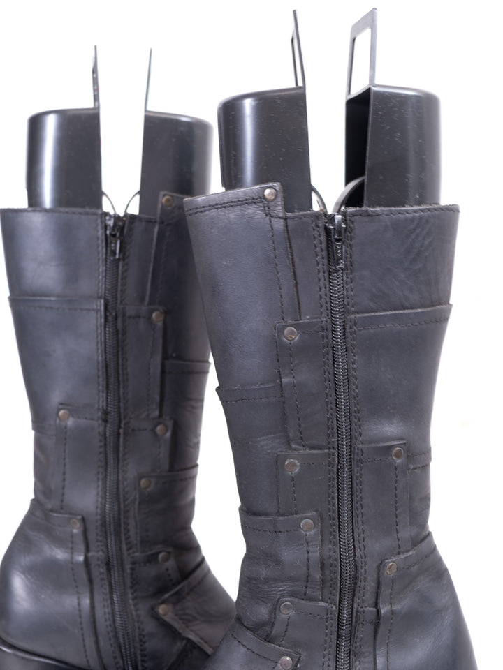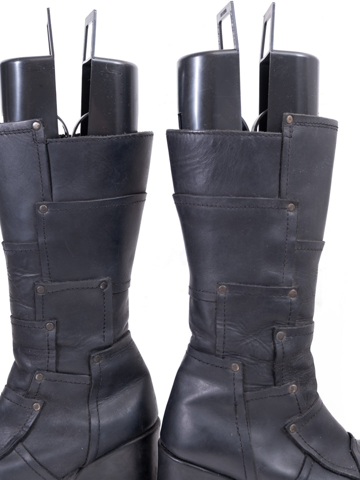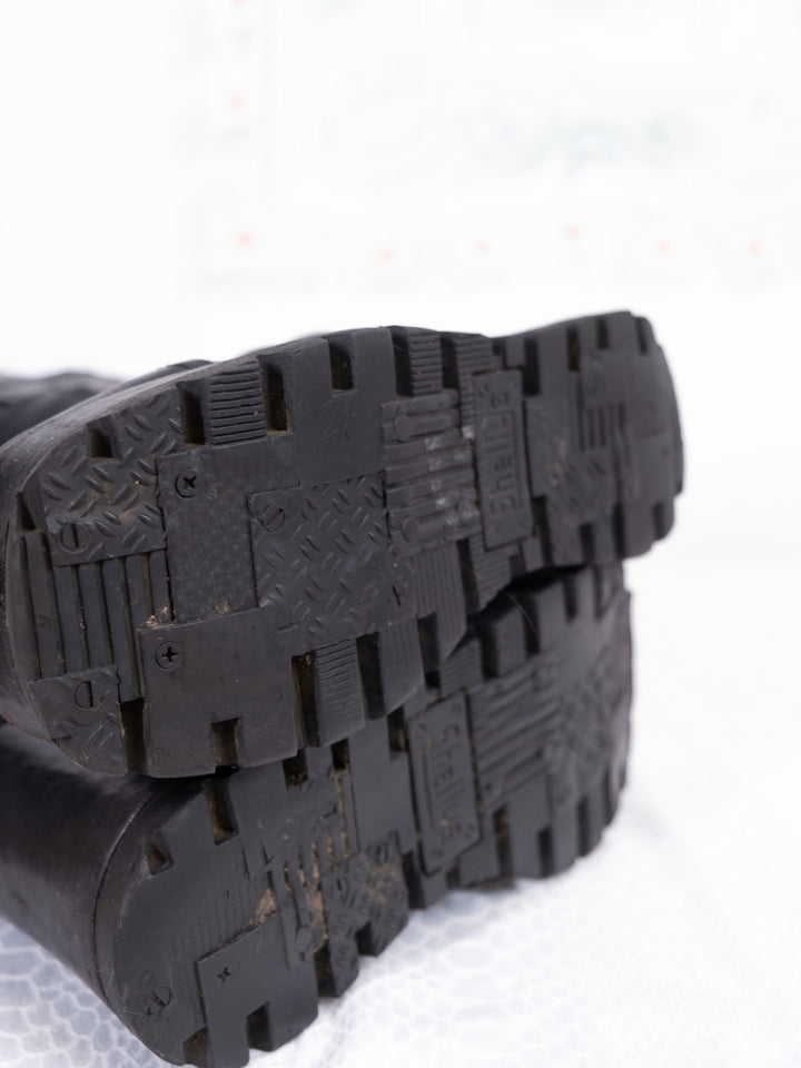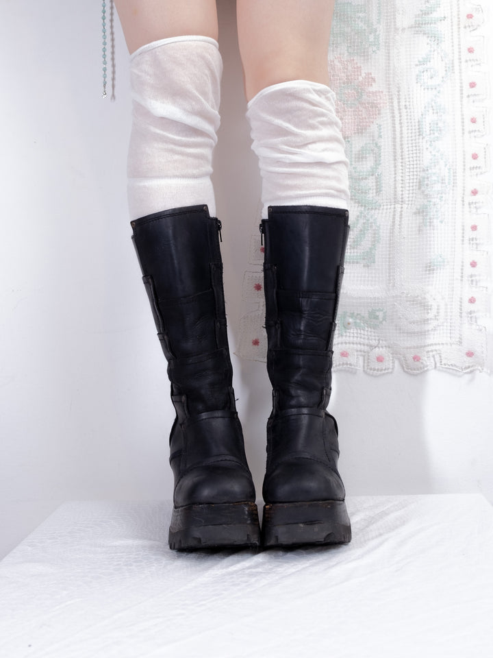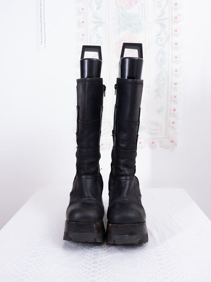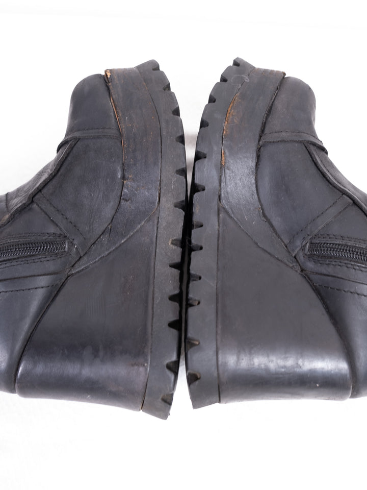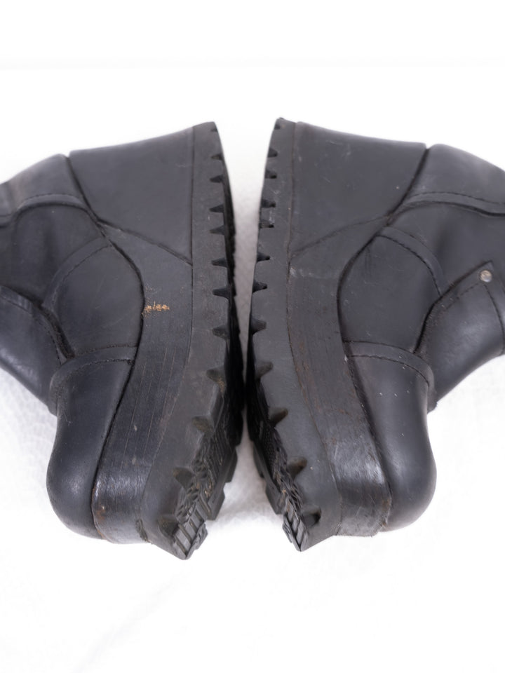 EU39 BLACK LEATHER PLATFORM WEDGE BOOTS