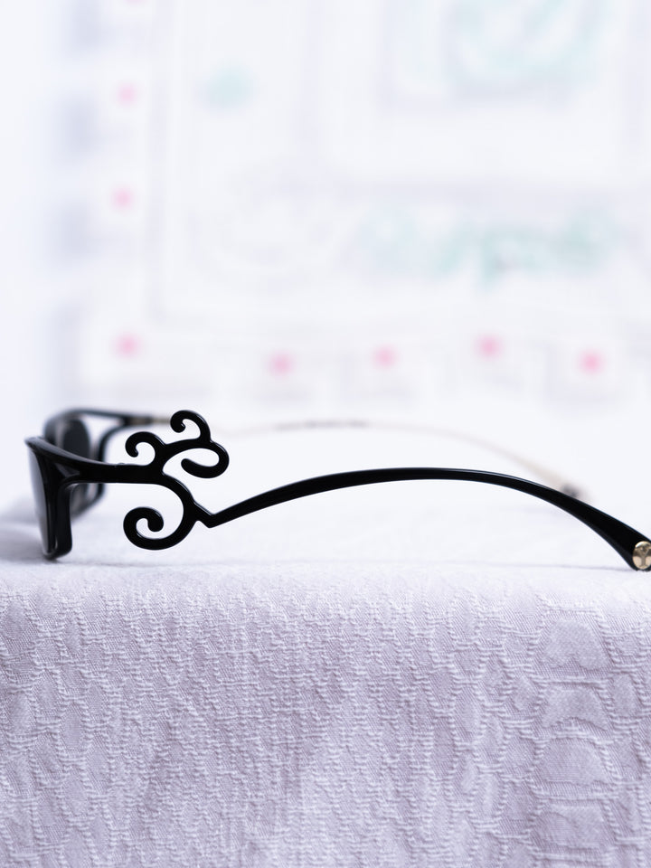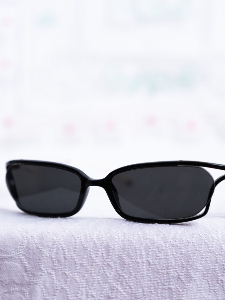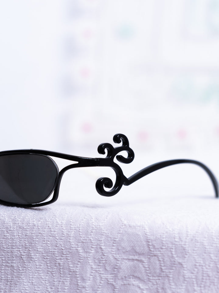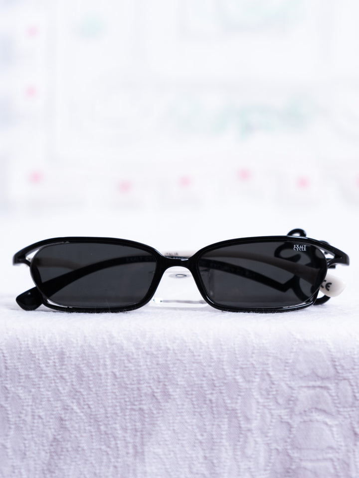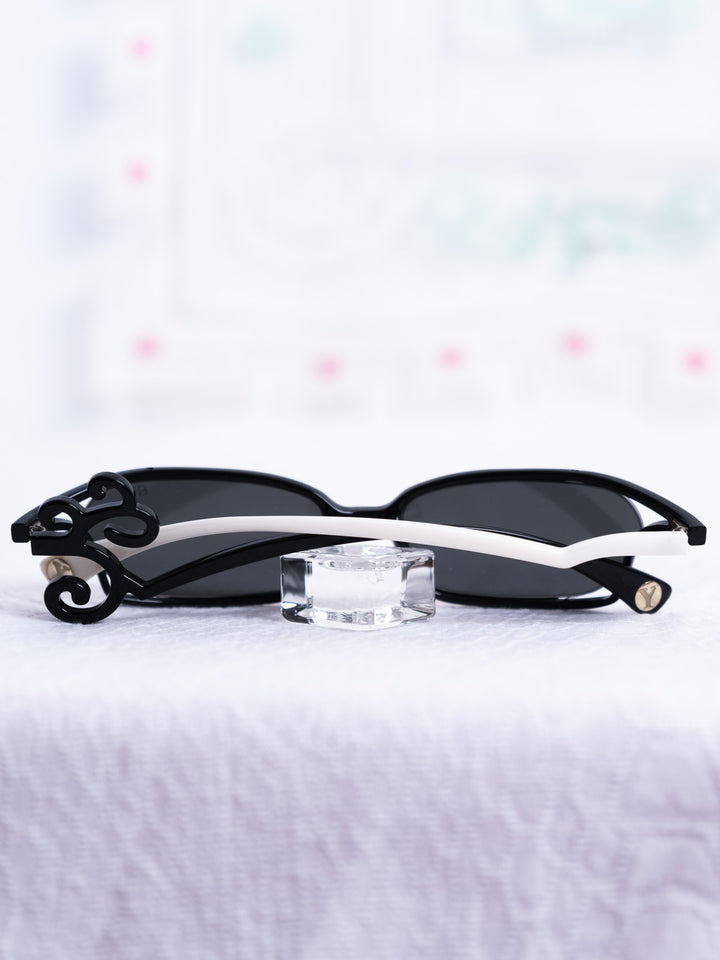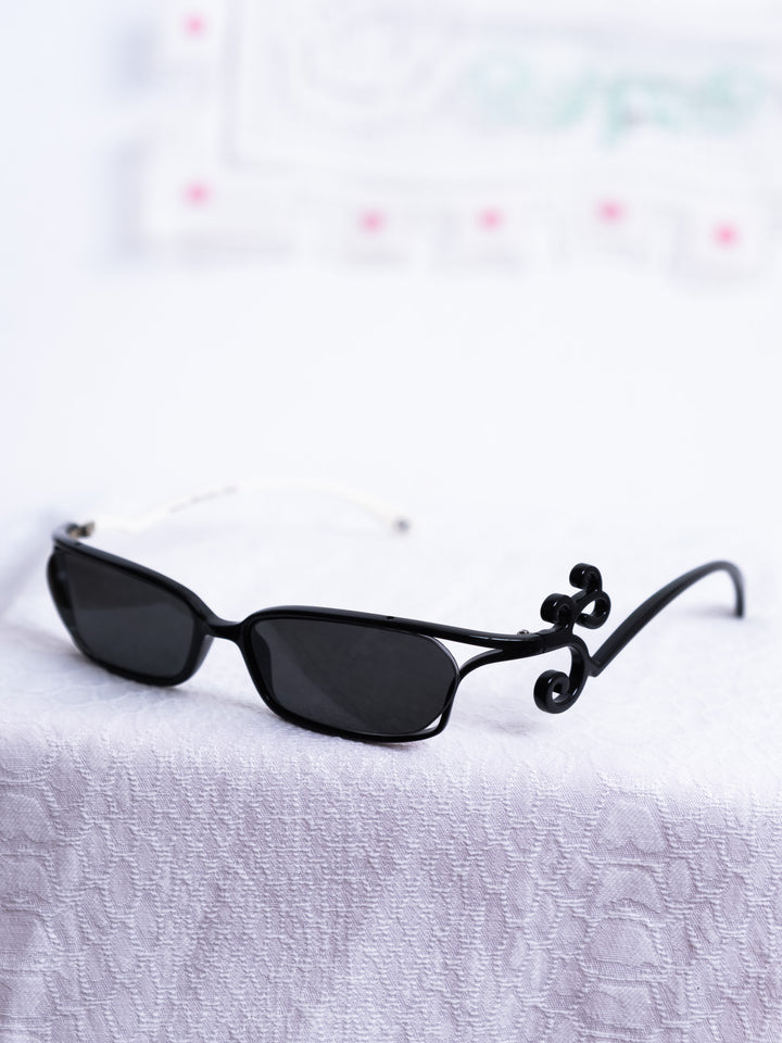 BLACK RECTANGULAR SUNGLASSES WITH SCROLL DETAIL