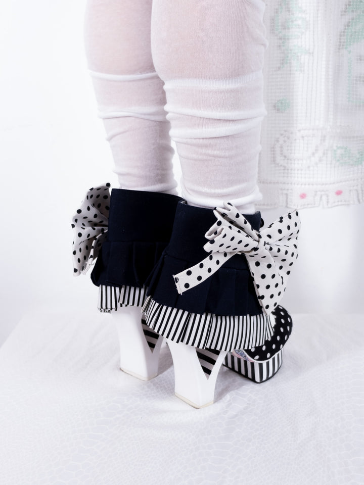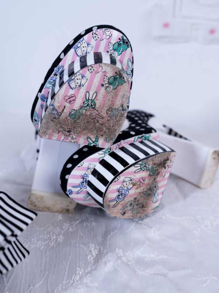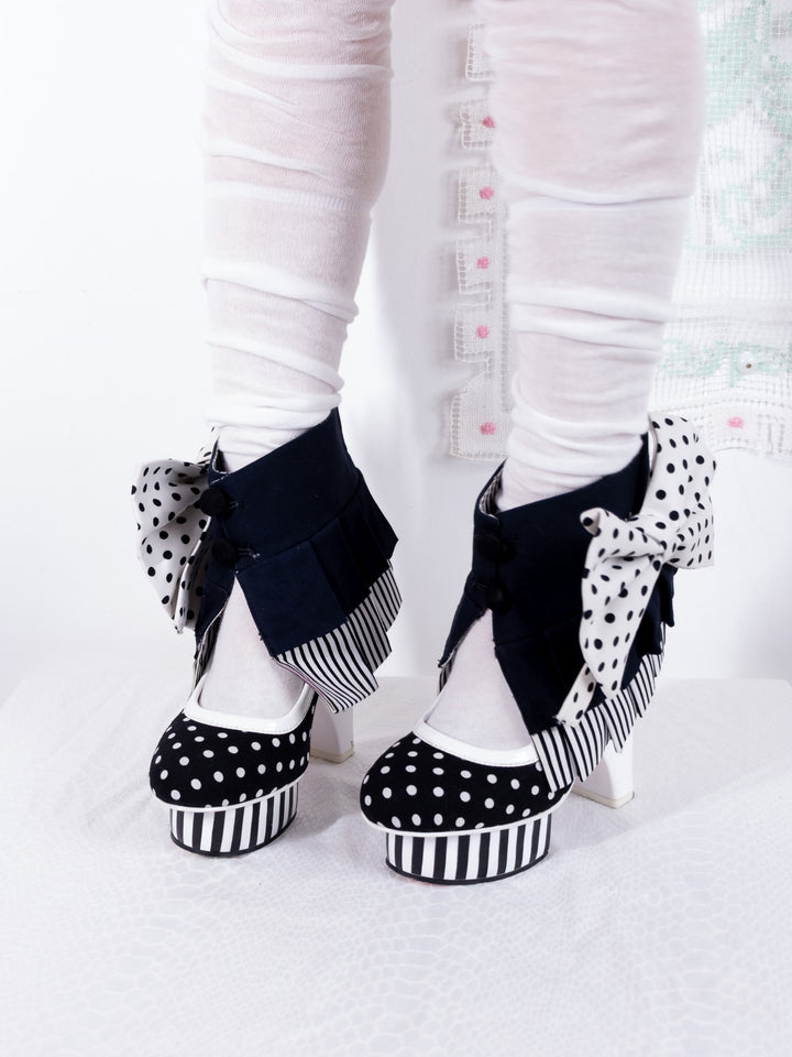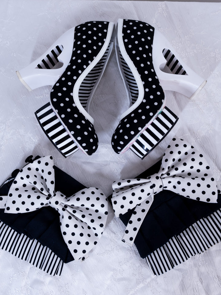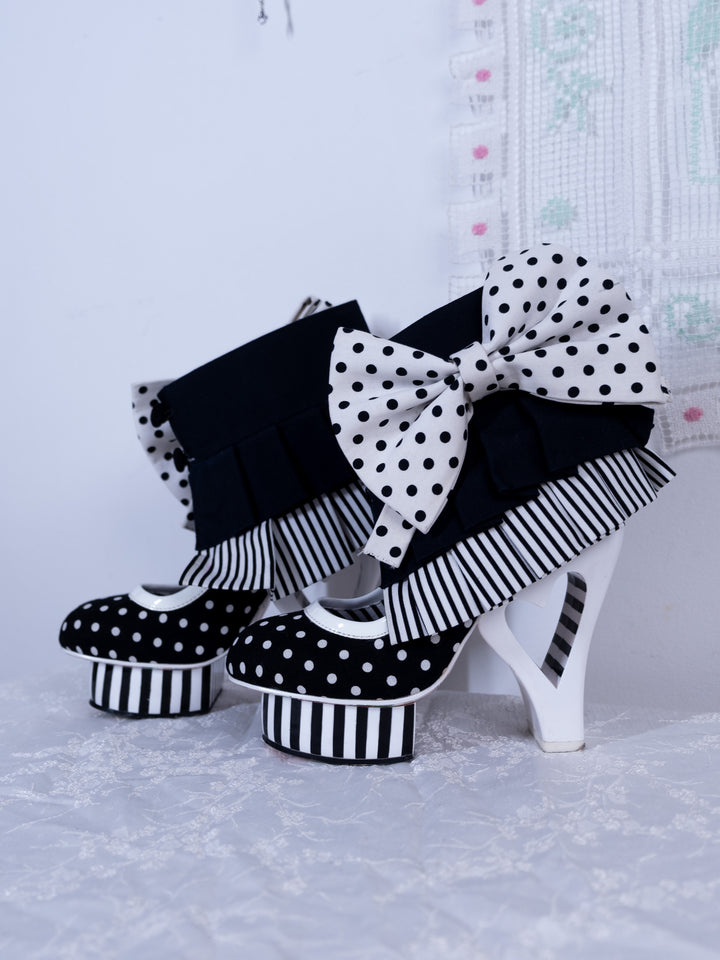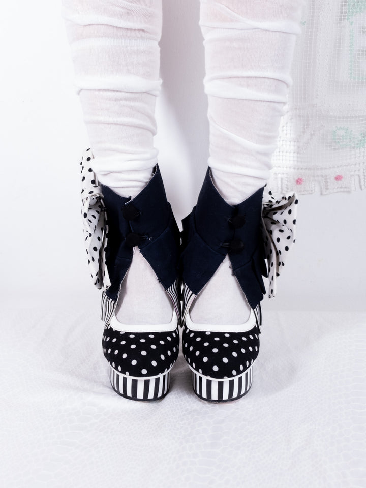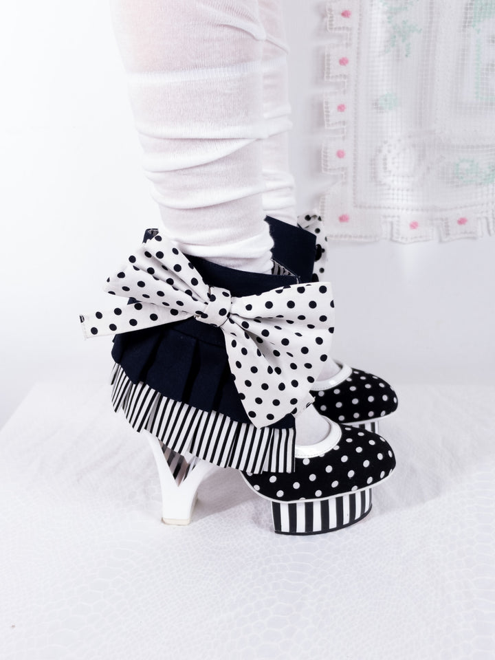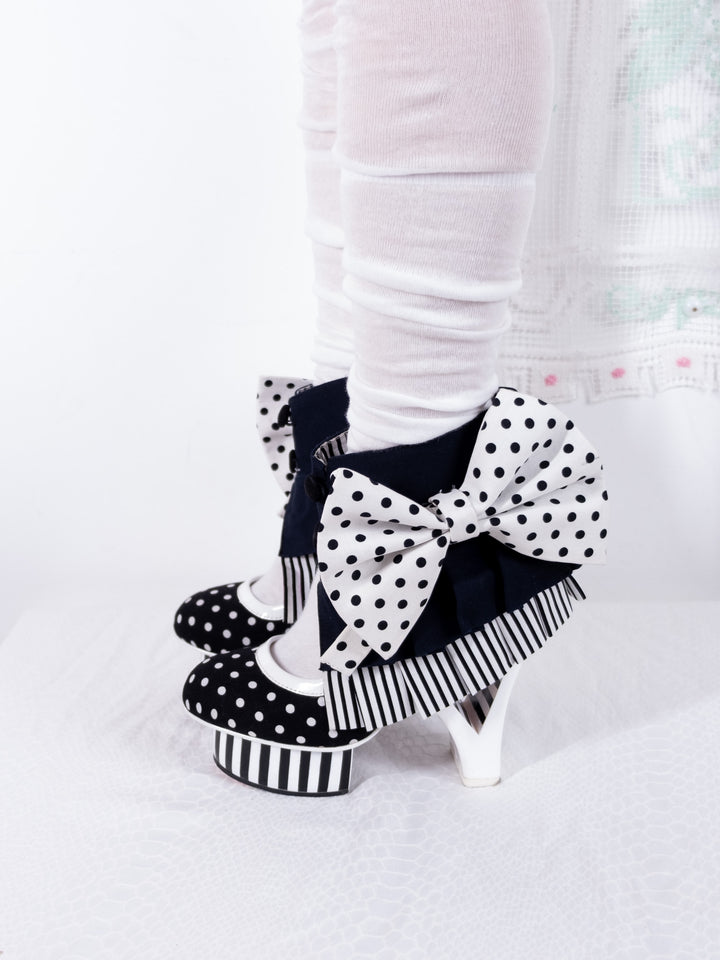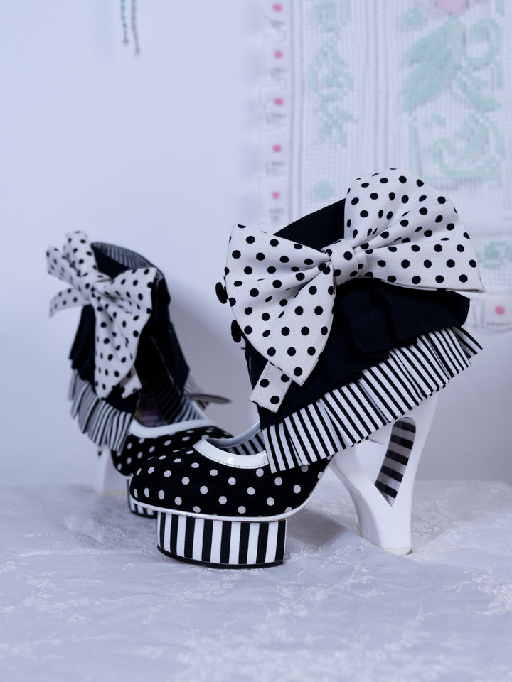 IRREGULAR CHOICE EU38 BLACK AND WHITE POLKA DOT BOW HEELS