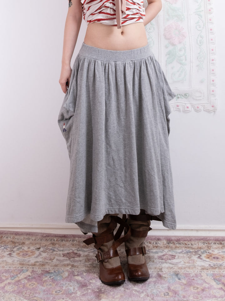 GREY JERSEY SKIRT WITH EMBROIDERY DETAIL