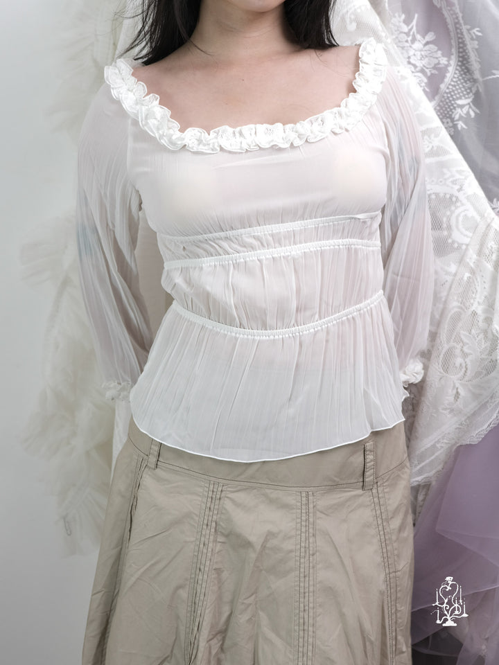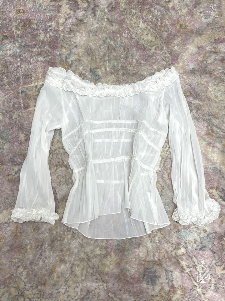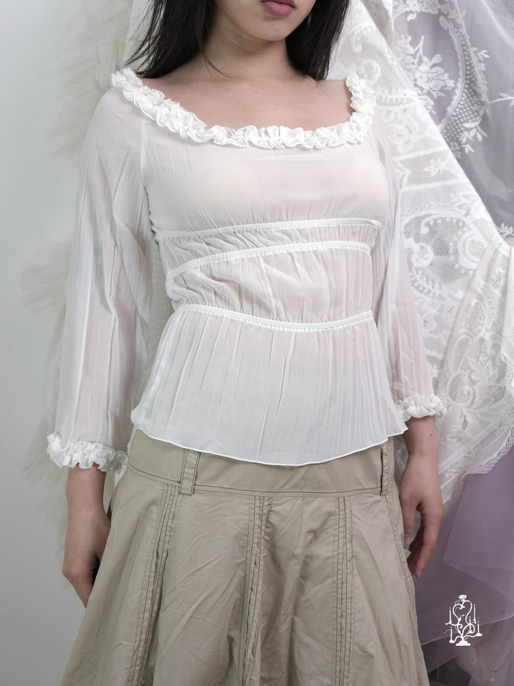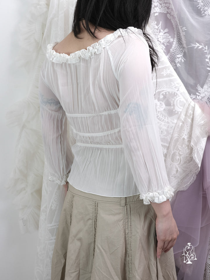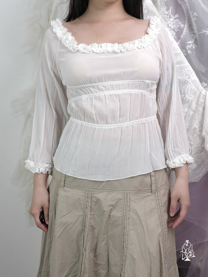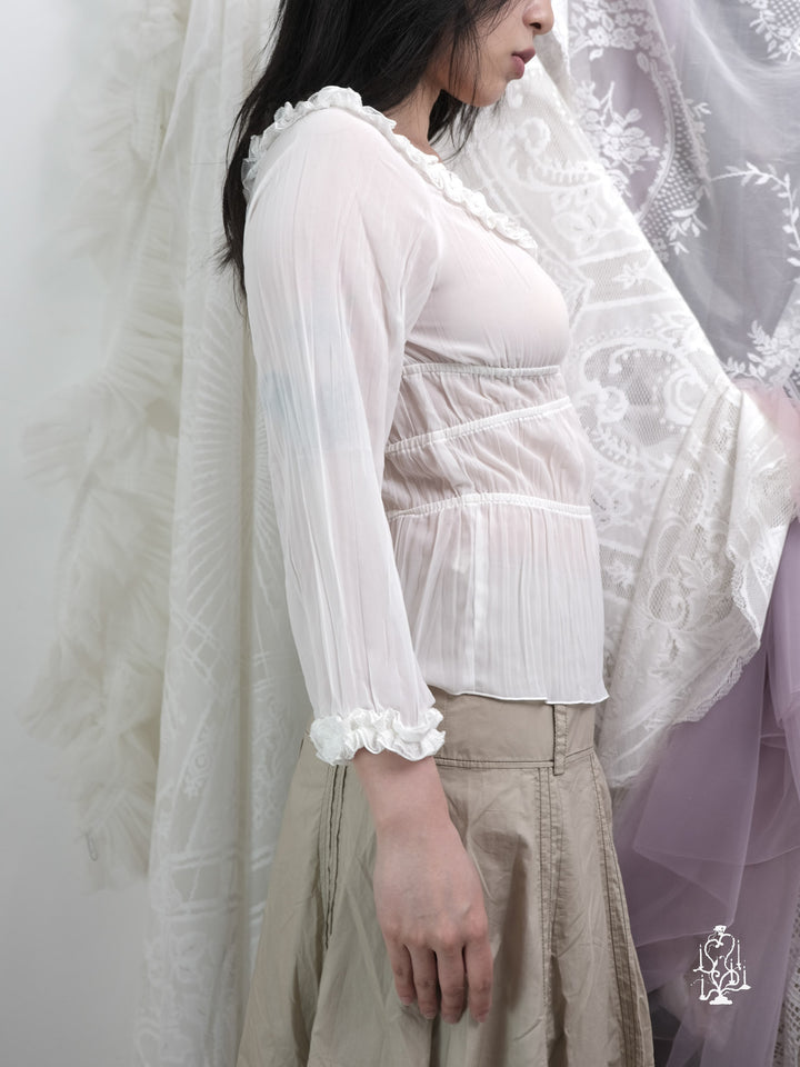 SHEER WHITE RUFFLED BLOUSE