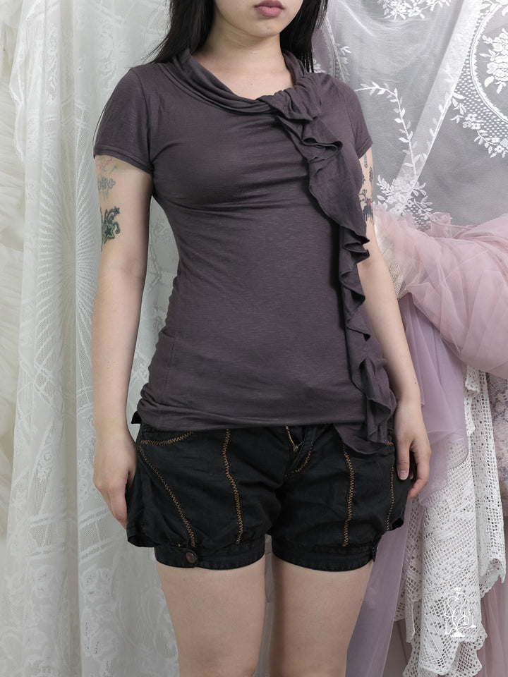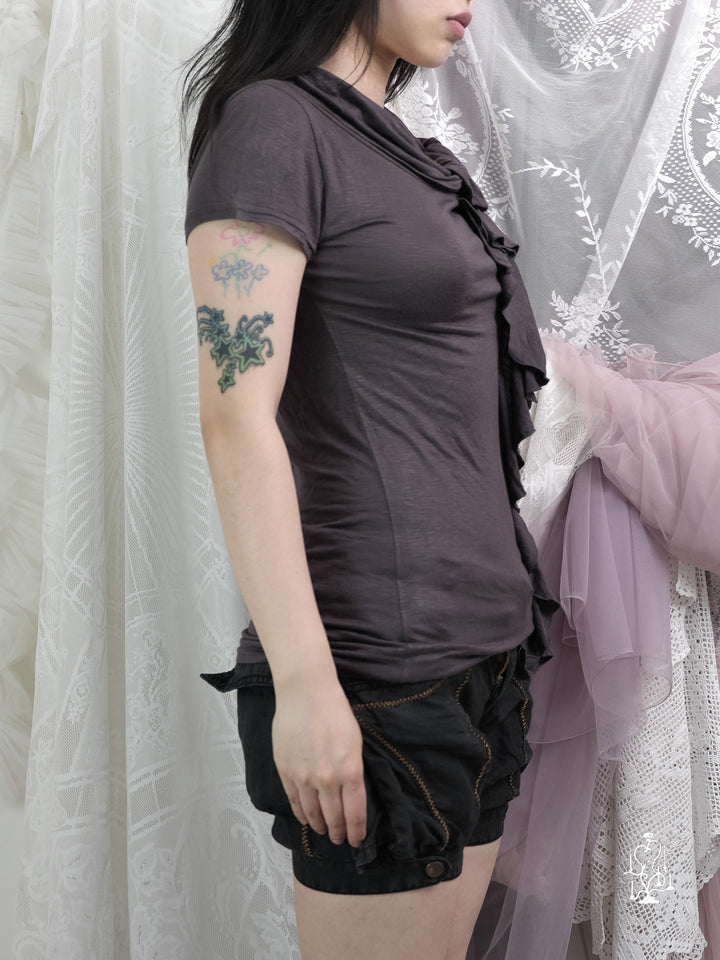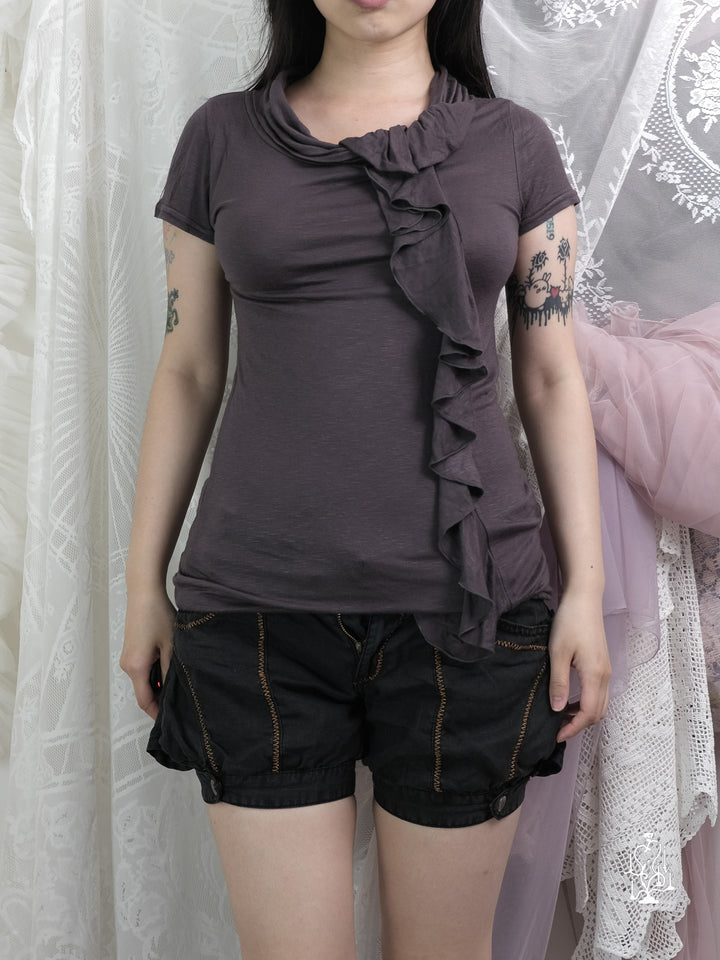RUFFLED ASYMMETRICAL KNIT TEE