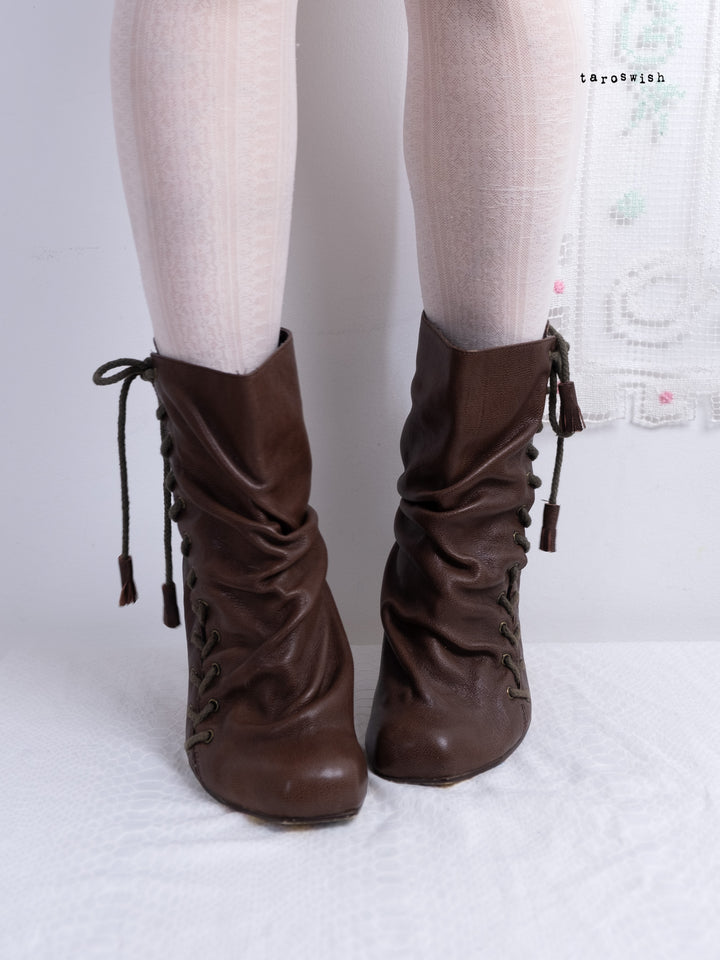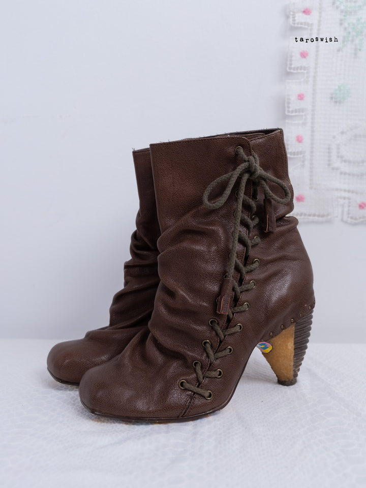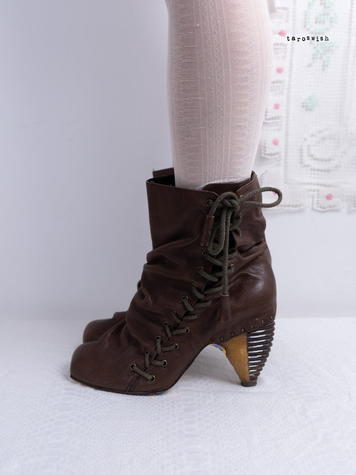 EU41 BROWN REAL LEATHER LACE-UP ANKLE BOOTS