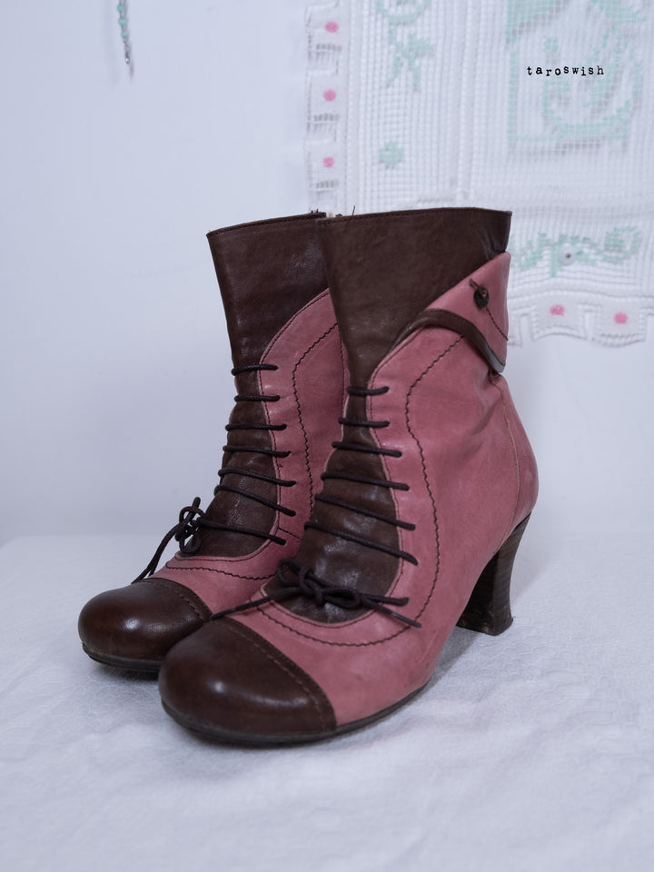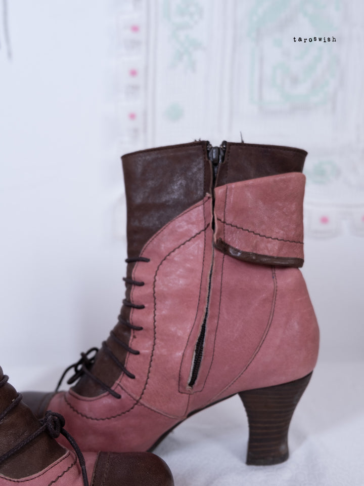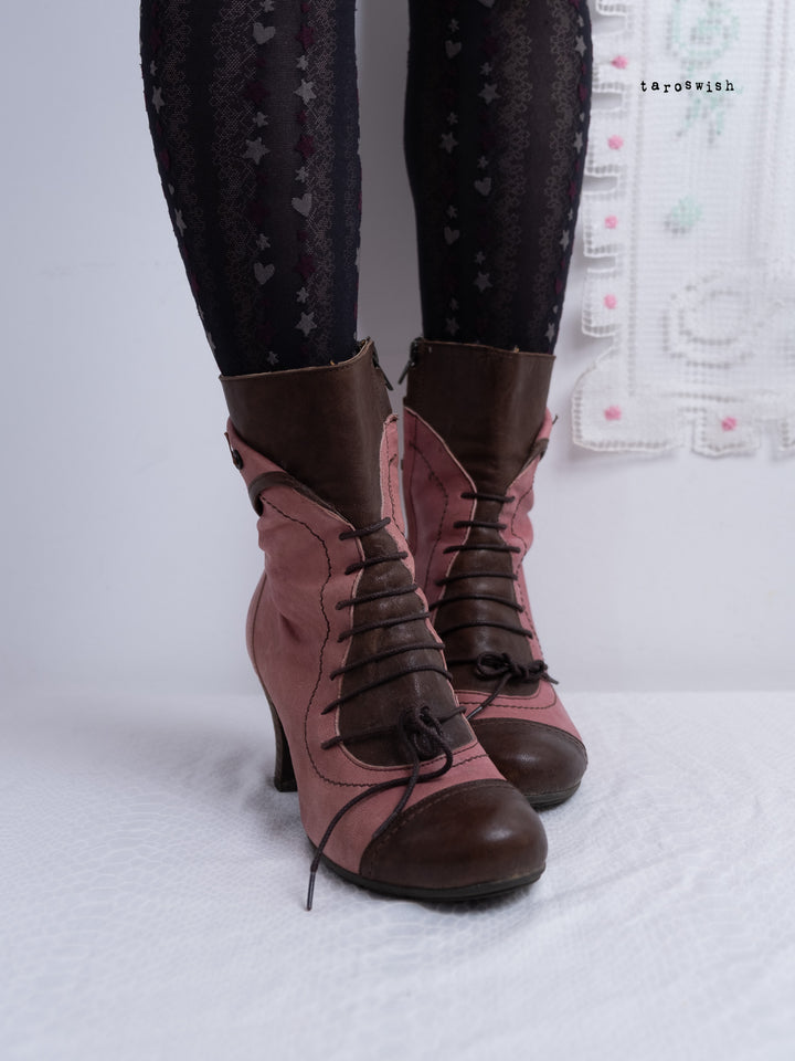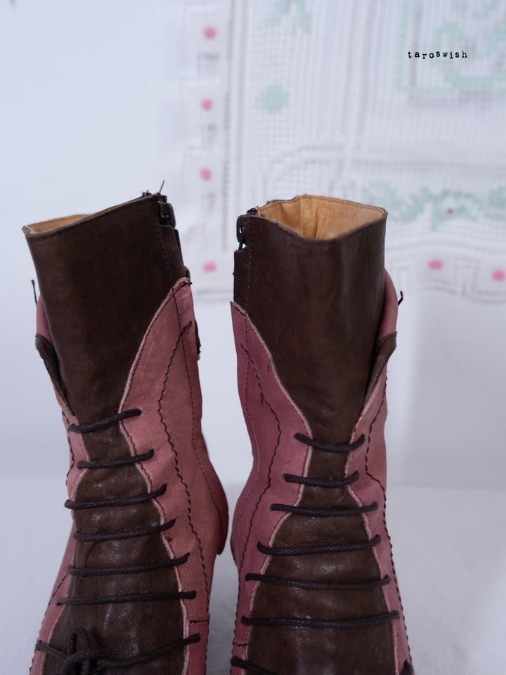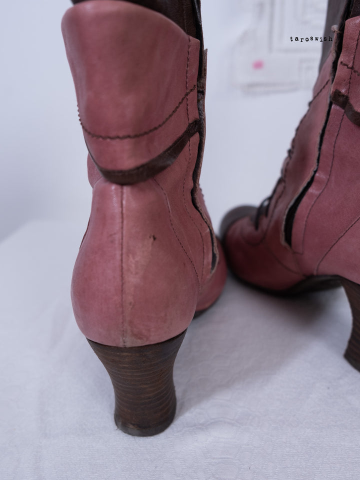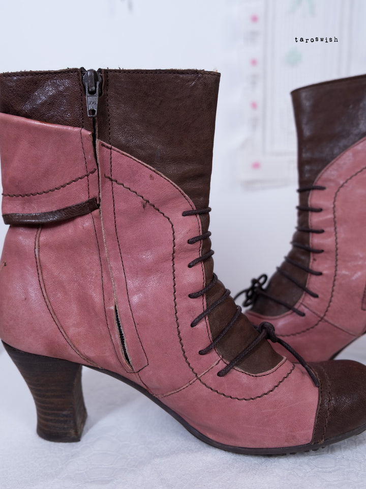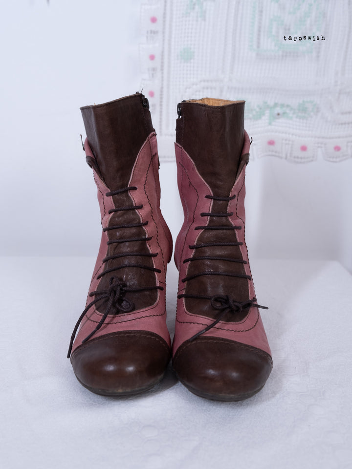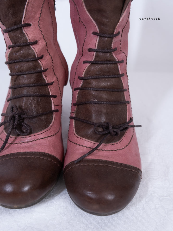 EU40 TWO-TONE PINK LACE-UP HEELED BOOTS
