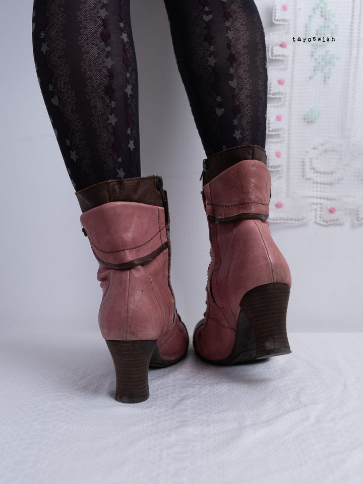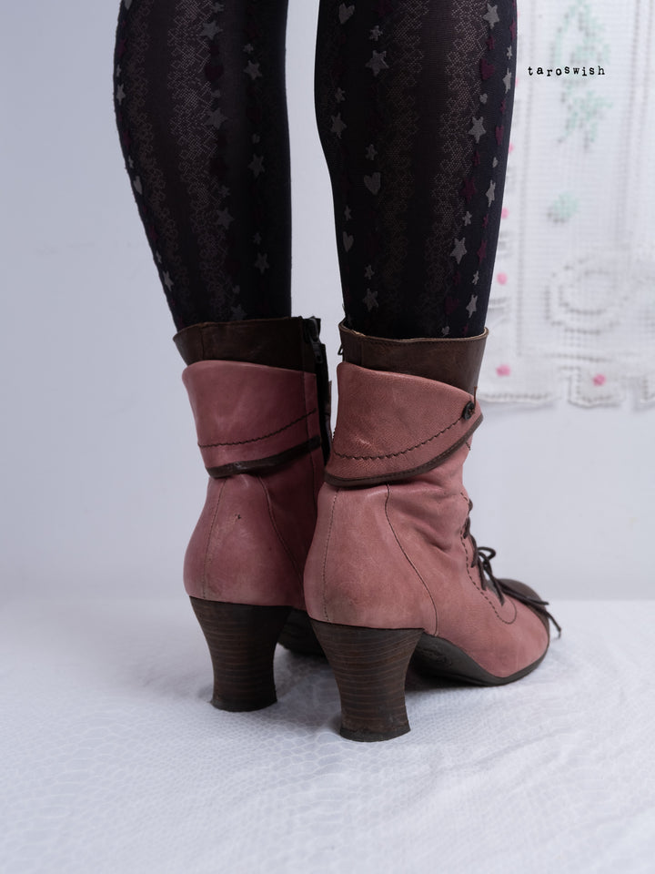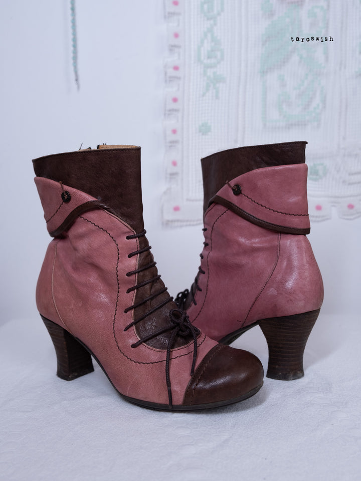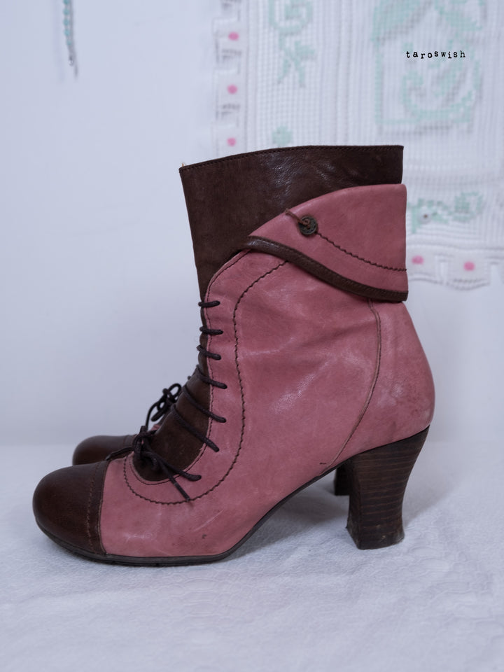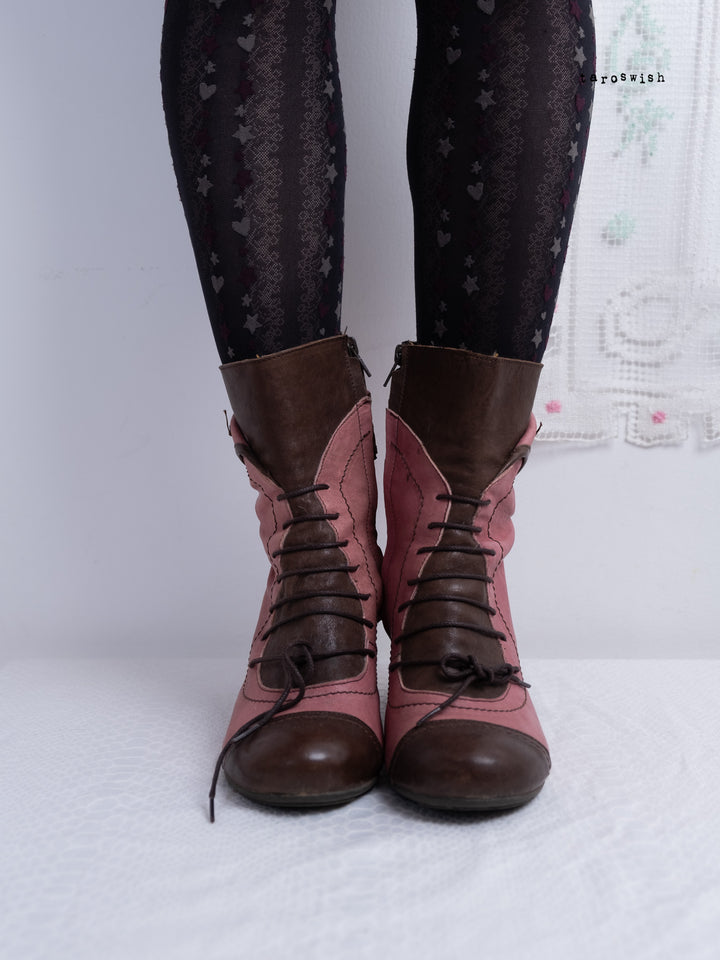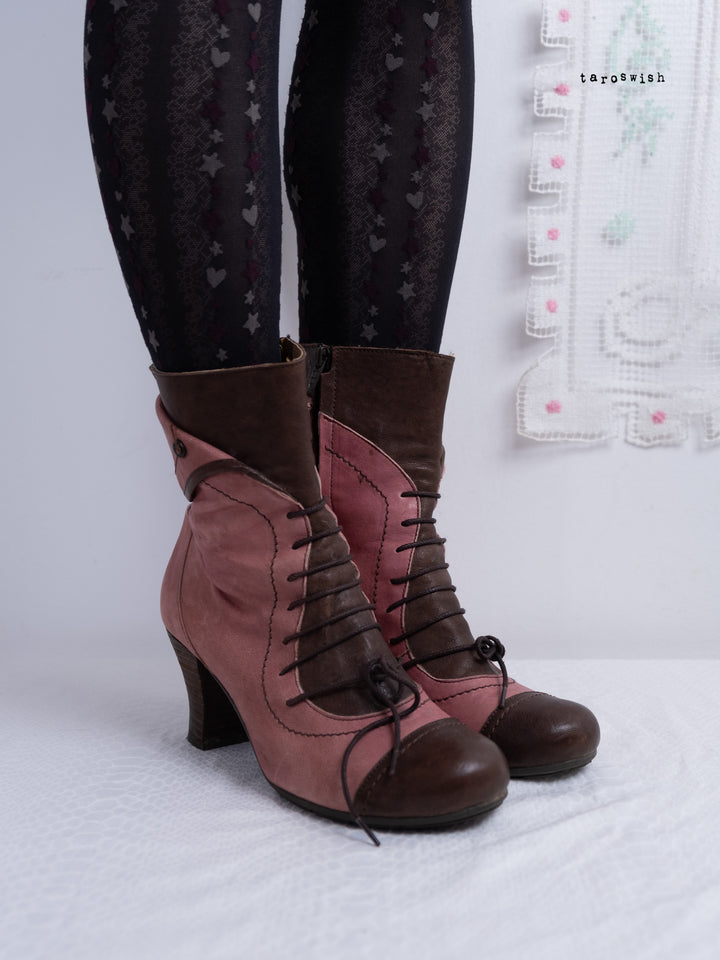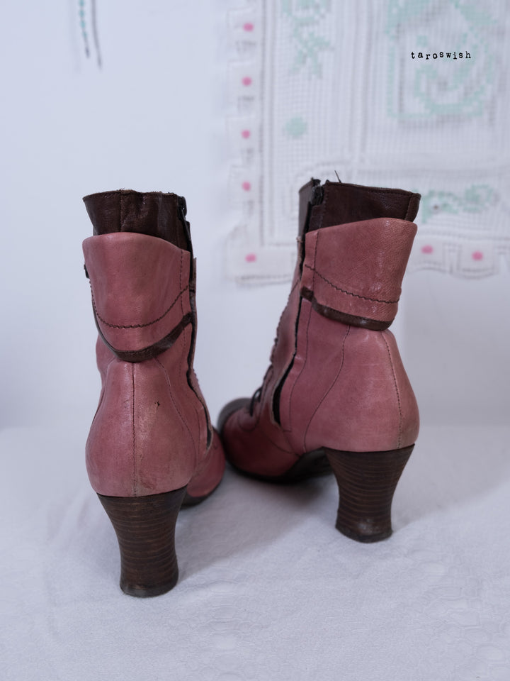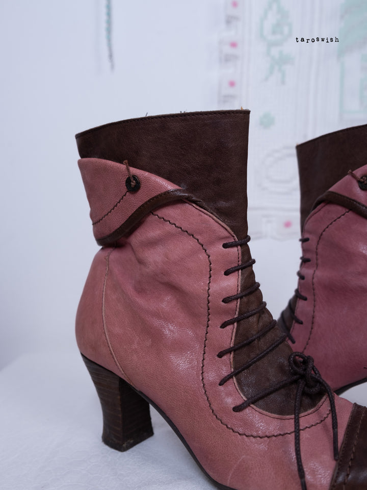 EU40 TWO-TONE PINK LACE-UP HEELED BOOTS
