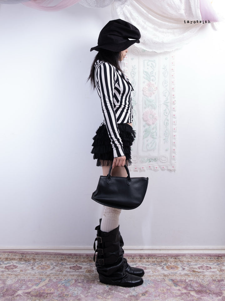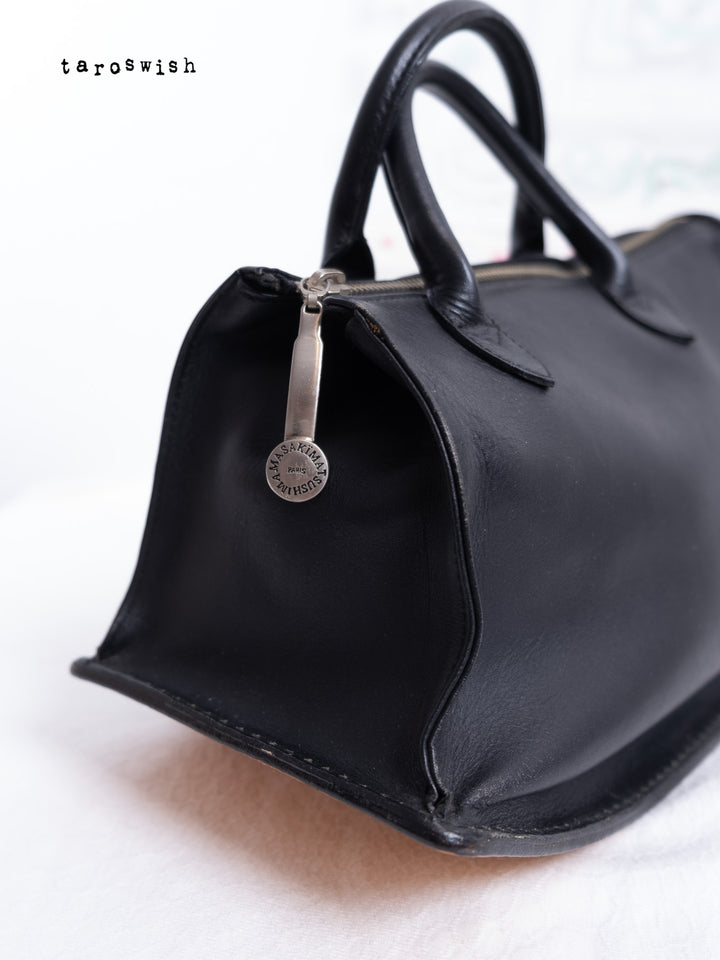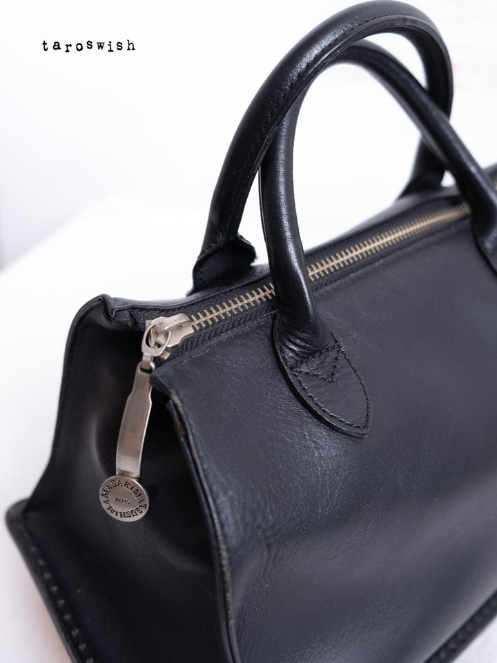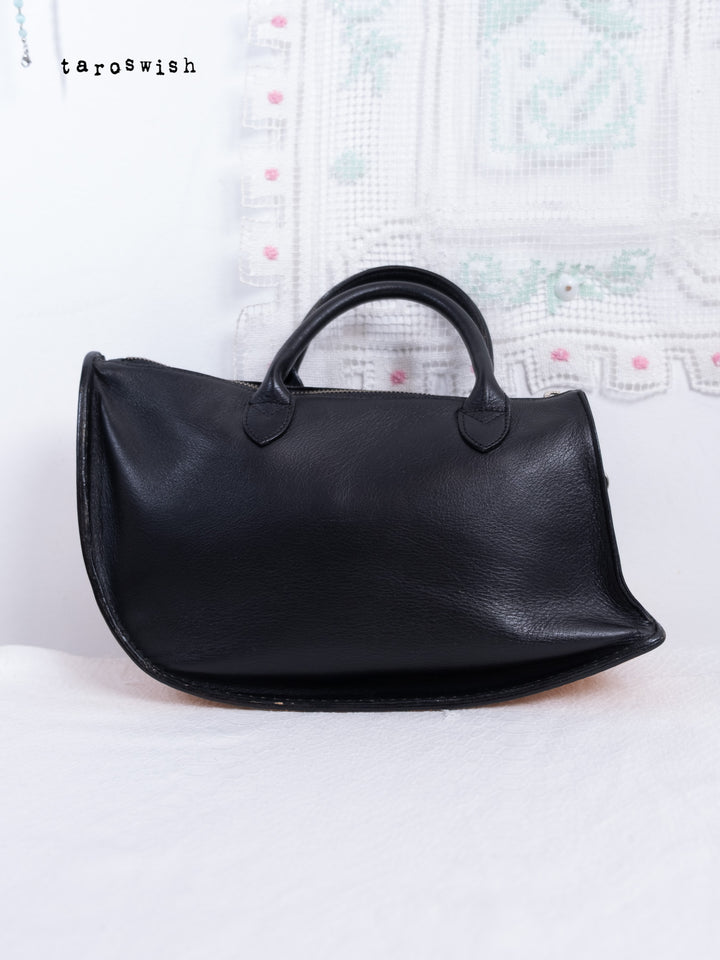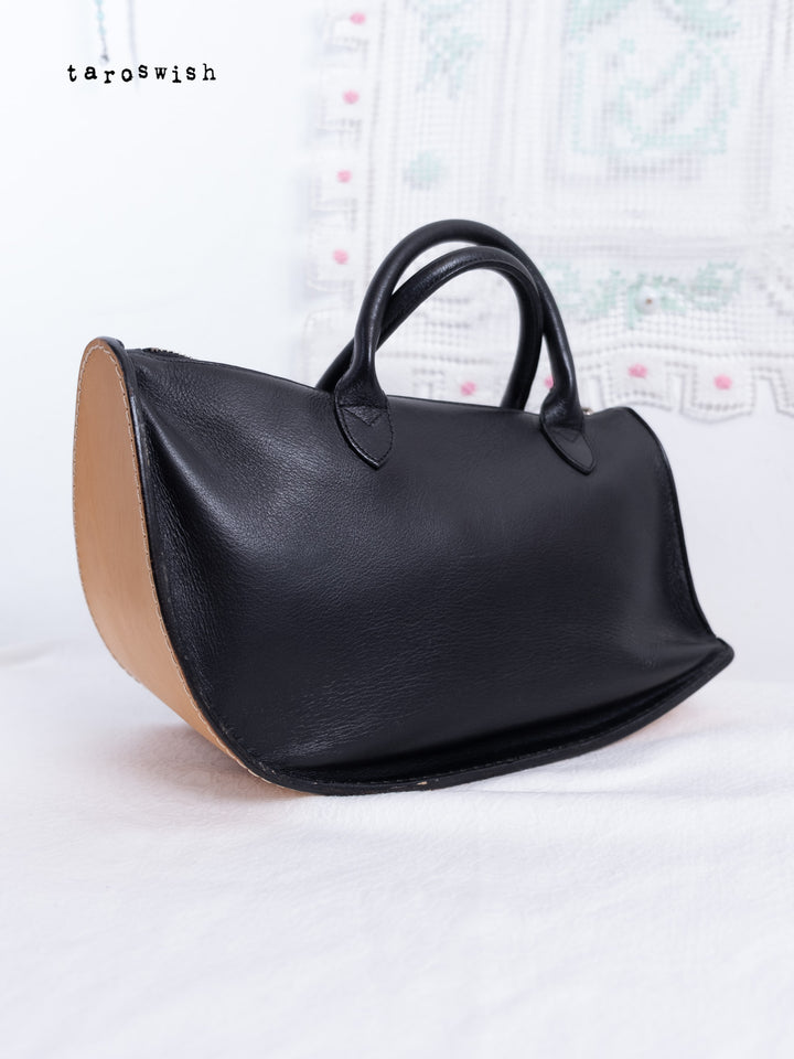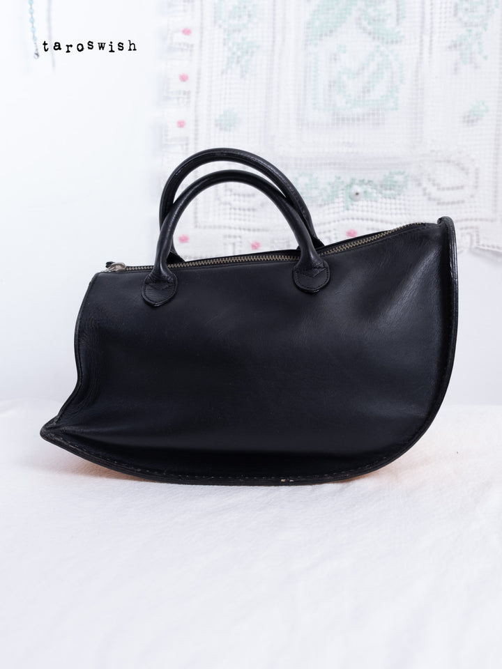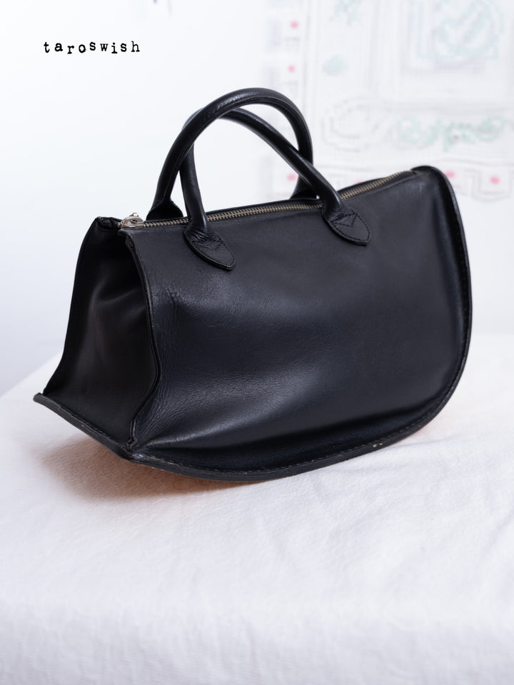 MASAKI MATSUSHIMA BLACK CURVED-BASE SCULPTURAL LEATHER BAG