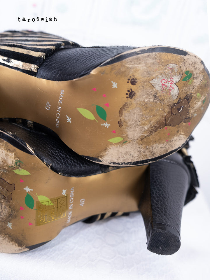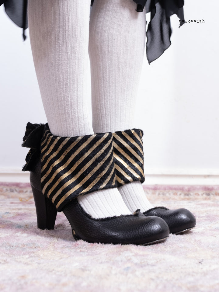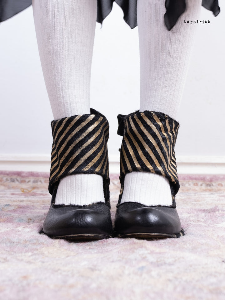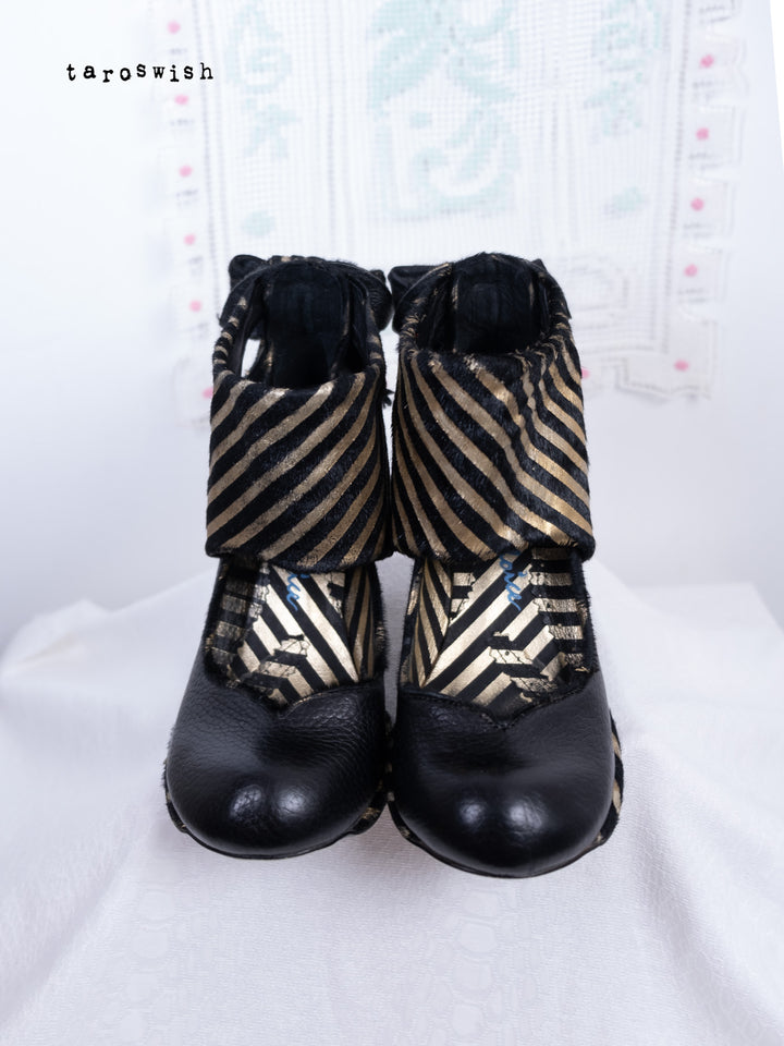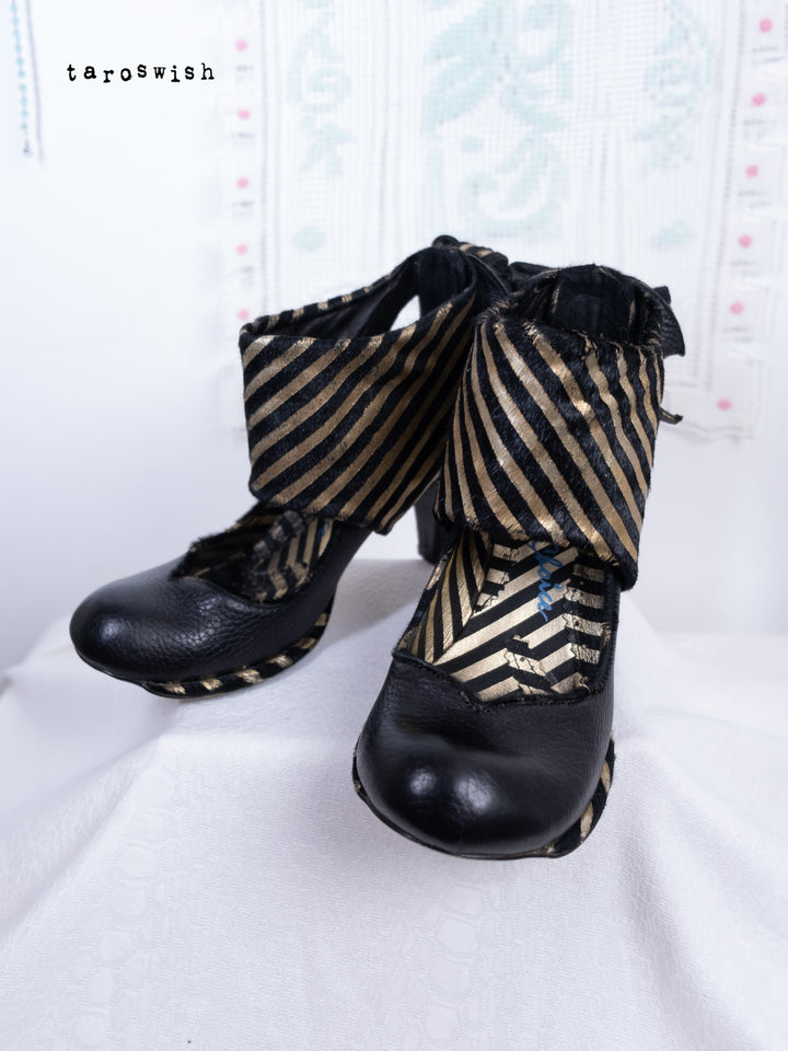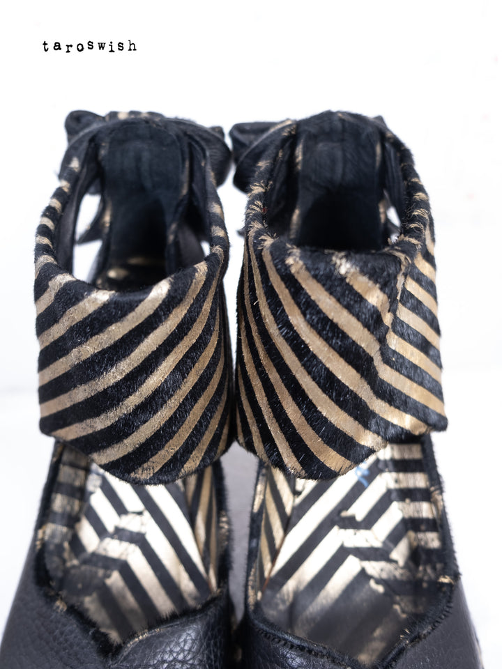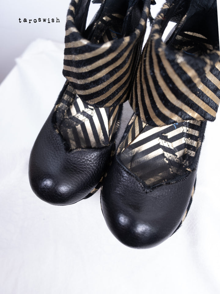 BLACK & GOLD STRIPED RIBBON HEELS