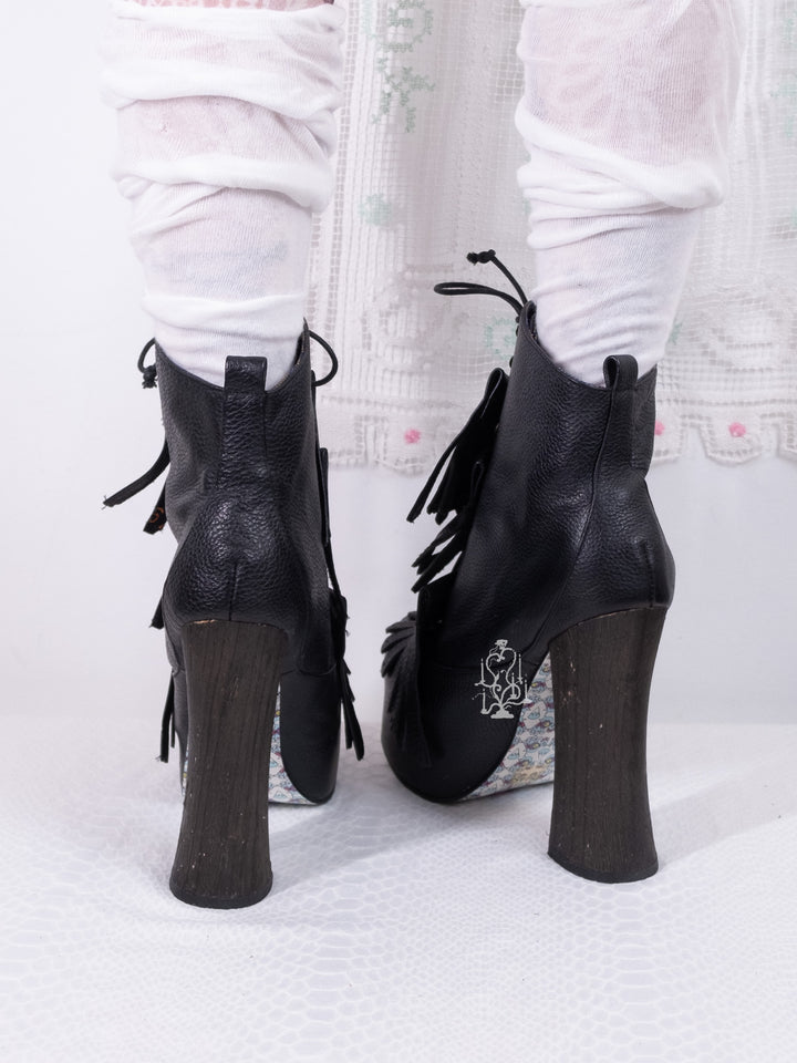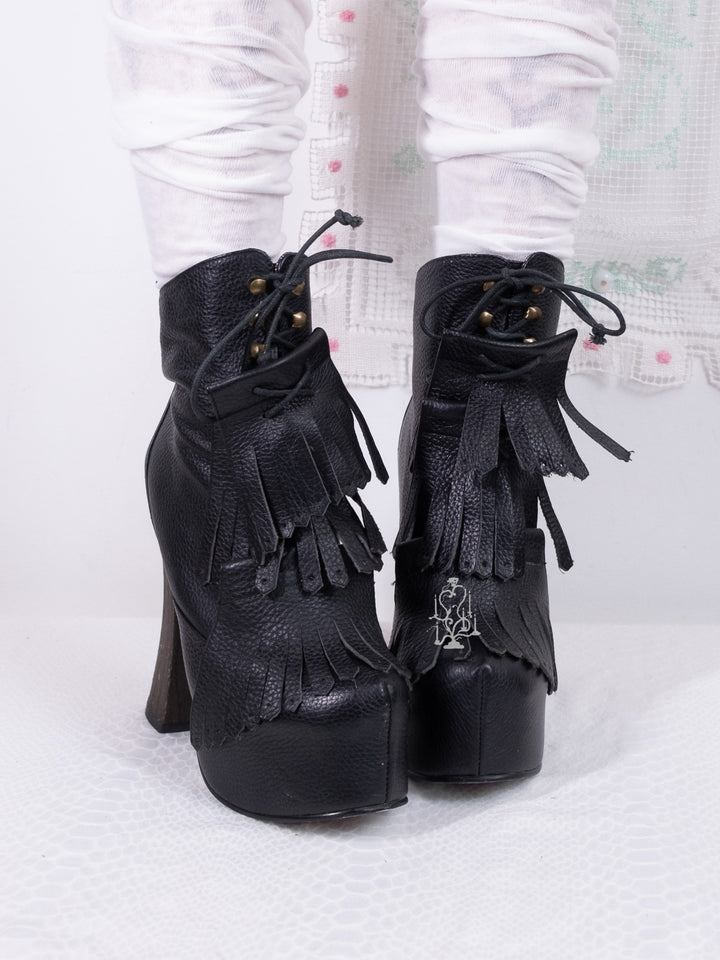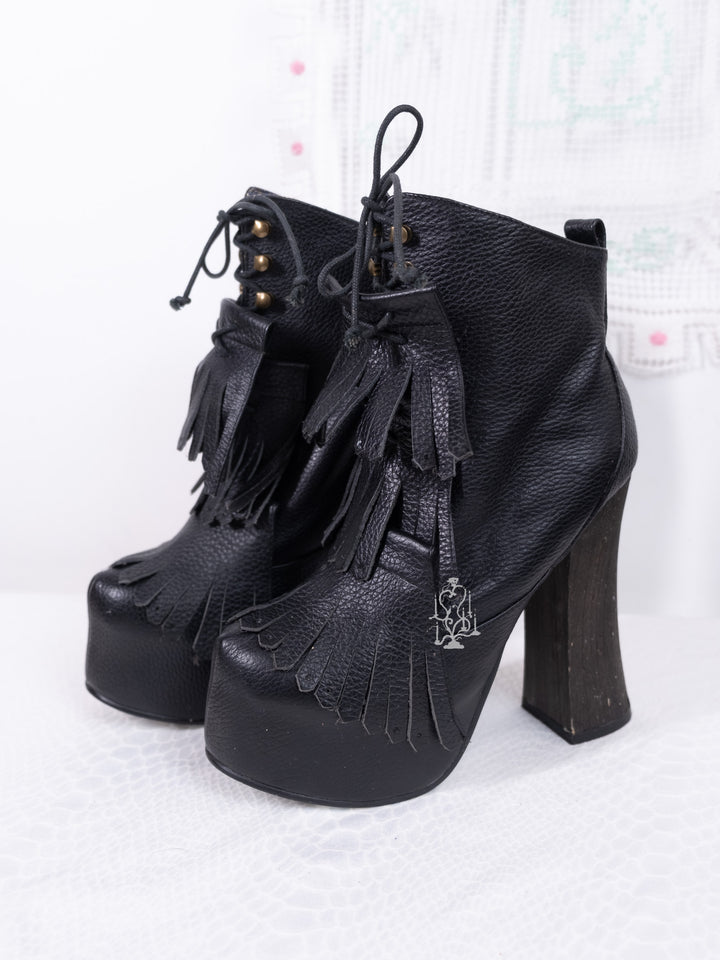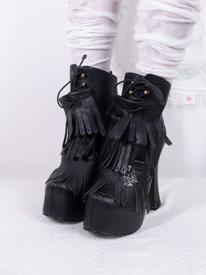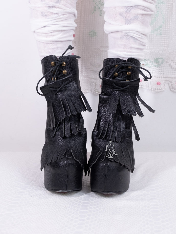 EU39 BLACK LEATHER TASSEL PLATFORM BOOTS