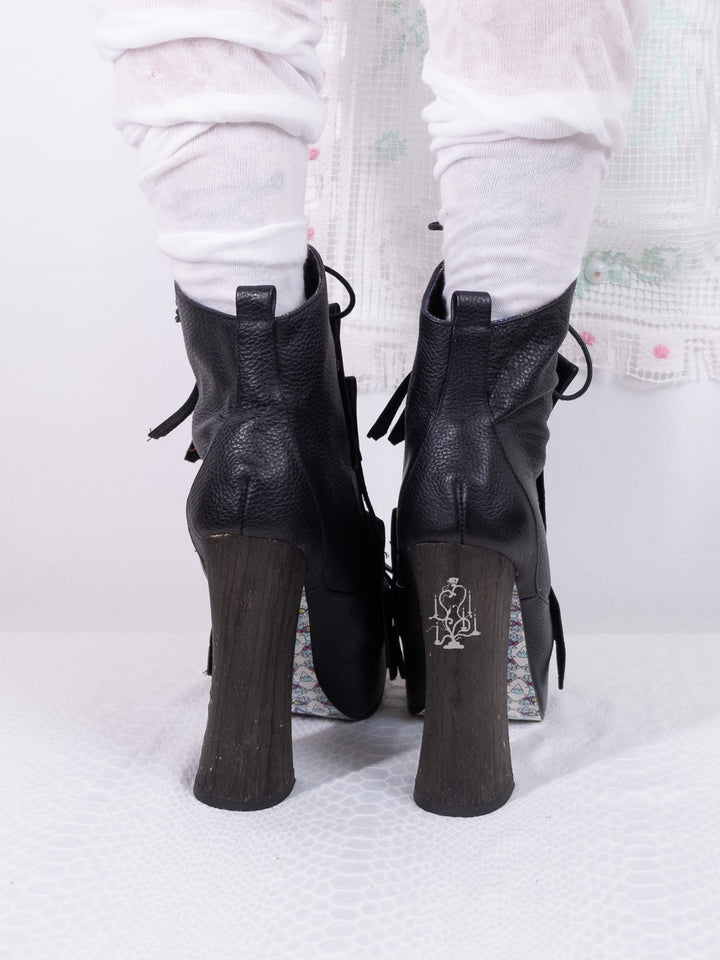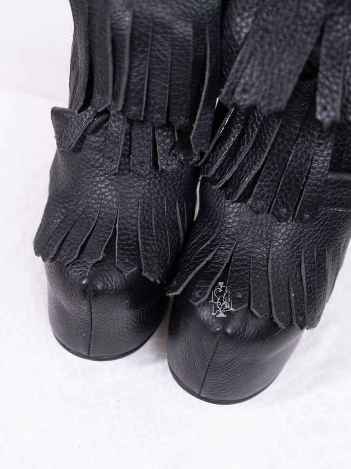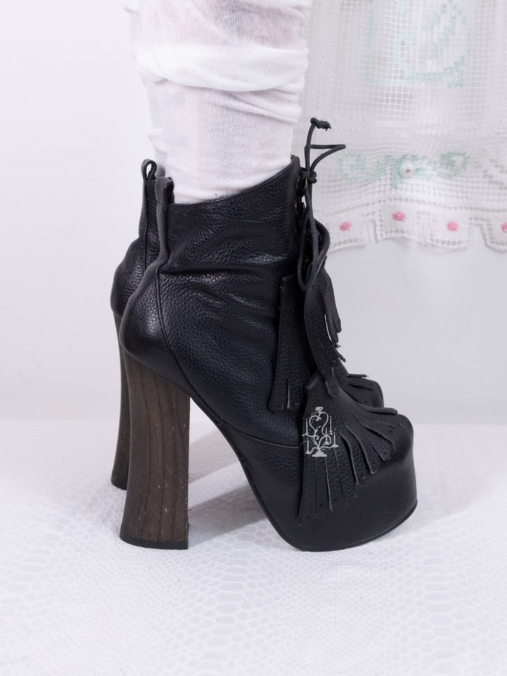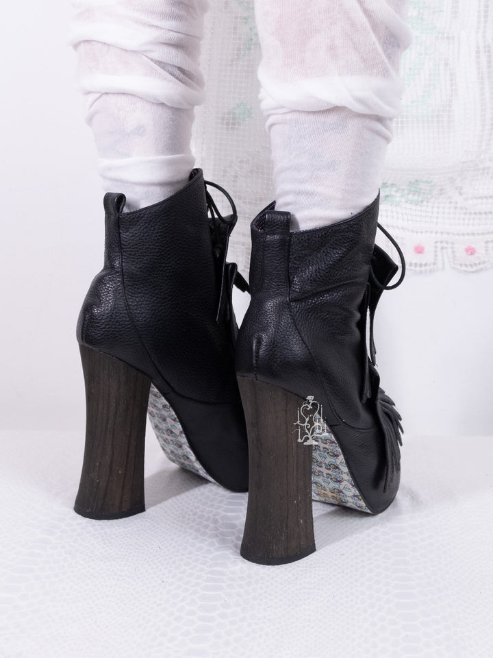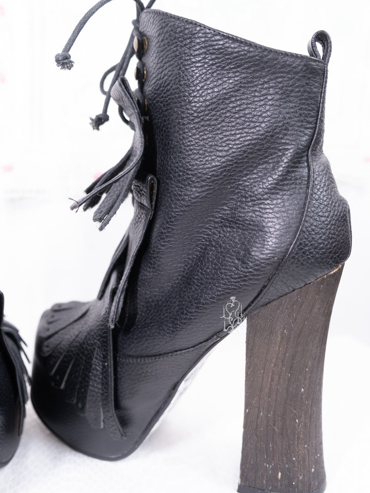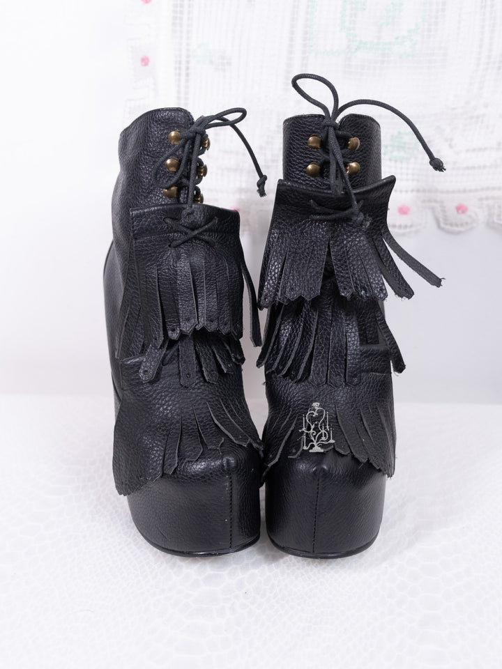 EU39 BLACK LEATHER TASSEL PLATFORM BOOTS