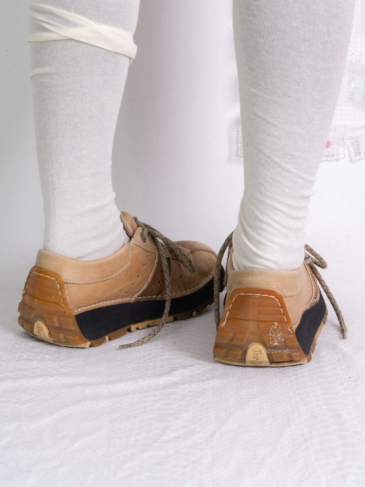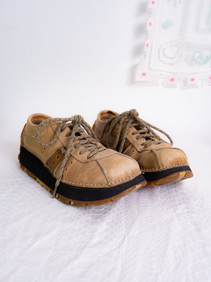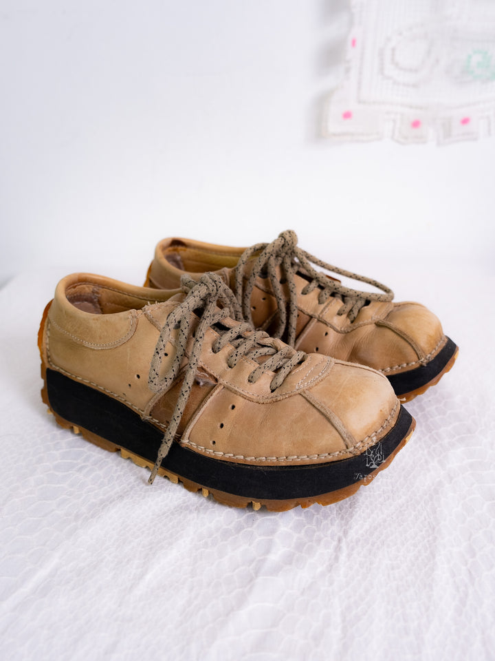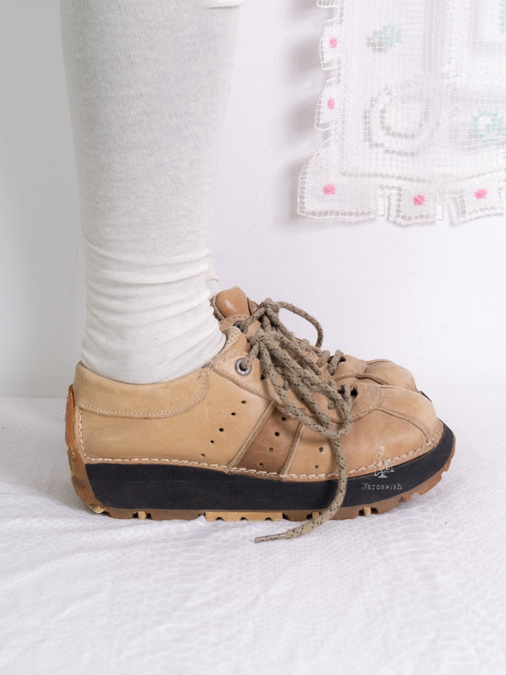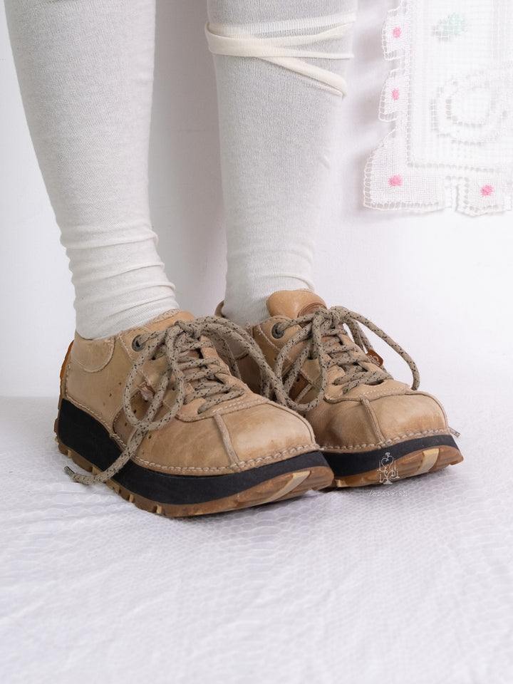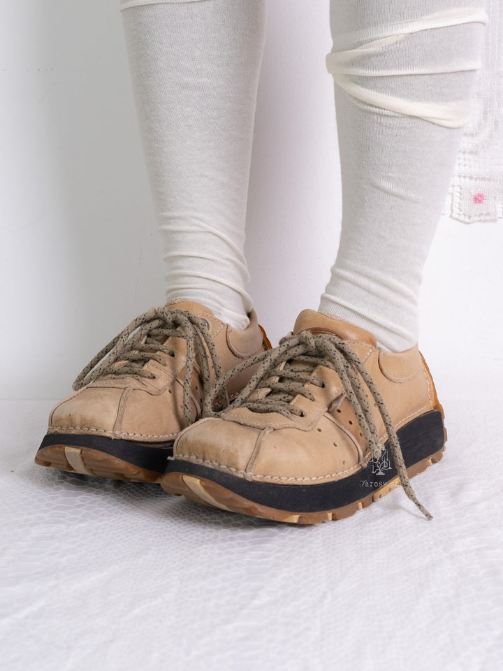 CHUNKY BEIGE LEATHER LOW SNEAKERS - EU38