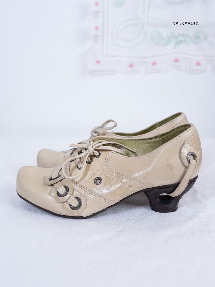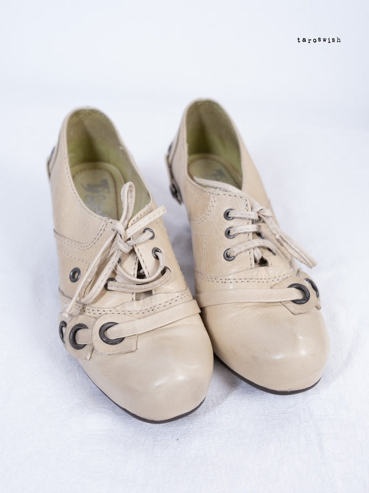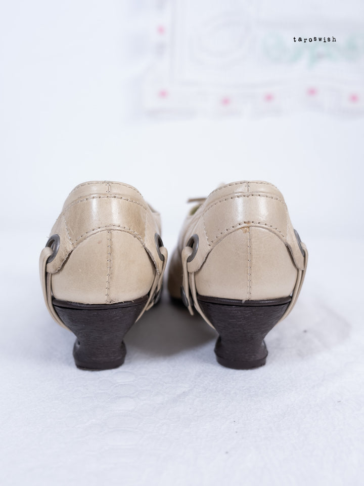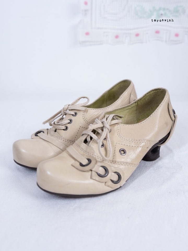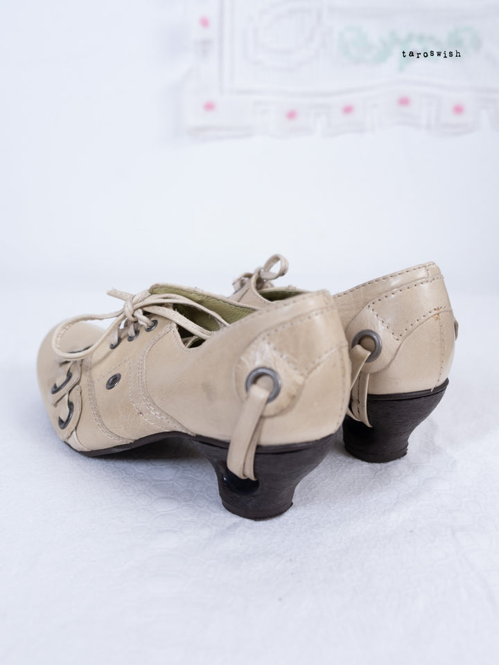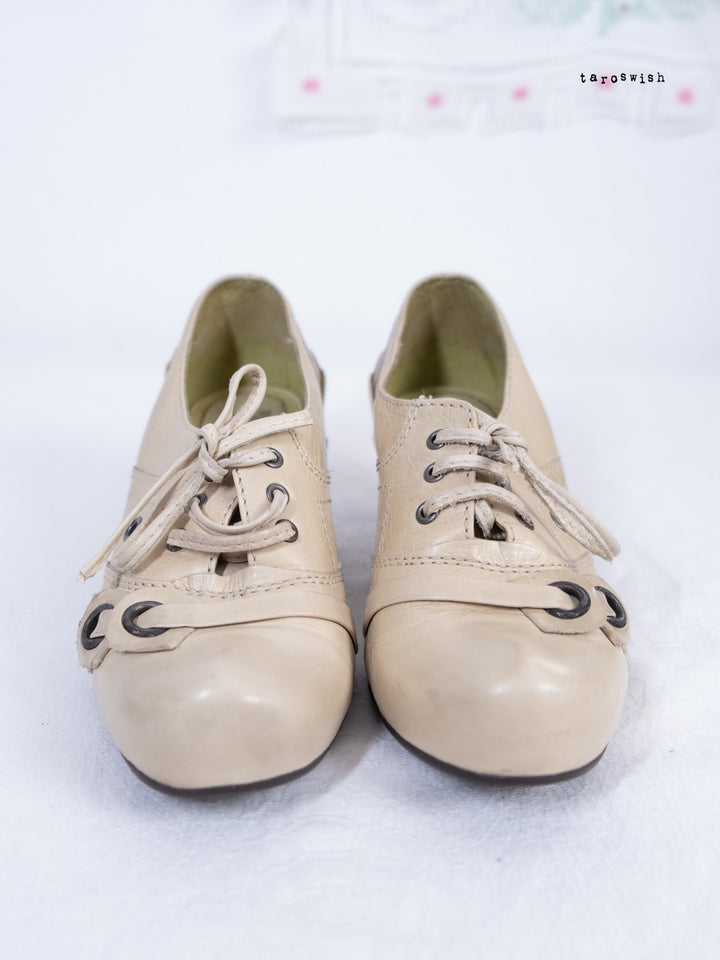 EU36 LACE-UP EYELET HEEL SHOES