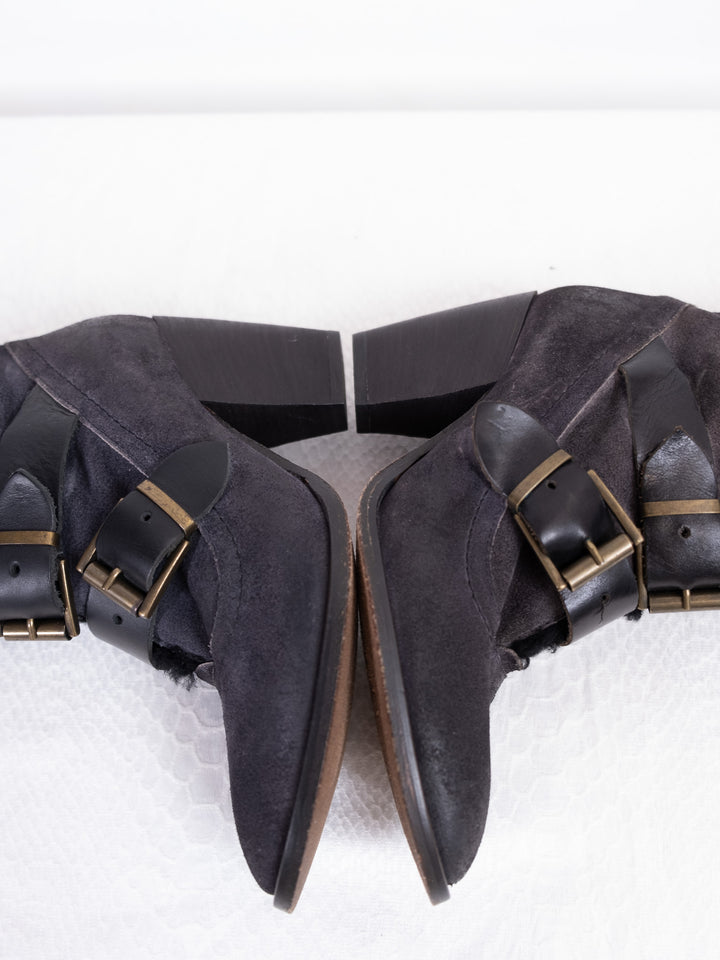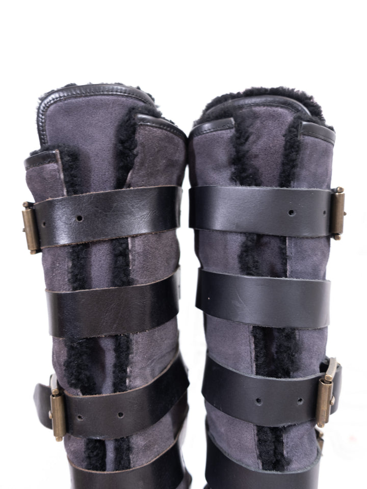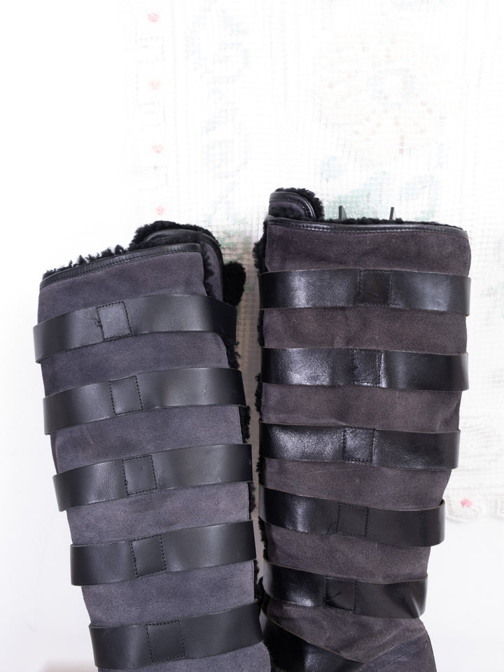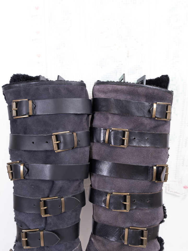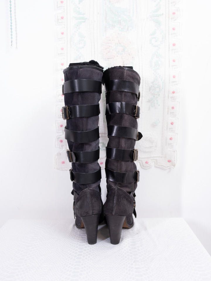 EU38 BLACK STRAP BUCKLE KNEE HIGH BOOTS