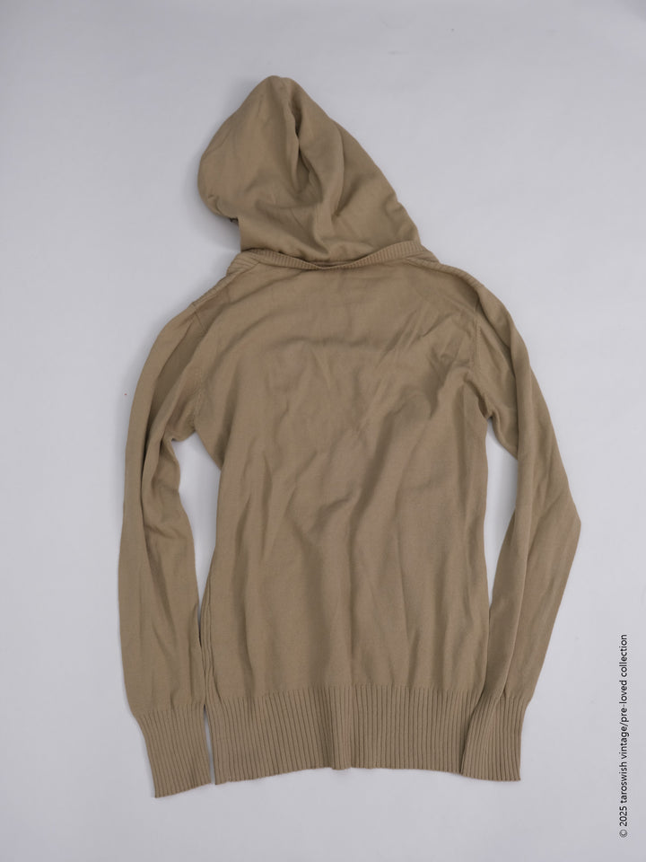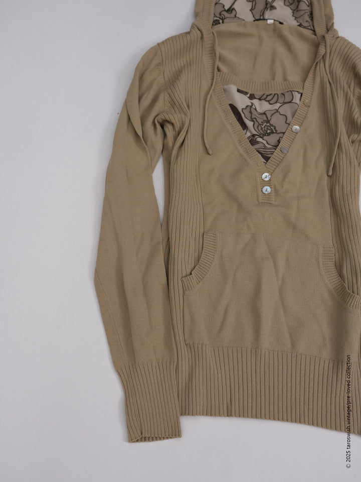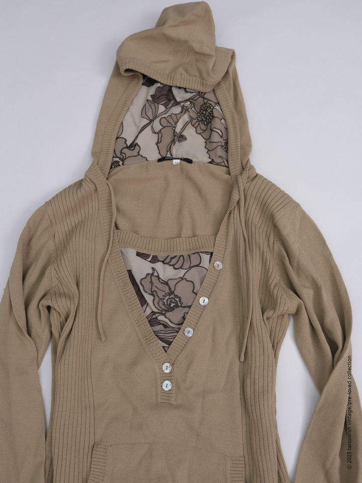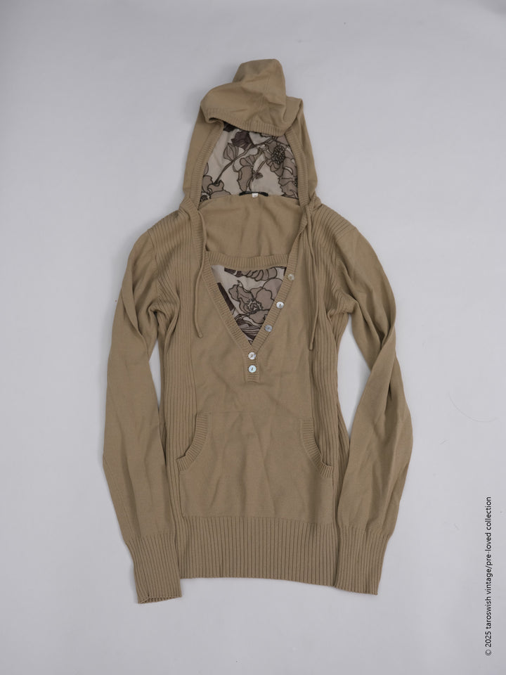 FLORAL-LINED V KNIT HOODIE