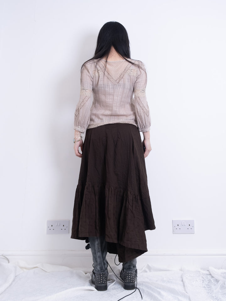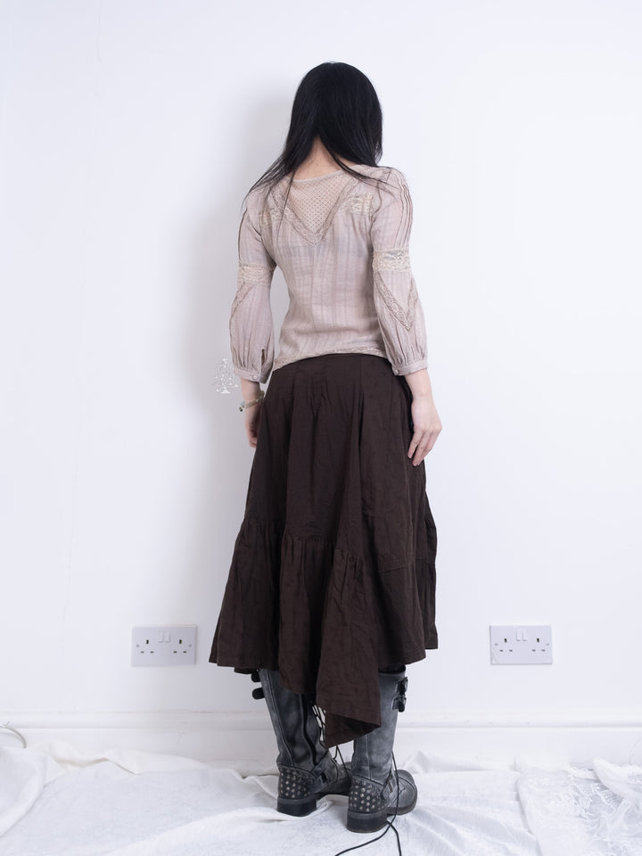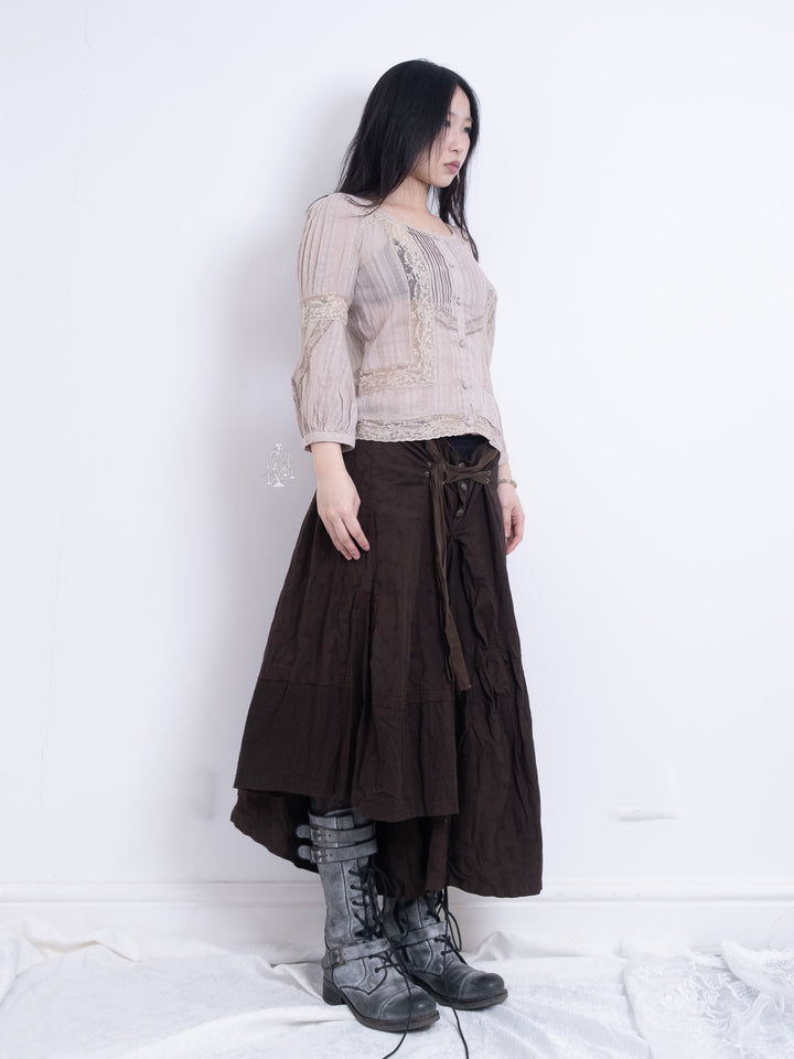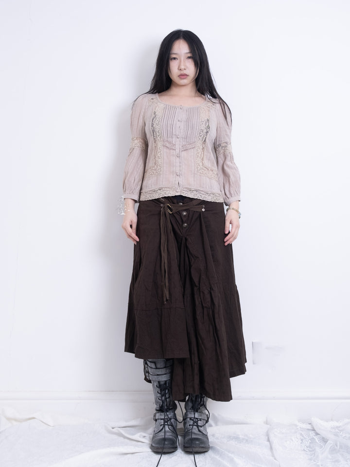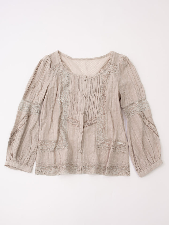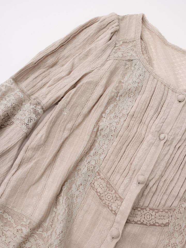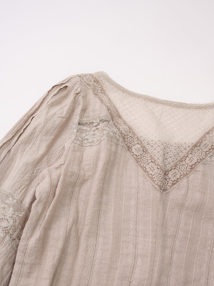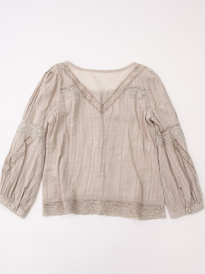 GRACE CONTINENTAL BEIGE LACE-PANEL BOHO BLOUSE