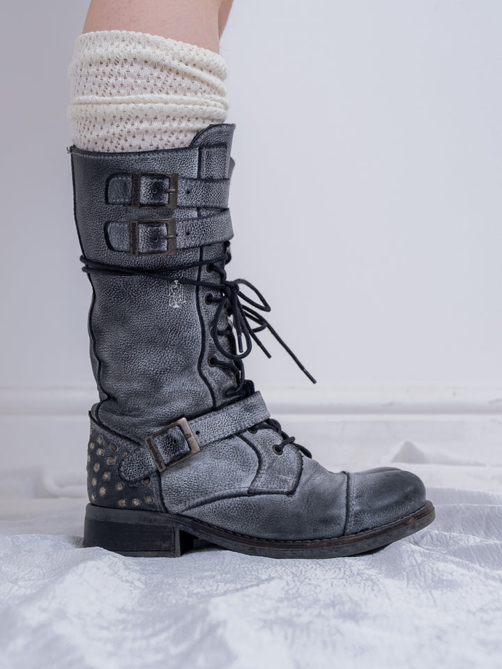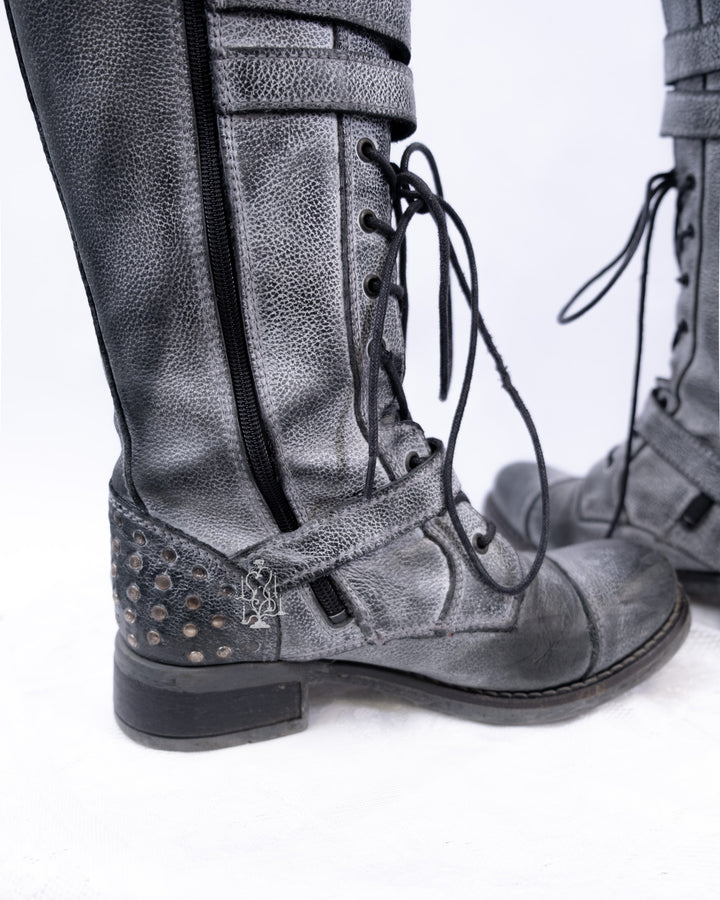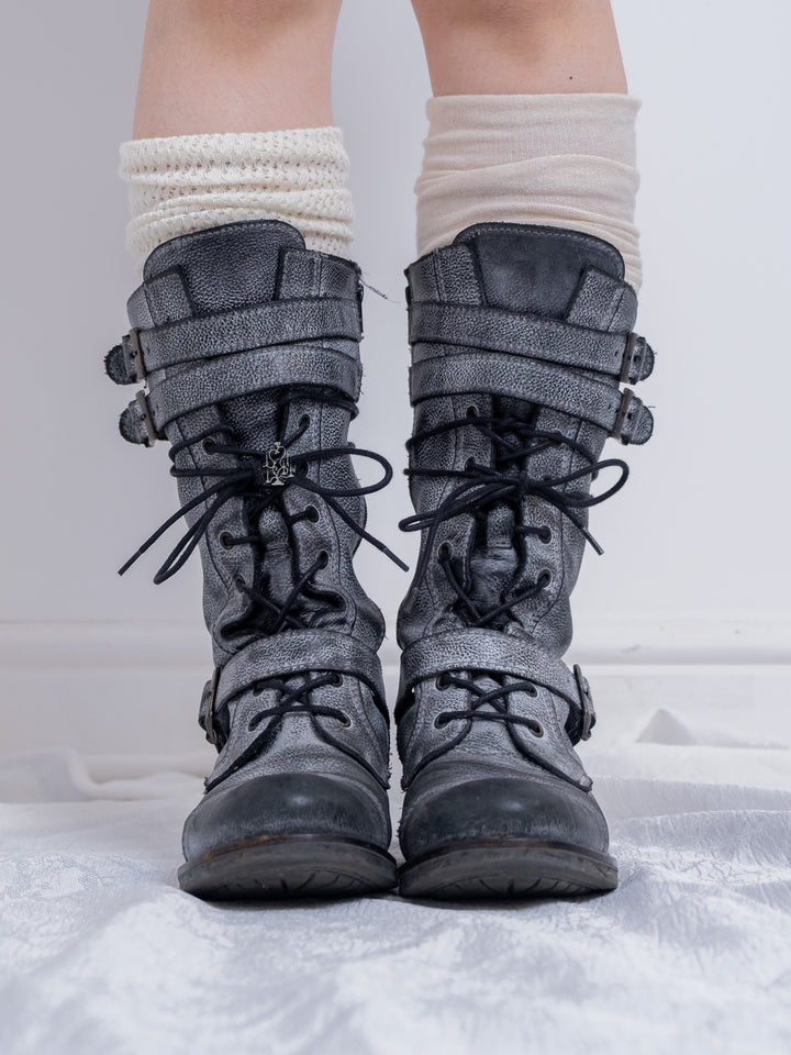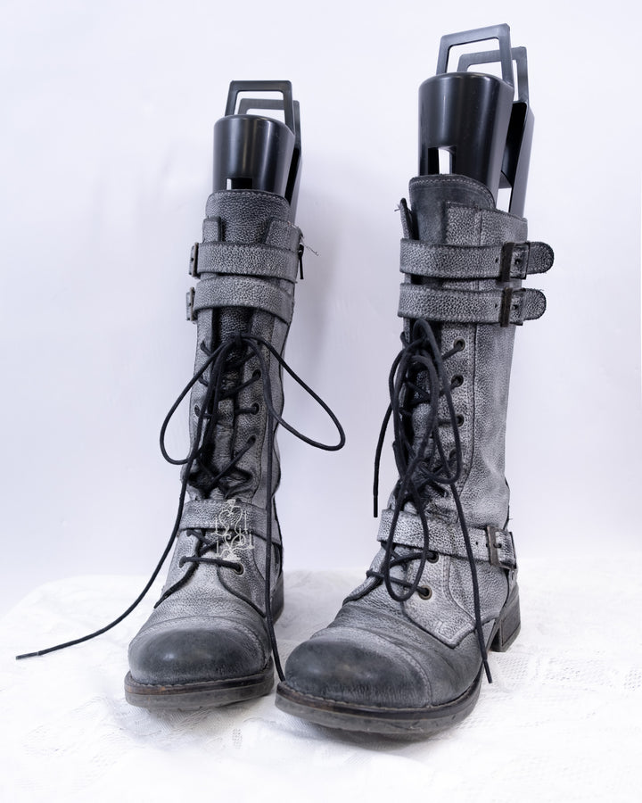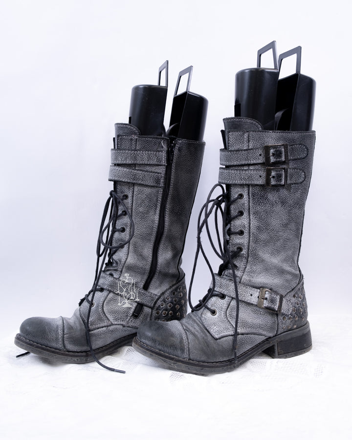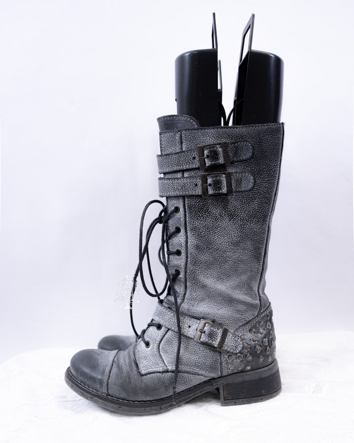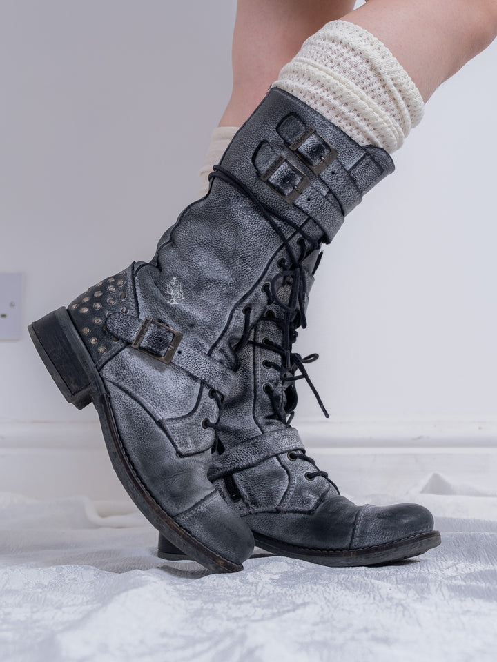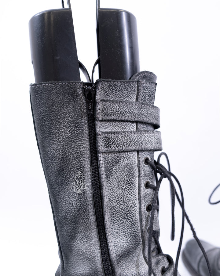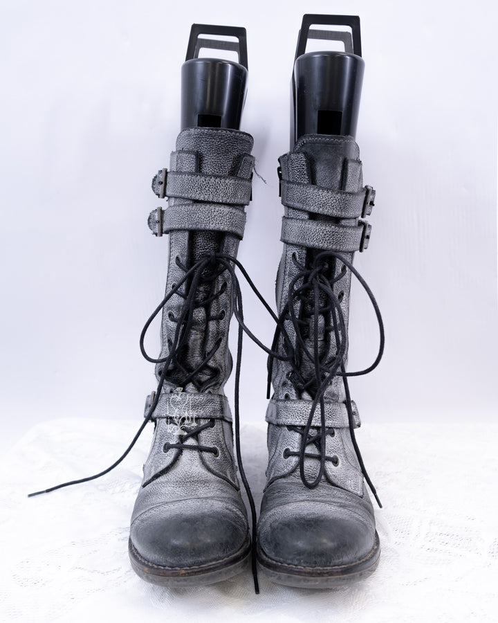 EU37 GREY DISTRESSED BUCKLE COMBAT BOOTS