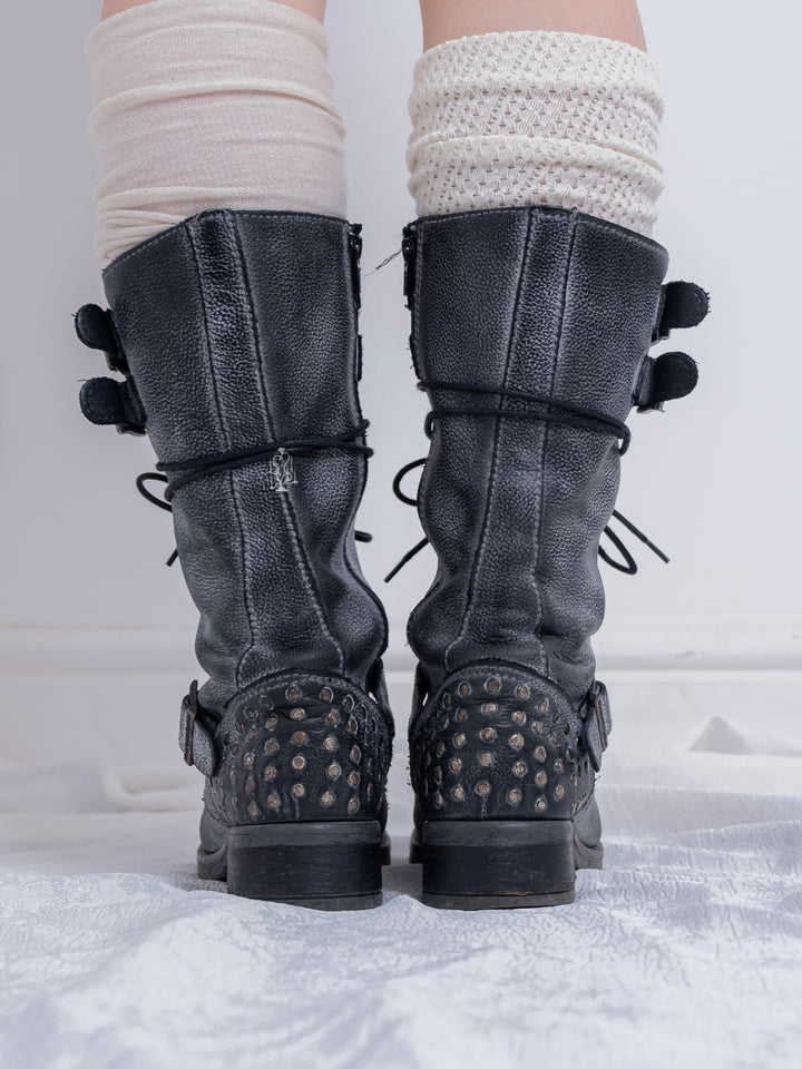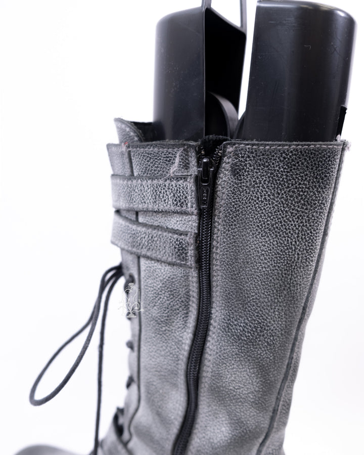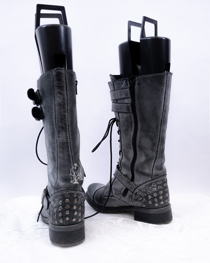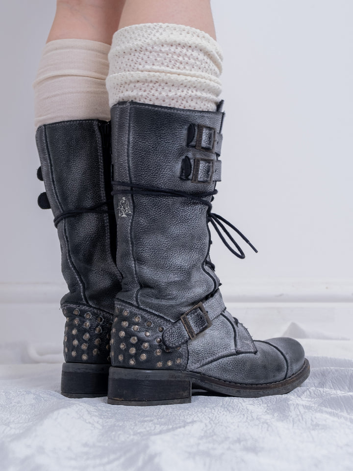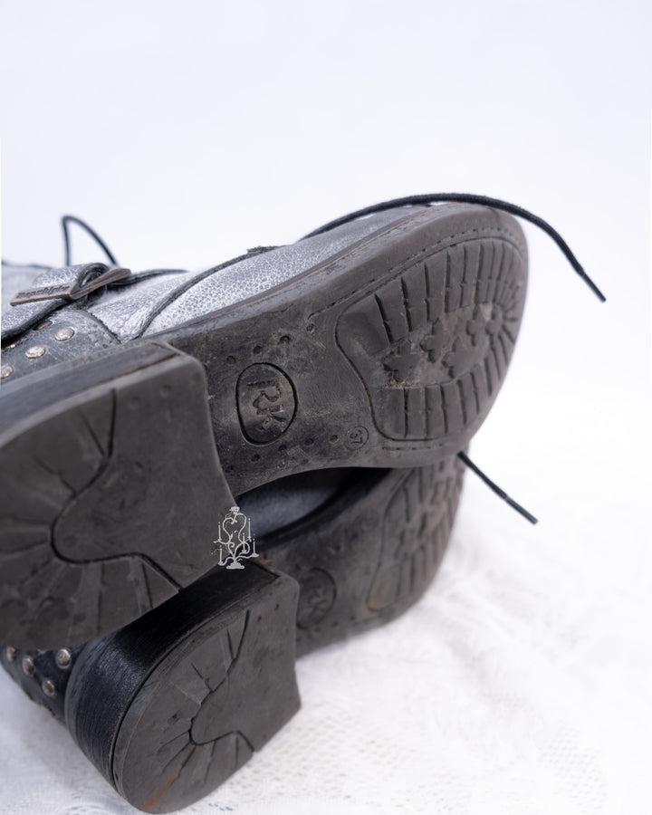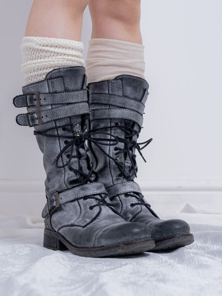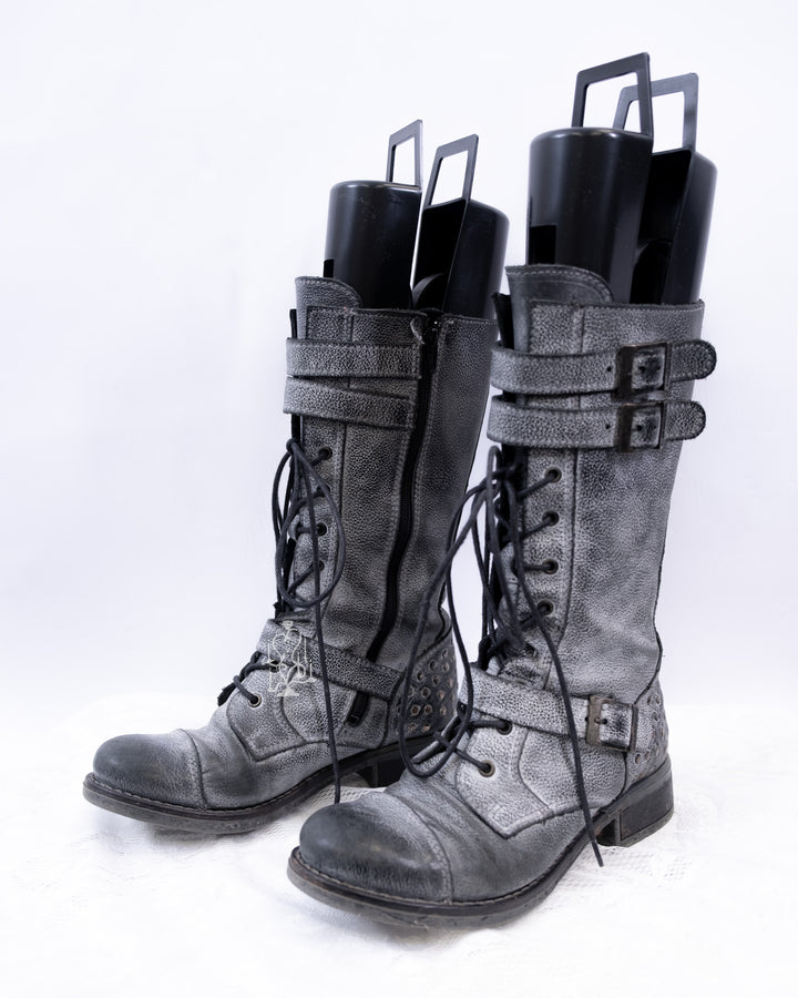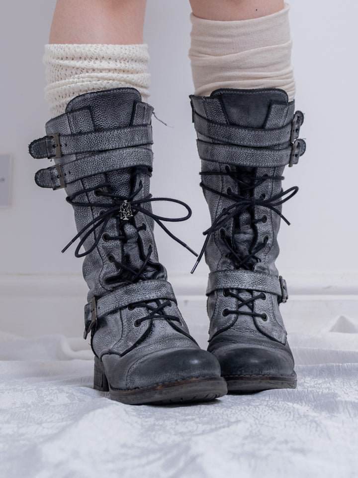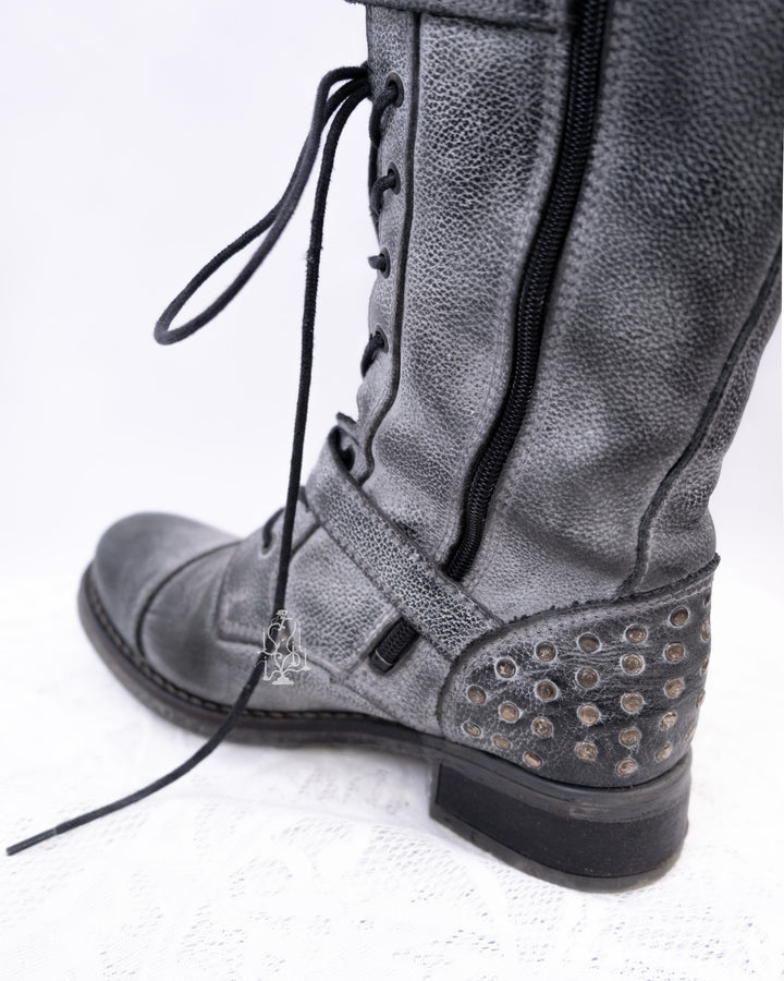 EU37 GREY DISTRESSED BUCKLE COMBAT BOOTS