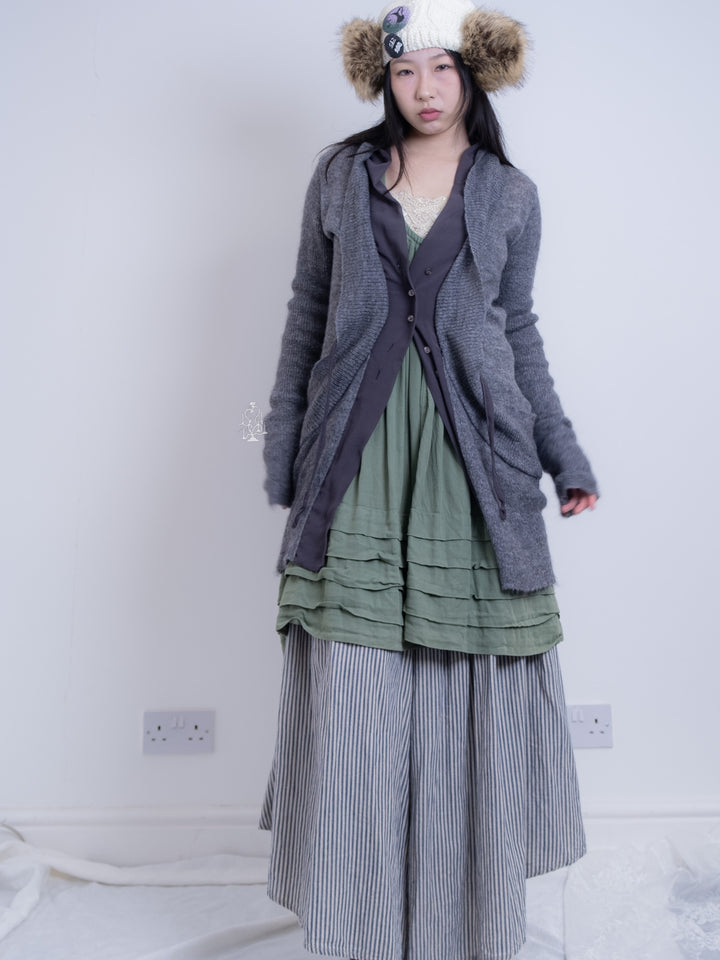 Materials: nylon, mohair, acrylic + 100% silk (layring part)