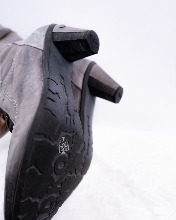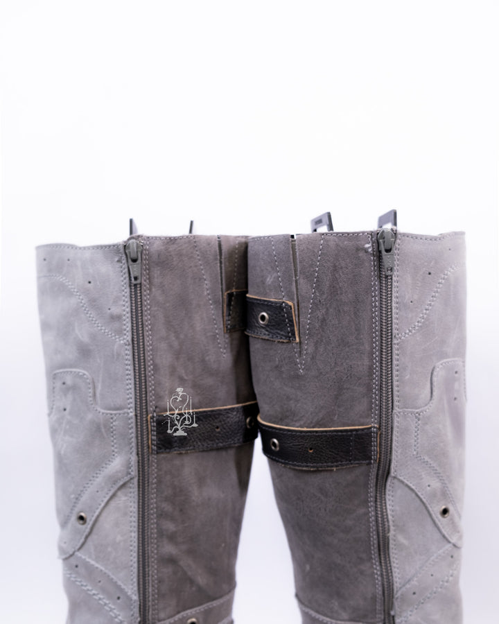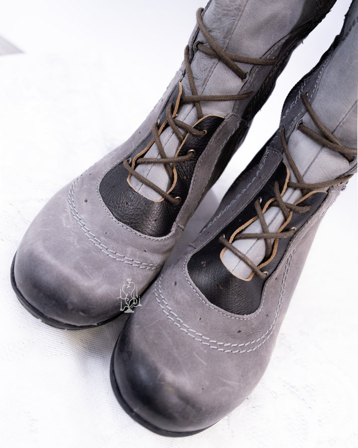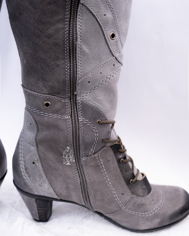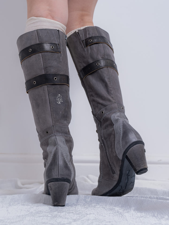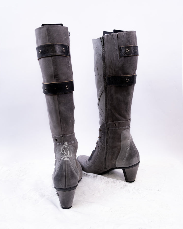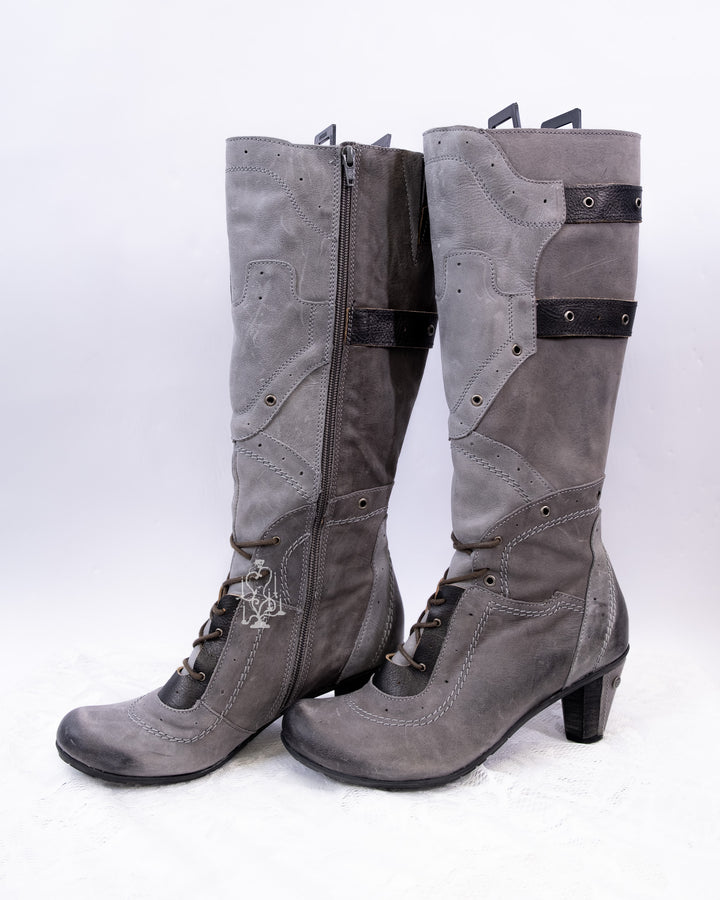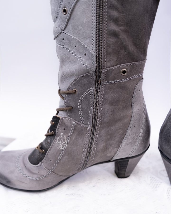 EU39 GREY PATCHWORK LACE-UP TALL BOOTS
