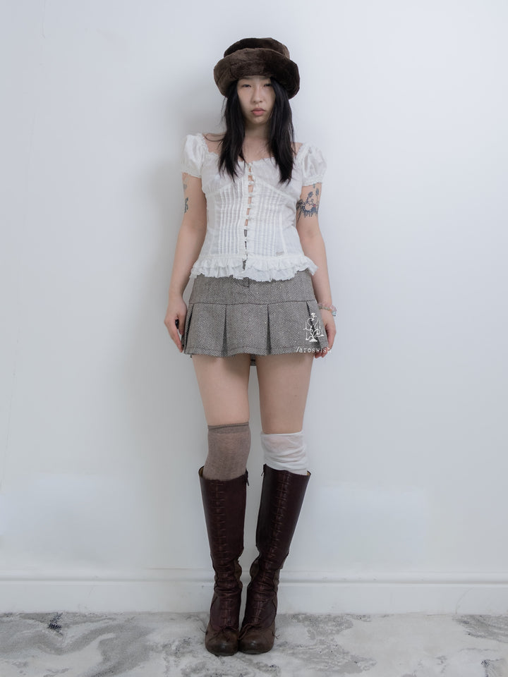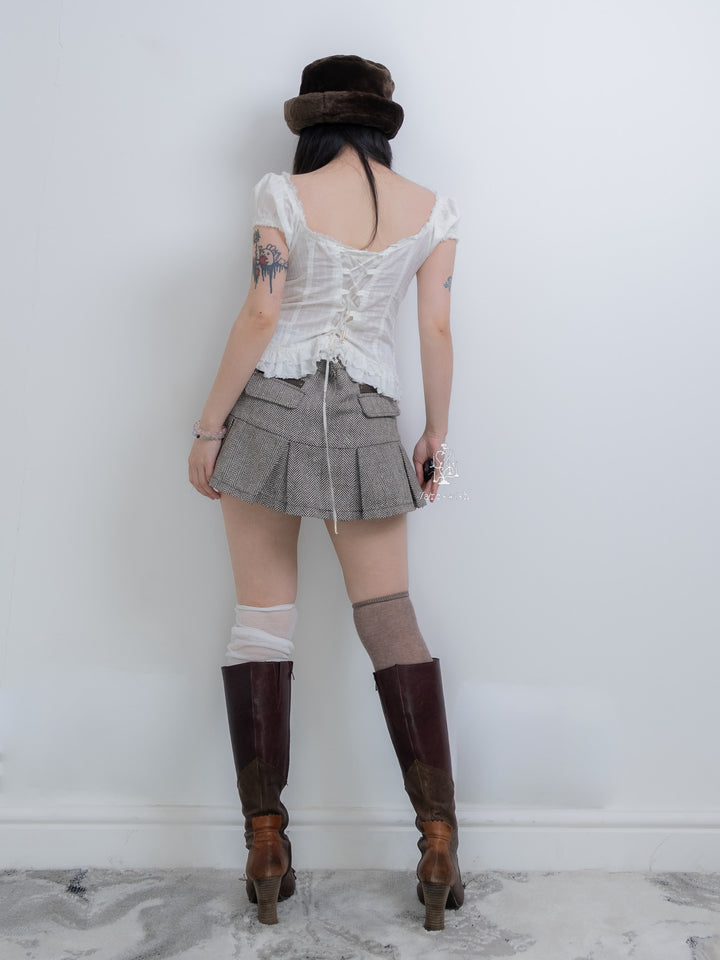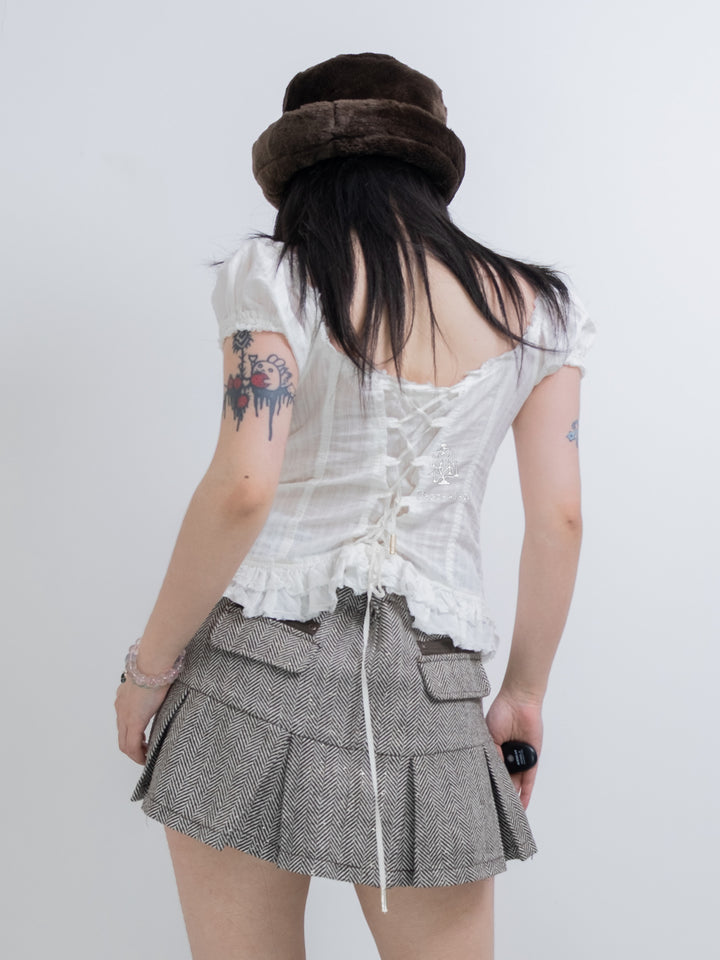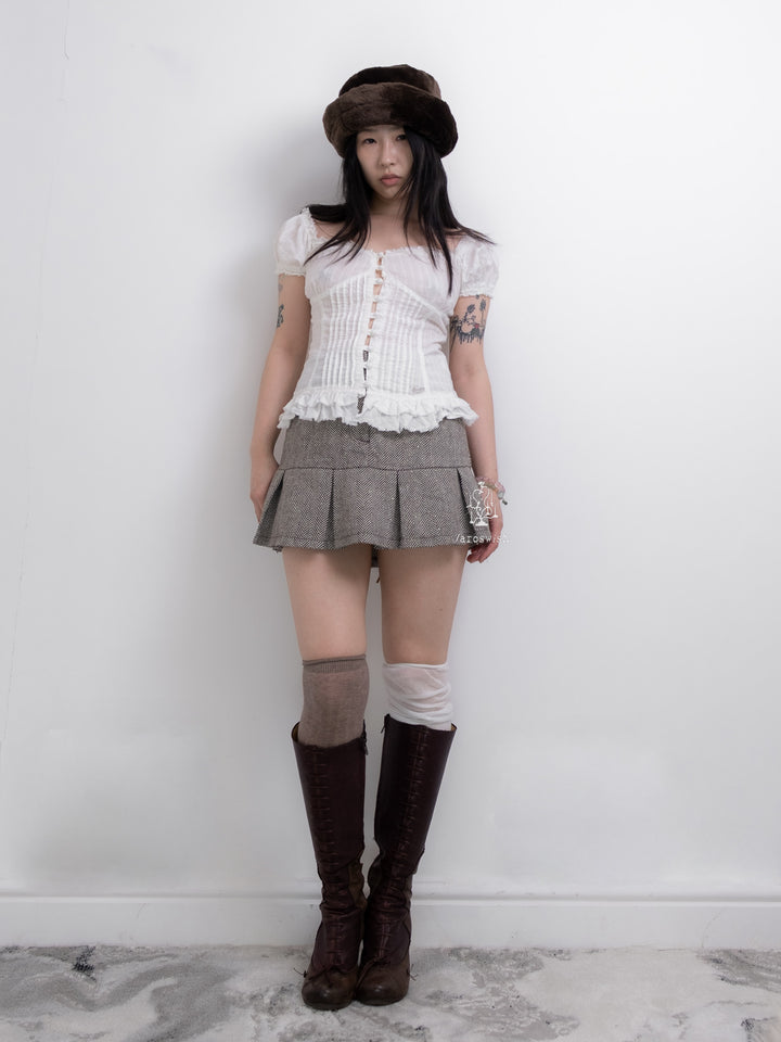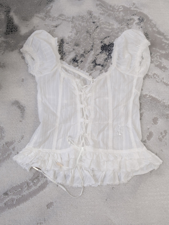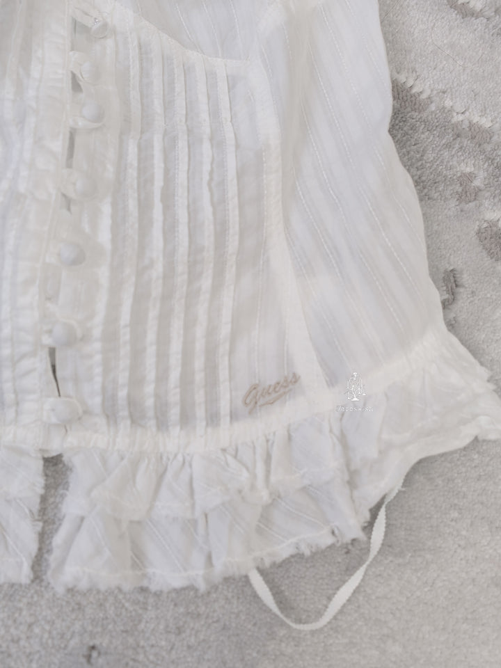 GUESS PLEATED RUFFLE CORSET UP BLOUSE