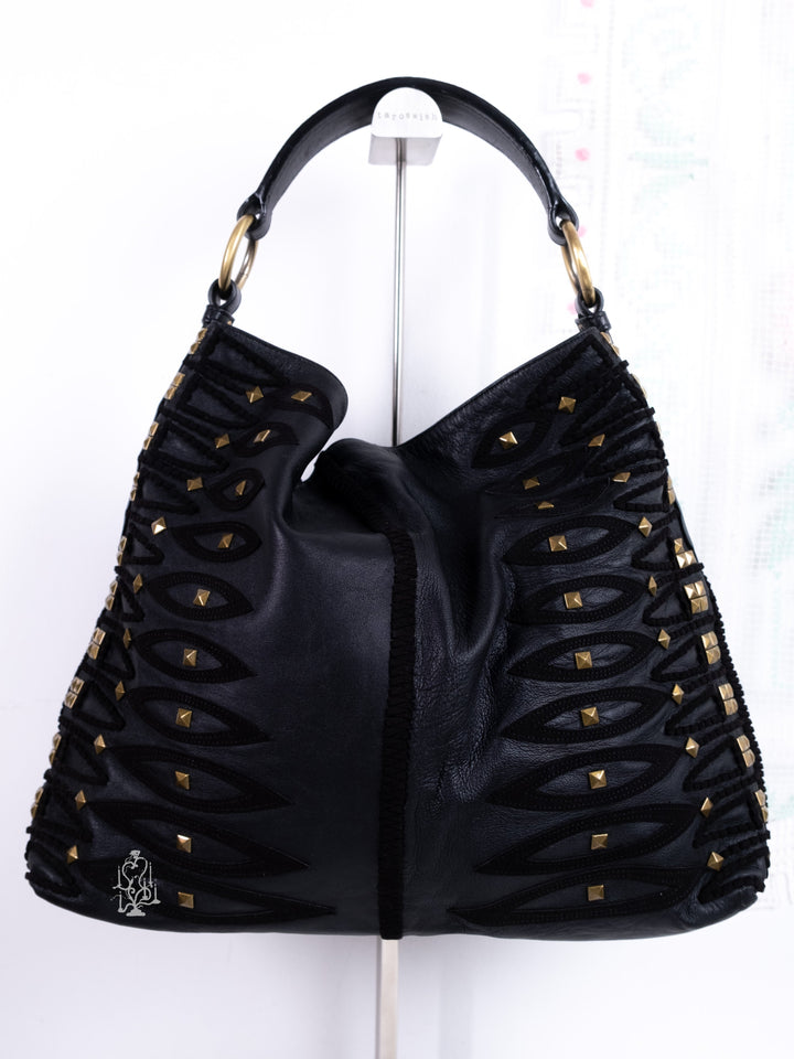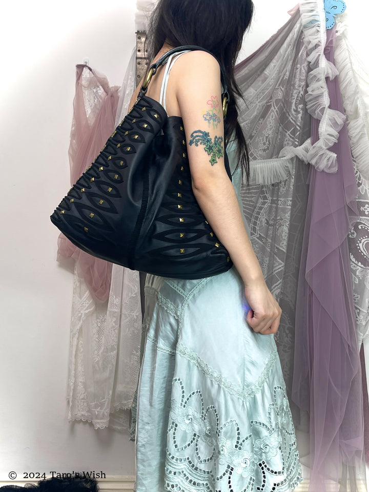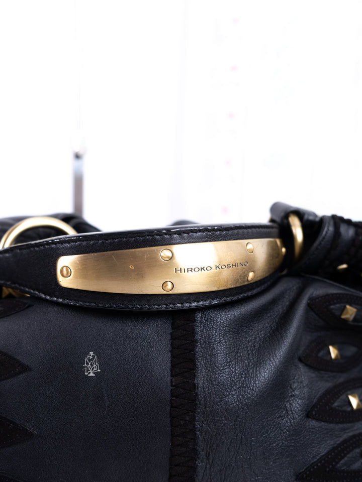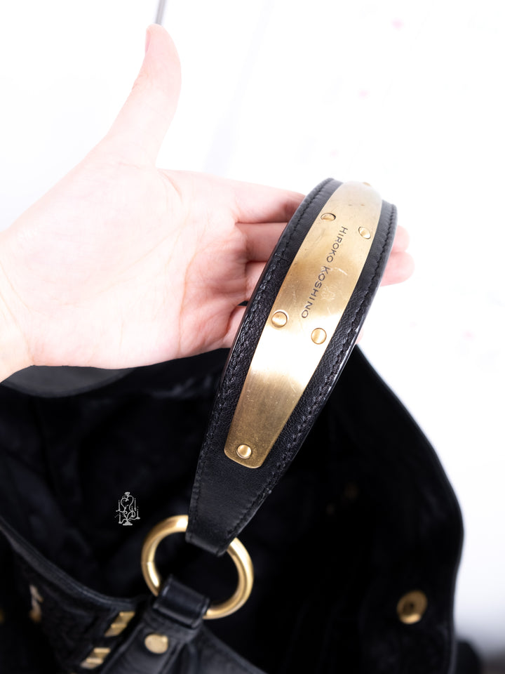 HIROKO KOSHINO REAL LEATHER RIVETS HANDBAG