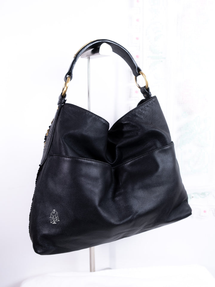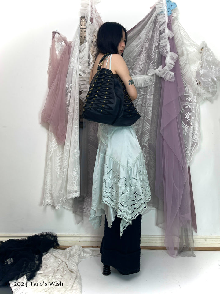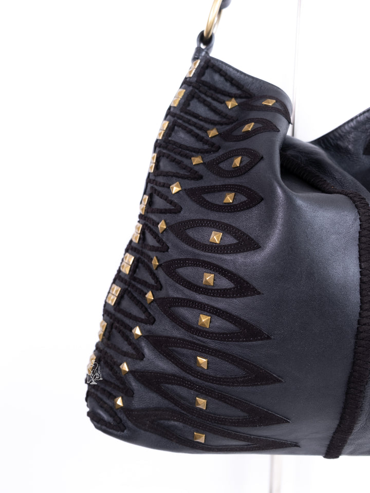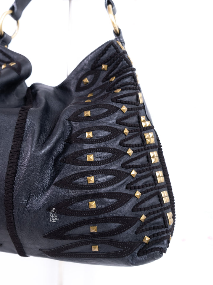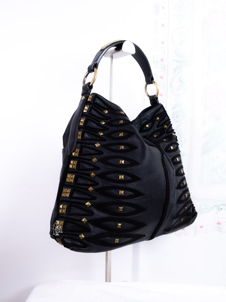HIROKO KOSHINO REAL LEATHER RIVETS HANDBAG